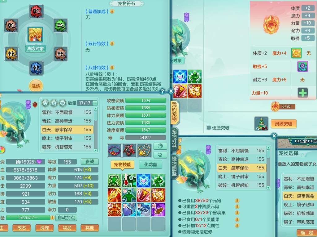 a22157战无不胜159男普陀,精灵舞,1龙1内胆神,【9只觉醒,已潜龙】,1宠皮,5只六技能镜花灵,1只六技能龙姬,2特殊(影袭,虎虎),愤怒六特,有物理装备,913狂暴卸甲单加武器,神佑单加项链,崩山衣服,5.5基础鼎+70攻+280血,差759积分换永久15格子,7个纯六字,22只满果子,背包32神兽内丹碎片,宠排在榜,成就在榜,暴龙泰坦+西瓜冰武器皮肤,带72天月卡。