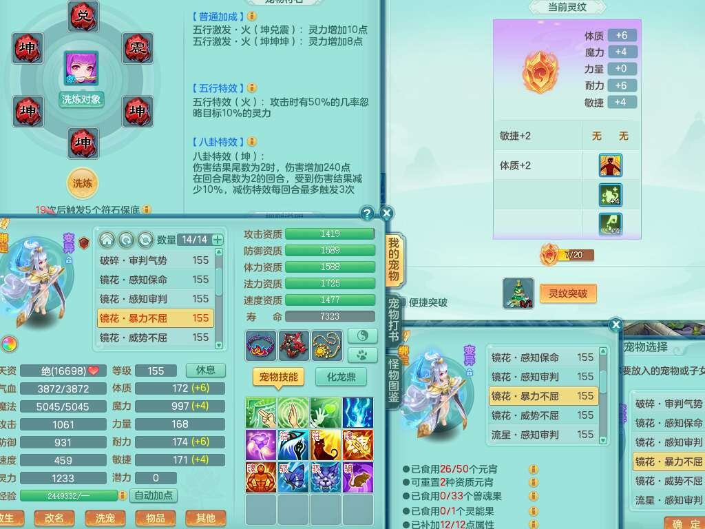 p22153阳春白雪159男天魔,精灵舞,1龙无内,2内胆神,9觉醒,3宠皮,3特殊(流星,坠天,善恶),3只六技能镜花灵,1只六技能龙姬,三红愤怒奇珍玉清腰带,迅捷单加51鞋子,五特,有269易成长疾速单加项链,5.5基础鼎,8个纯六字,2个五字,18只满果子,仓库还有102个果子,宠排在榜,经验在榜,3只双人坐骑,暴龙洪荒+西瓜冰武器,永久称谓,带136天月卡。➕159女五庄奶粉,1神兽,1觉醒,4.5基础鼎。➕158男魔王奶粉,1只六技能镜花灵。