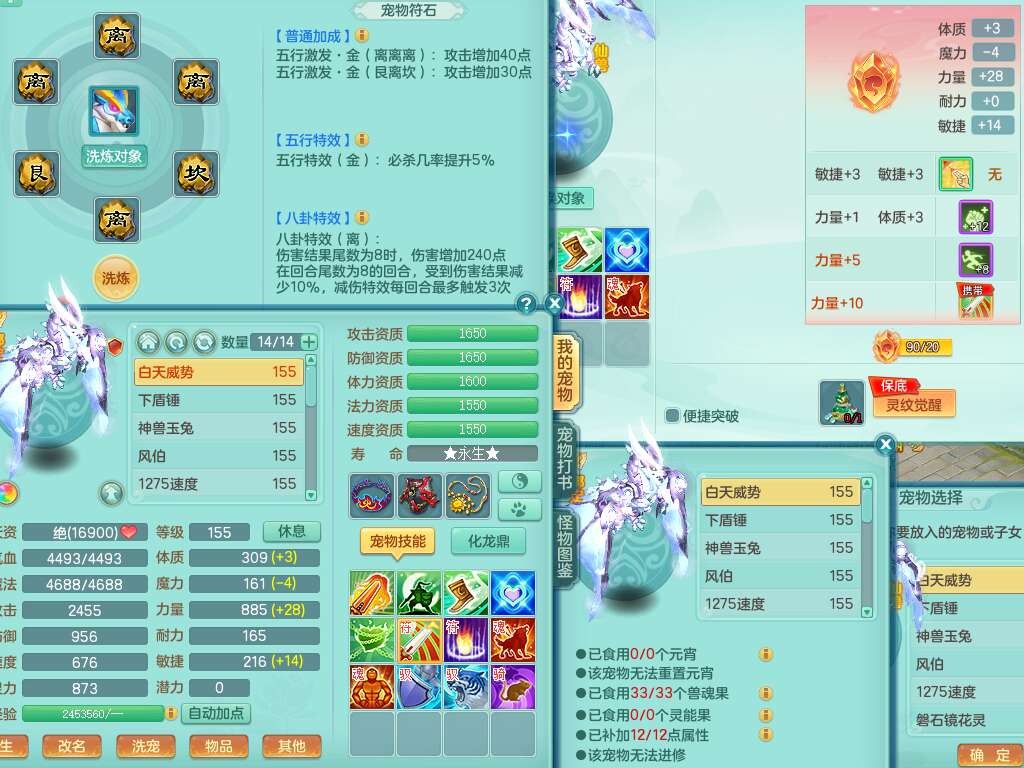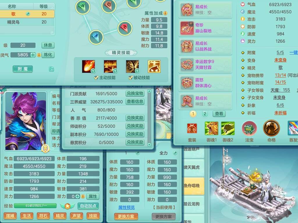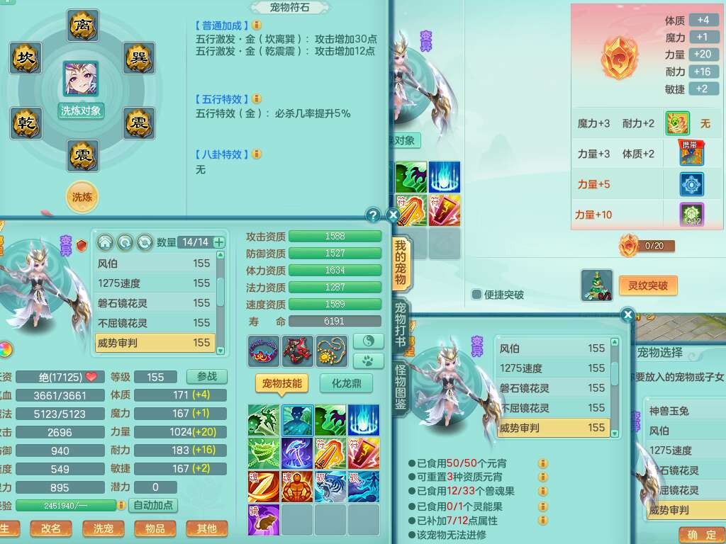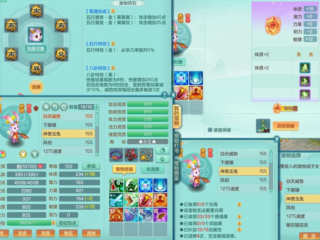 s22150今年勇159男万兽,精灵歌,1龙2内胆神,3只觉醒,4位靓号不含4,3只六技能镜花灵,2只六技能龙姬,震怒晶清单加53腰带,有个回春群体迟滞单加武器,综合5只满果子,4只双人坐骑,仓库23仙兽蛋。