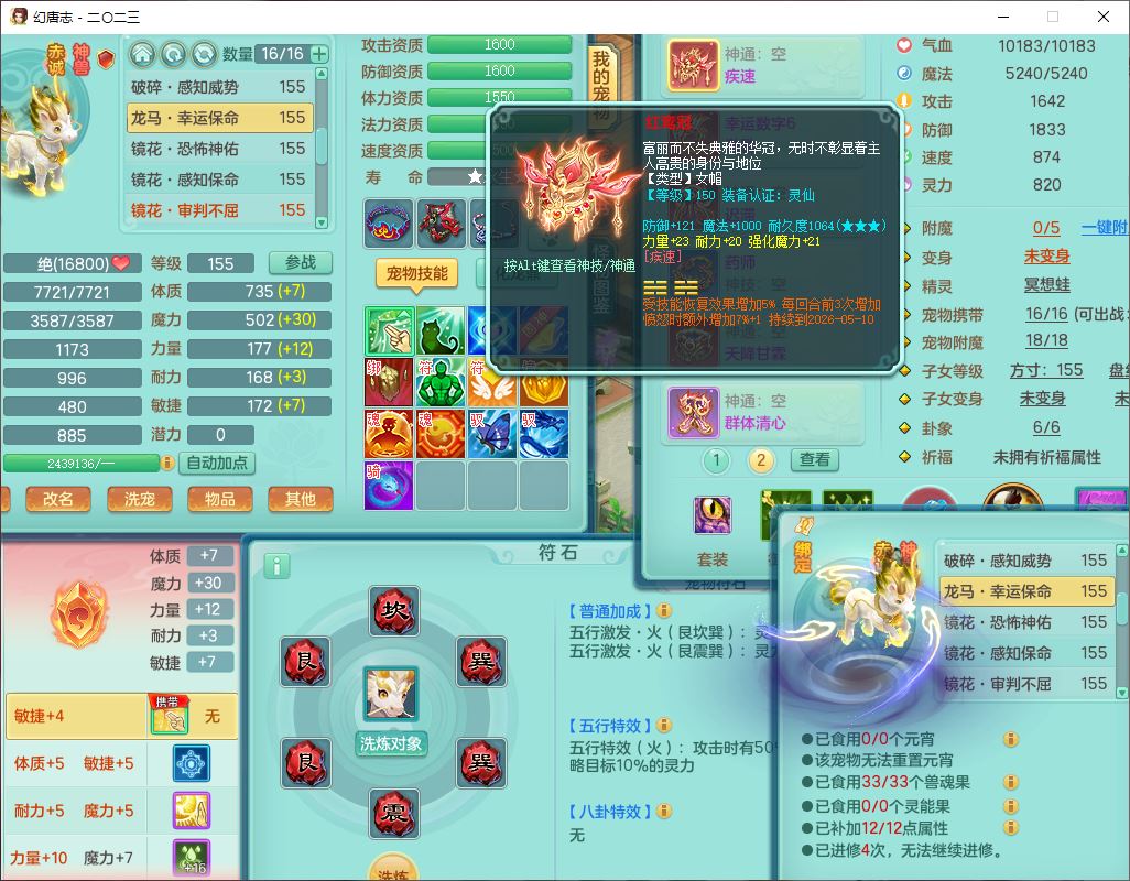 24275,2023区159女灵月【马到成功+西瓜冰+准潜龙号,差1只宝宝3条主符石1条附加】精灵舞,2套星穹,4龙(换)3内(1龙马、青蛇)2特殊(祈雨、双星)4镜花灵1龙姬1金炉1望归,14觉醒1宠皮7六字2五字6四字综合20只满果子,8红装备,药王这个项链,Y疾速鞋子,幸运激励武器,鼎5.0+70+280,2套符石,142天月卡,永久外观精灵皮肤,宠排在榜,19个内丹碎片,5坐骑(2只双人)