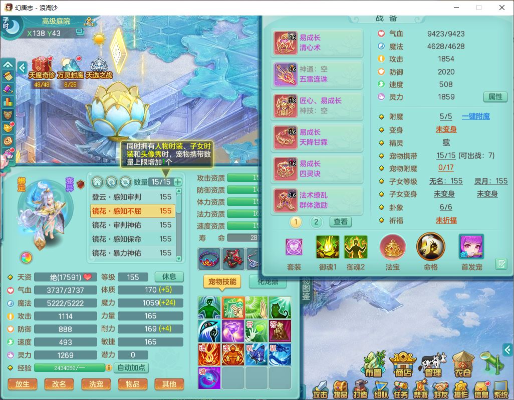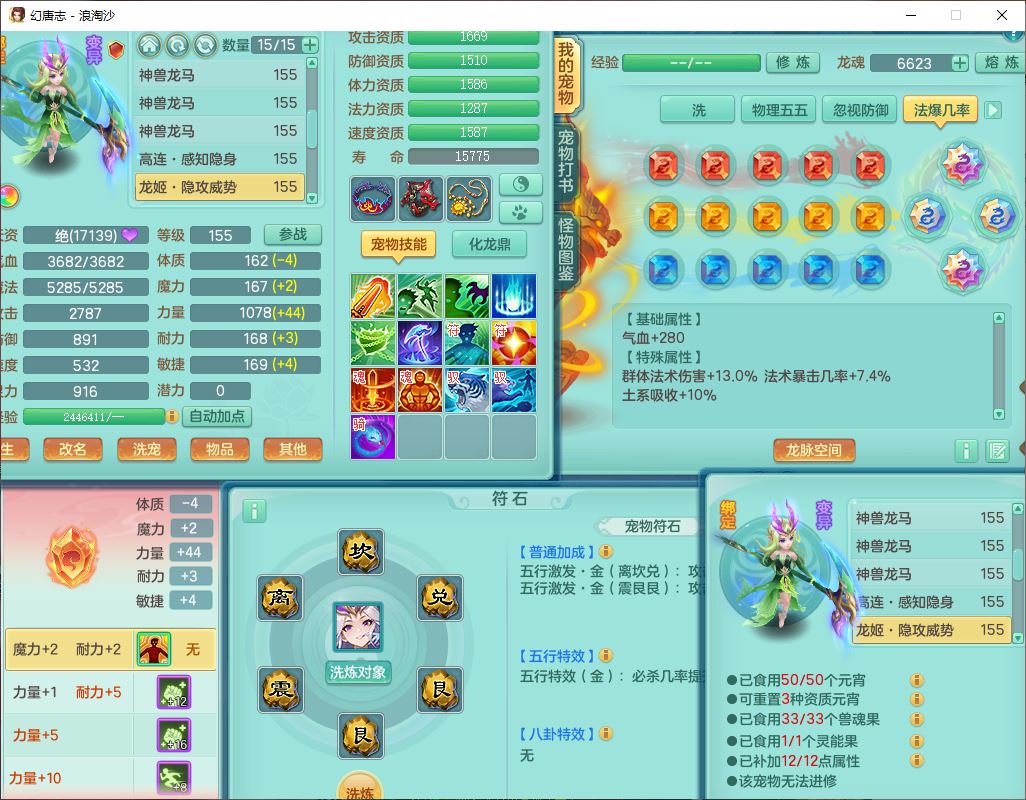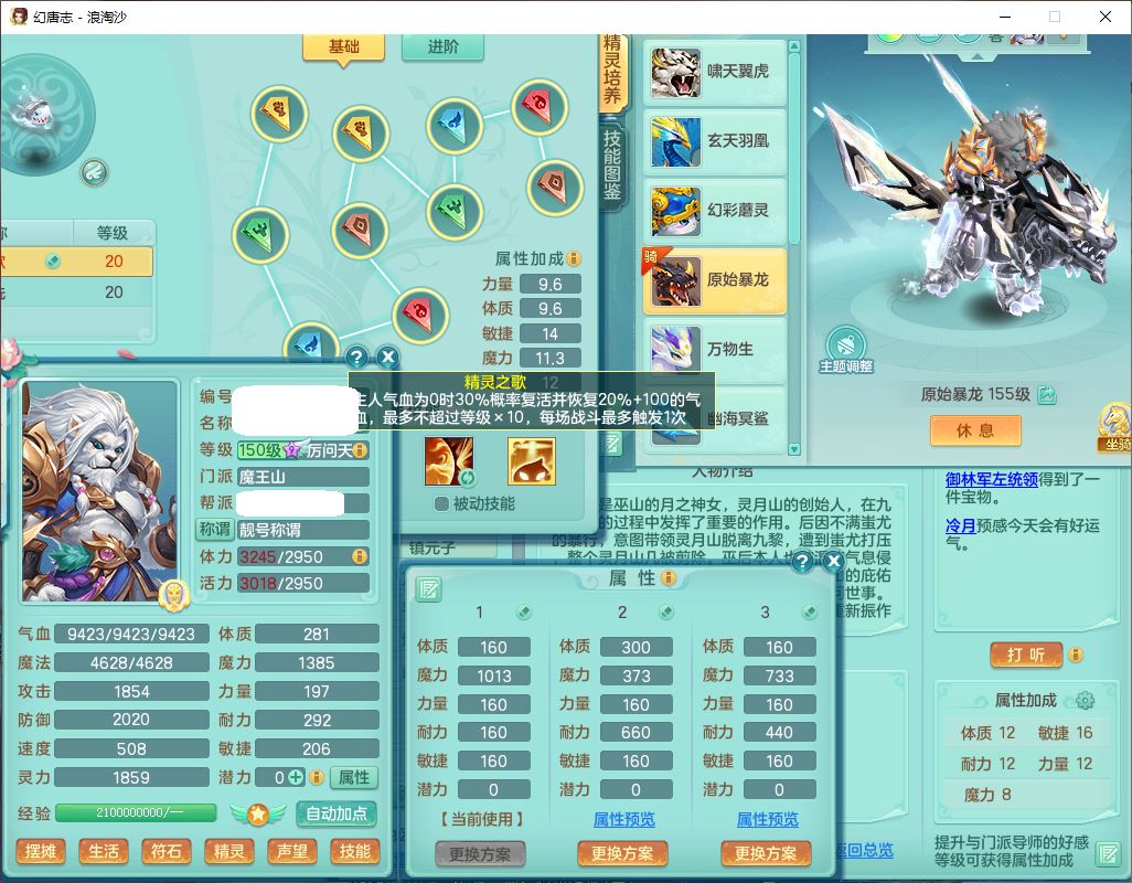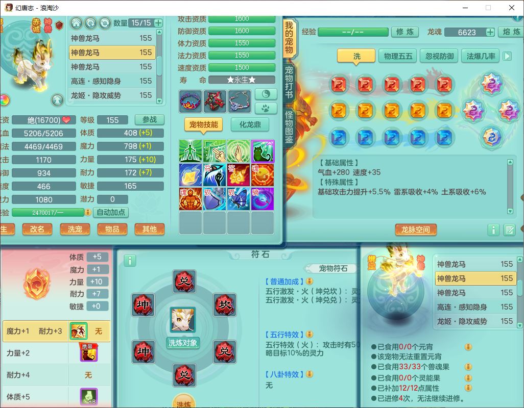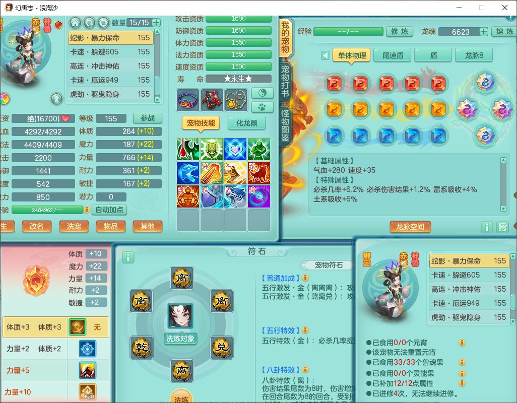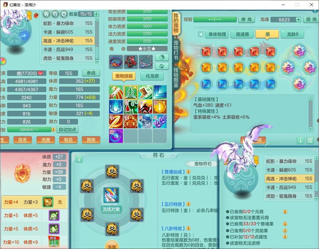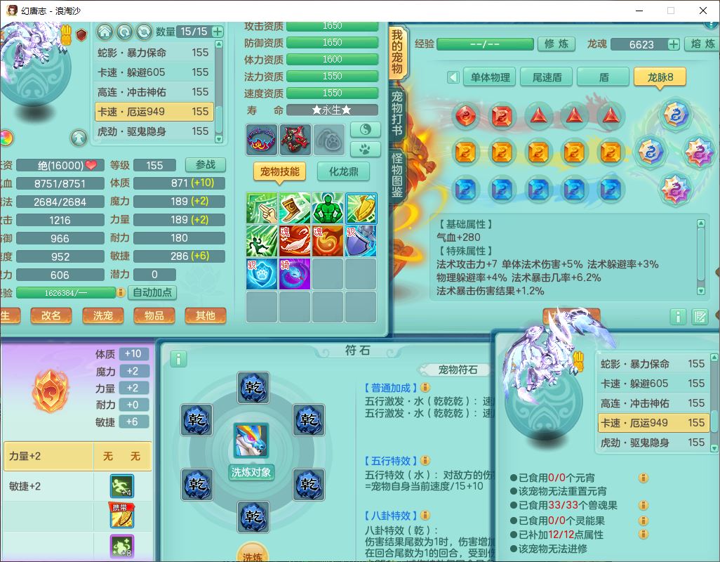 80745浪淘沙159男魔王【潜龙号+暴龙泰坦+西瓜冰】9龙(换,1破境)5内(3龙马1青蛇)4特殊(兽决月光/善恶/破碎/逆龙)4镜花灵1龙姬,5皮25只满果子12觉醒8个纯6字,11红,Y水清头,五雷武器,匠心Y衣服,263Y四海项链,Y四灵腰带,法缭群体激励鞋,鼎5.5+70+280,3套符石,冰晶庭院170房屋194,永久外观精灵皮肤,1841金币,宠排在榜,11坐骑(10只双人)