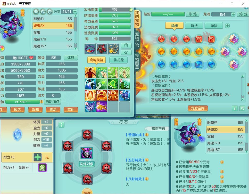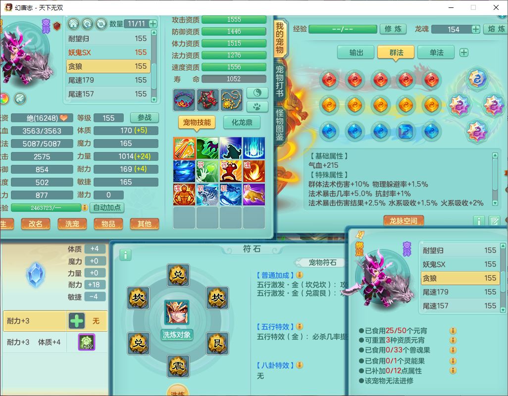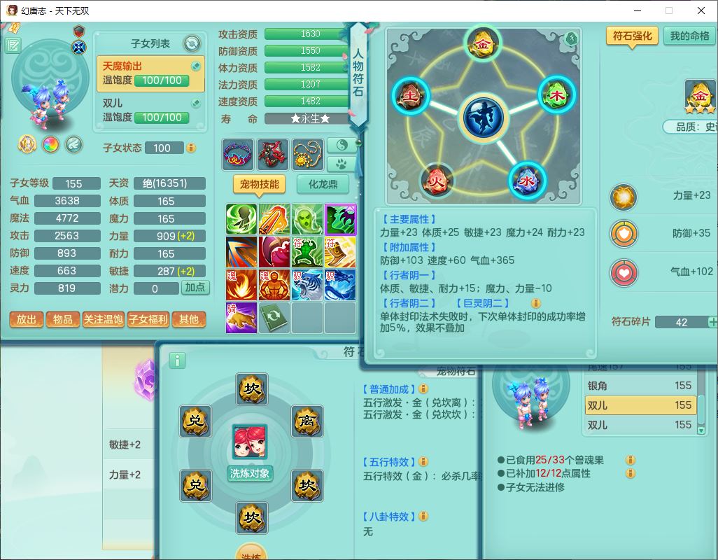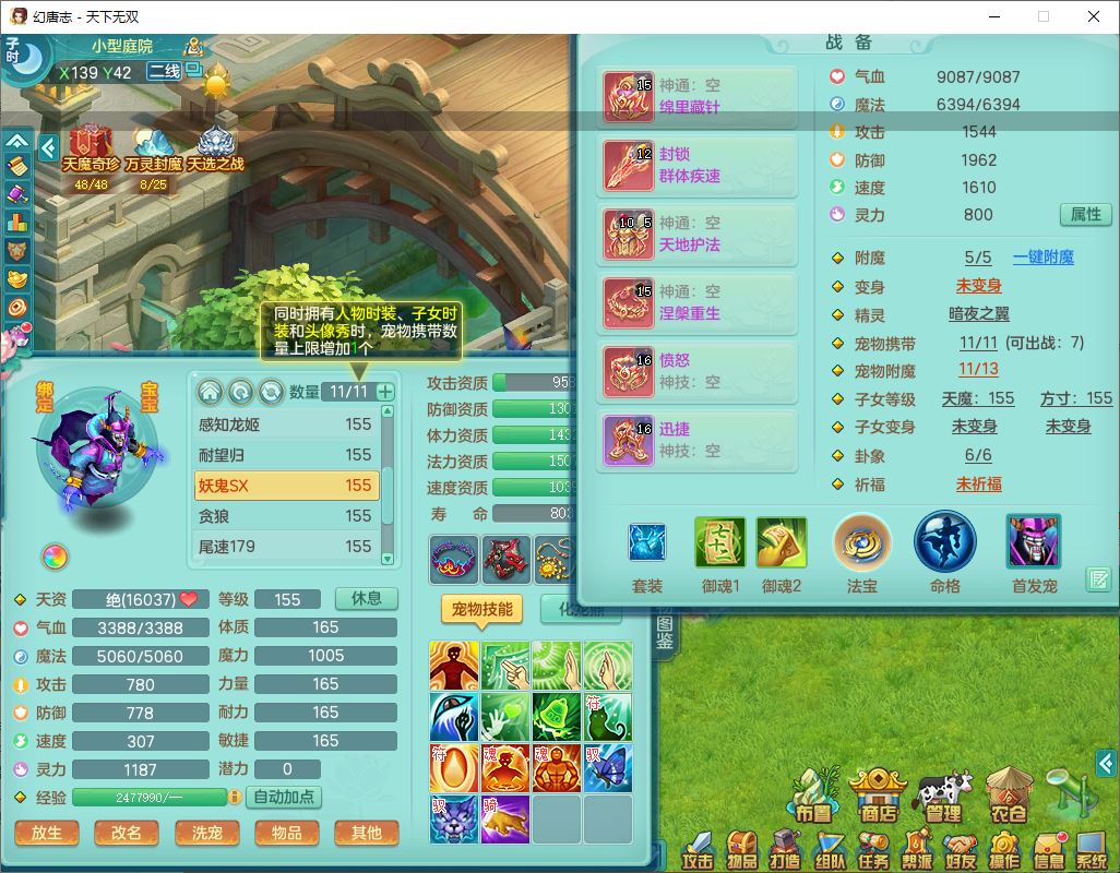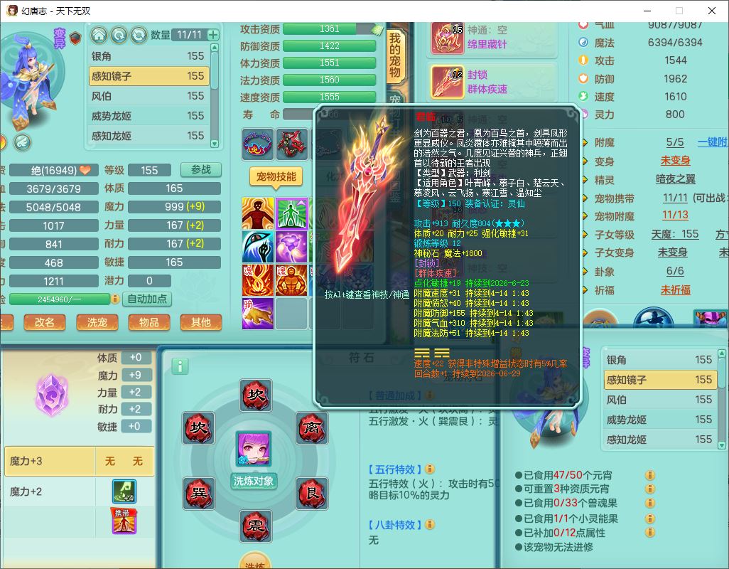 4360天下无双159男方寸1小精灵,1望归1镜花2龙姬1七技能雷光妖鬼,宝宝种类齐全,7红装备,封锁群体疾速武器,鼎4.5,天下火区上号可踢球,装备高单加齐全,封锁迅捷愤怒,擂台无敌