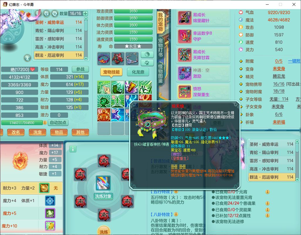 24272今年勇109男灵月【准潜龙号,差1只宝宝2条附加】精灵舞,4位靓号,4龙(换)3内(1青蛇)1建木1羽袭1金炉,9觉醒1宠皮7六字2五字(1洗练珠)10四字23只满果子,11红装备,Y笑里帽子,幸运守护武器,Y四海衣服,愤怒慈航腰带,迅捷晶清鞋子,Y卸甲鞋子,鼎3.0+42+168,54天月卡,永久外观、精灵皮肤,1仙兽内丹,56个内丹碎片,7坐骑(2双人飞行)