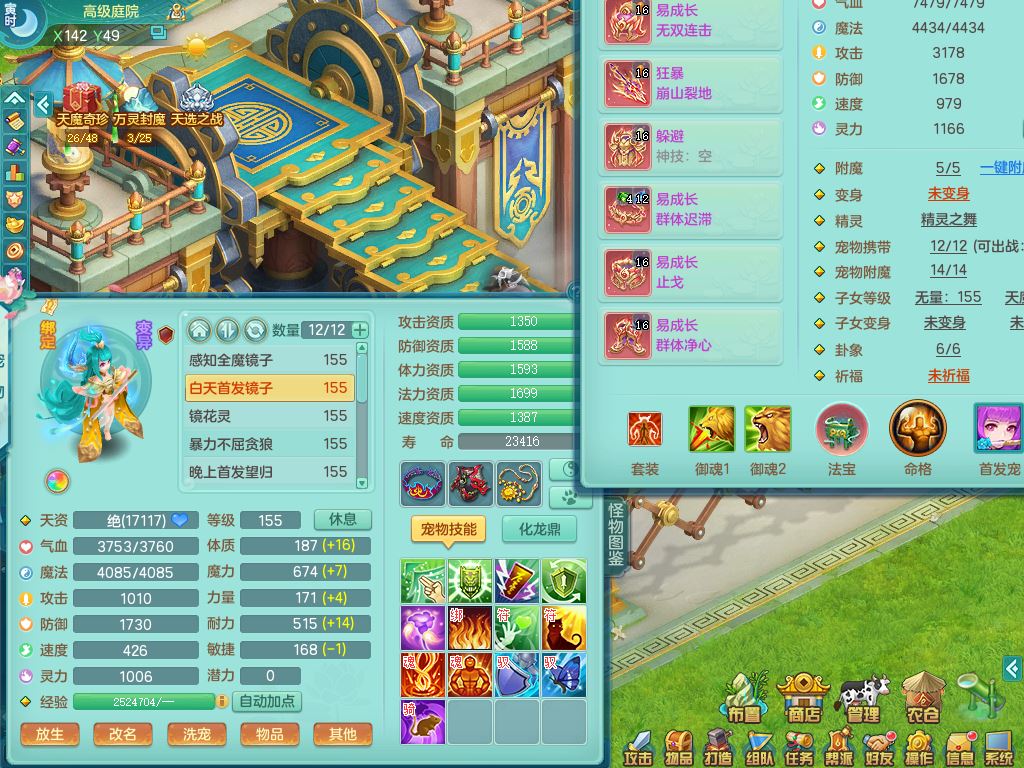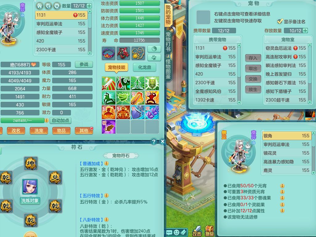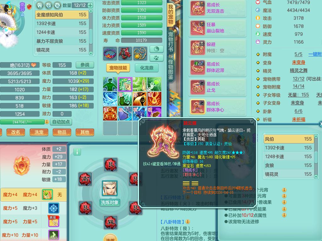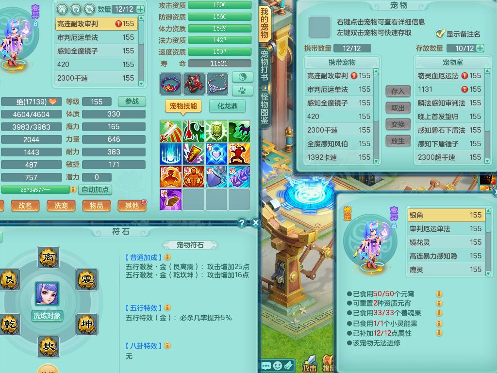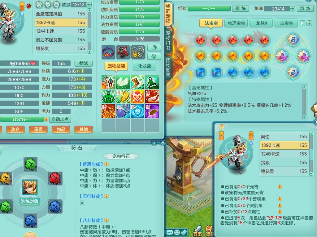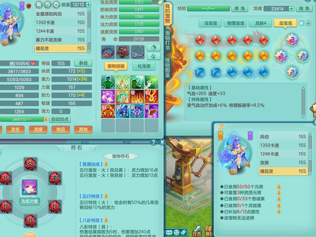 52682三生万物159男万兽精灵舞,1内(青蛇)1望归3镜花灵,3觉醒4四字综合7只满果子,11红装备,Y破血帽子,狂暴崩山武器,Y群体迟滞项链,Y止戈腰带,Y晶清鞋子,鼎4.5,47天月卡,永久外观饰物、精灵皮肤,201W神武币,1飞行双人坐骑