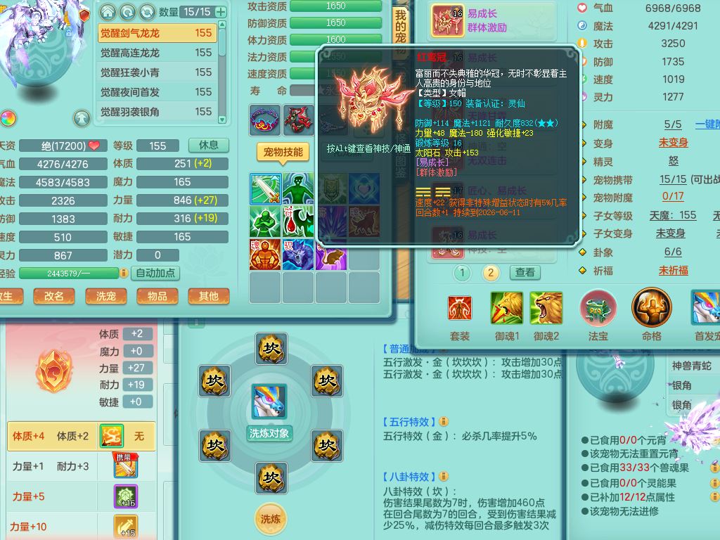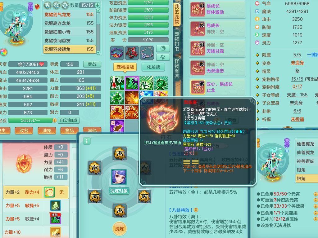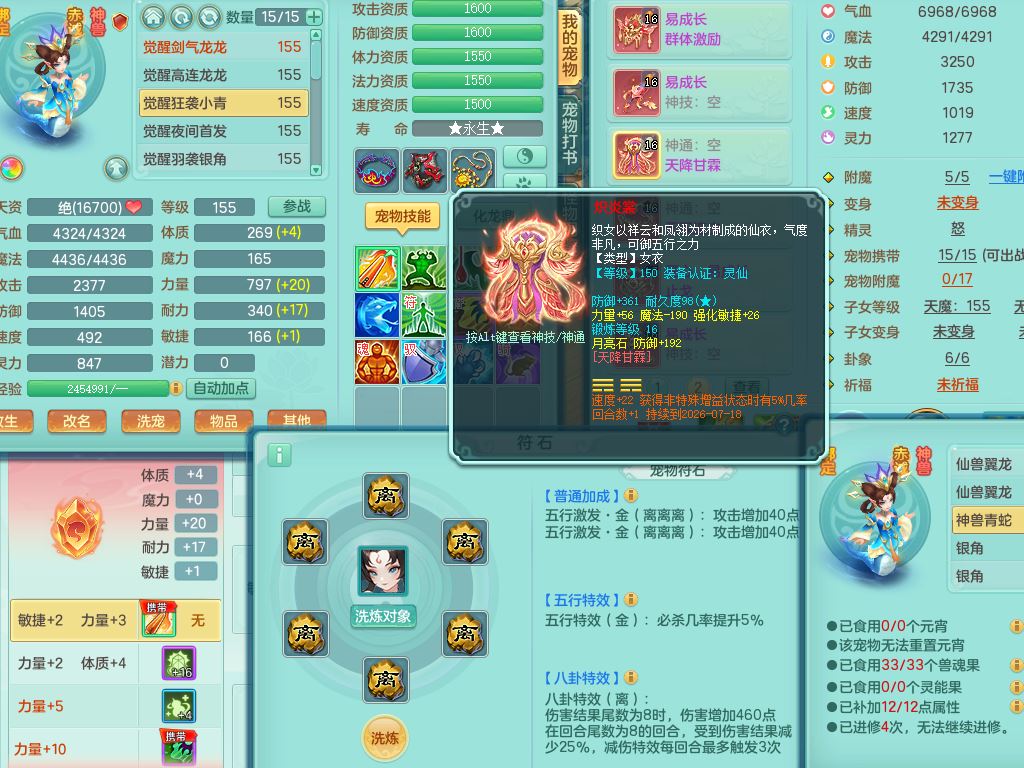 jt10322九天揽月159女万兽【准潜龙号,只差3条符石和混沌龙纹,暴龙洪荒+西瓜冰】精灵舞,2内丹龙2内丹神(1青蛇),3特殊(羽袭/剑胆/夺命)16只满果子8觉醒8个纯6字,9红全身单加,Y双红头,919Y武器,匠心Y止戈腰带,辅助愤怒5特,封印净心头,鼎4.5+70+280,128天月卡,永久外观精灵皮肤,4坐骑(3只双人)有双重认证