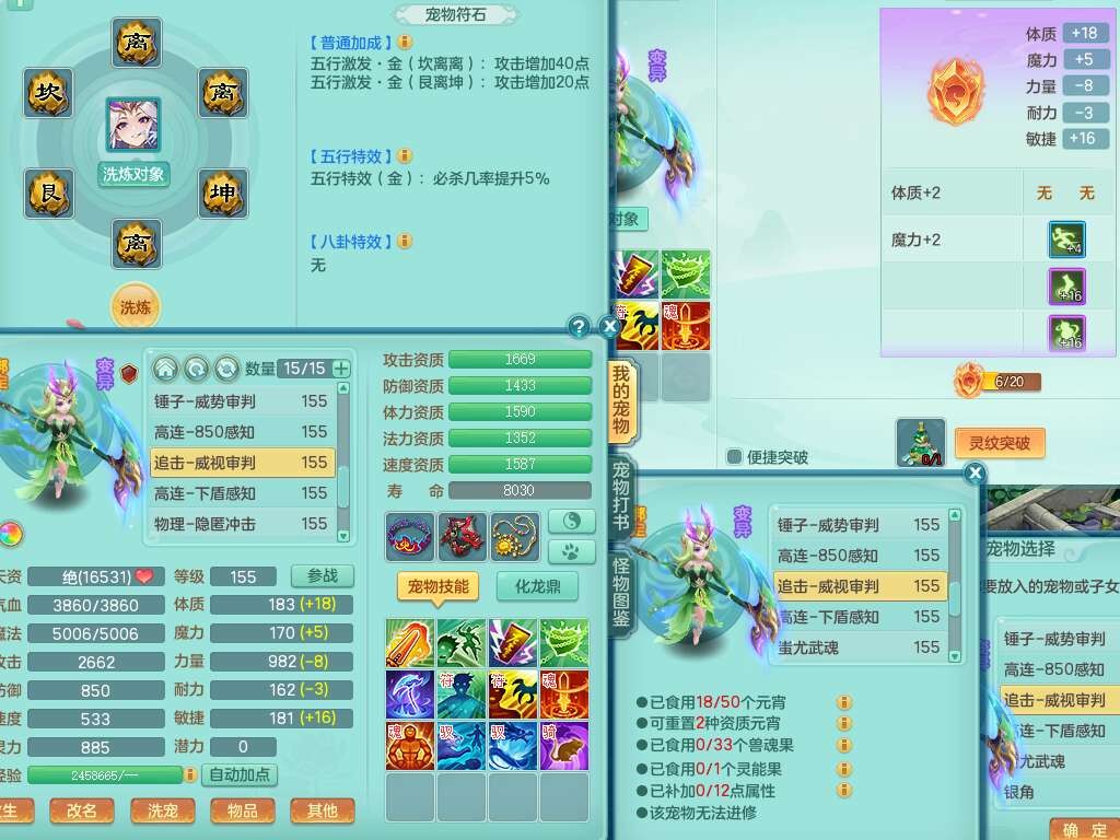 S22216少年游159男龙宫,精灵歌,2龙(1龙无内),2内胆神(1蛇1马),4只觉醒,1宠皮,2特殊(月光,锤子),4只六技能镜花灵,易成长烽火单加57头,法爆单加51武器,263易成长单加链子,指挥五雷腰带,易成长四海单加55鞋子,5.0基础鼎+70攻+280血,13个永久格子,1个纯六字,12只满果子,双人葫芦,带30天月卡。