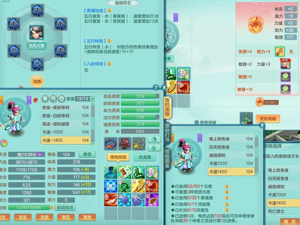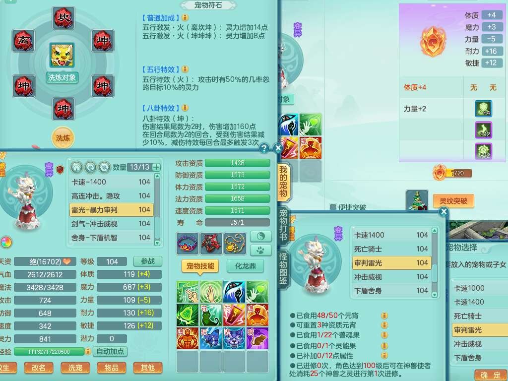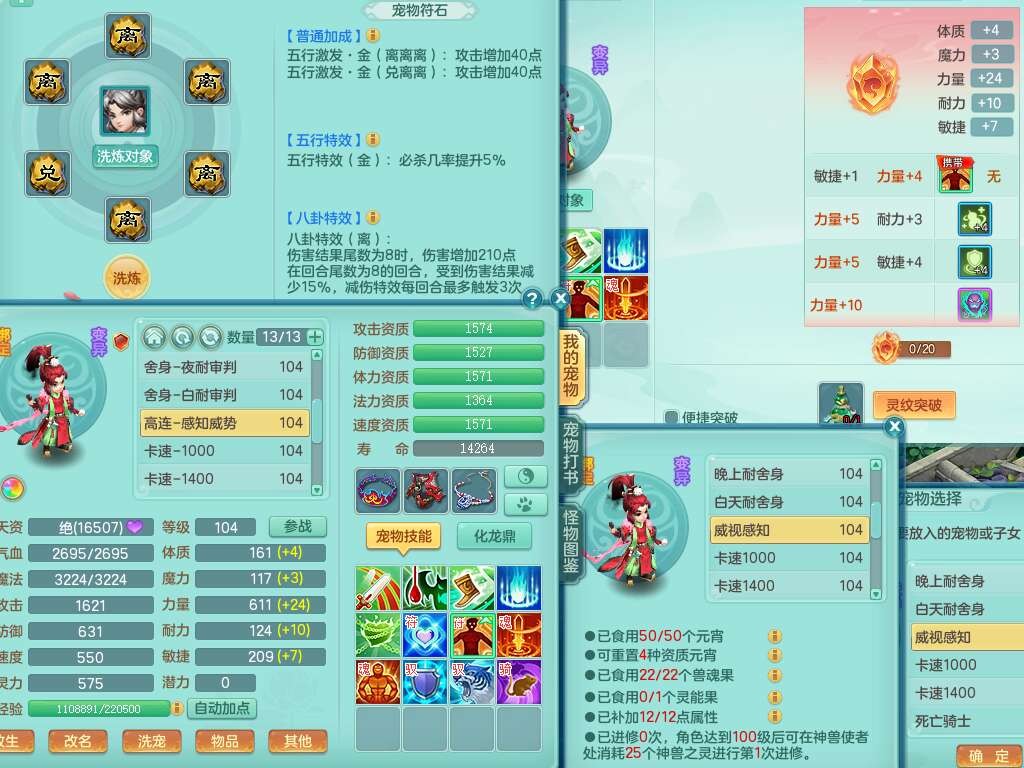 K22207彩云追月99女万兽,1内胆神,10只觉醒,8位靓号不含4,545狂暴破血单加武器,544易成长单加武器,崩山单加衣服,神佑单加链子,易成长单加33腰带,迅捷止戈单加31鞋子,迅捷玉清单加鞋子,2.5基础鼎+42攻+168血,2个纯六字,2个五字,11只满果子,宠排在榜,双人坐骑。