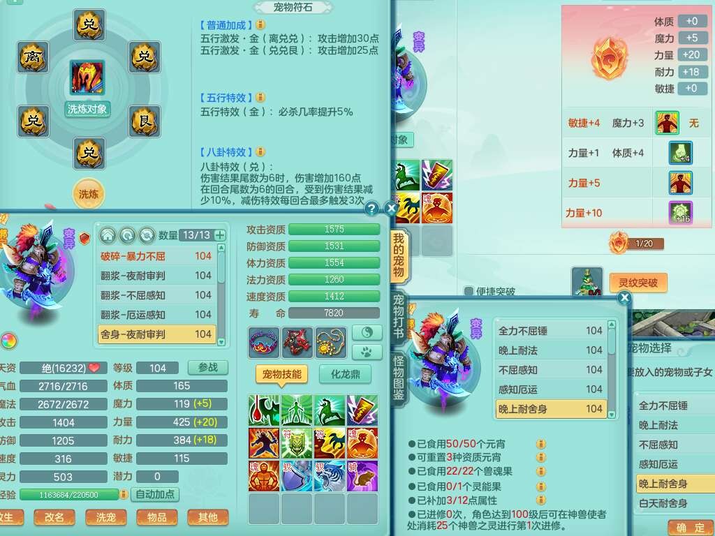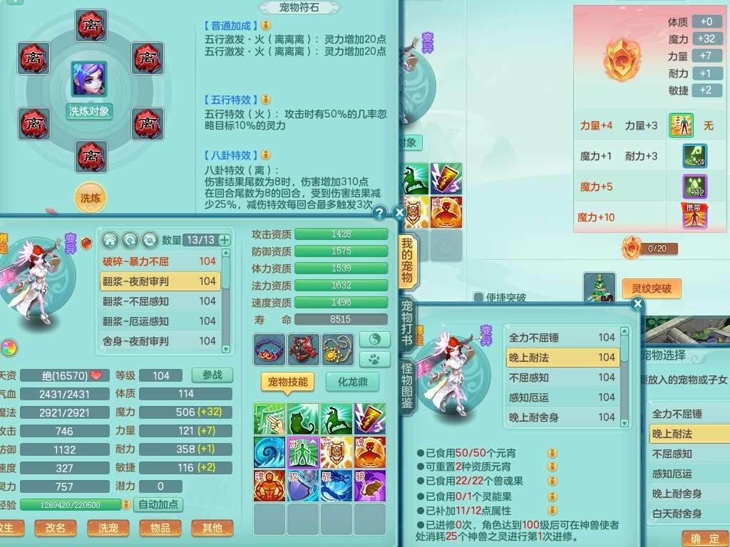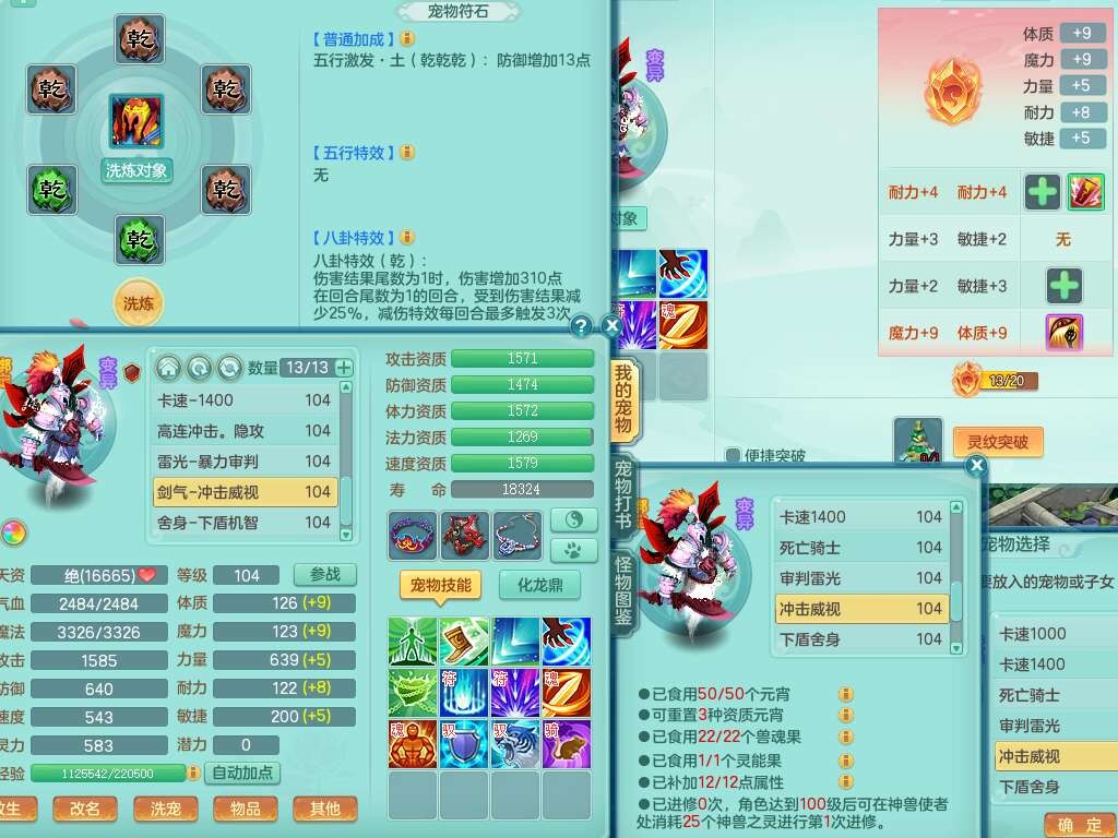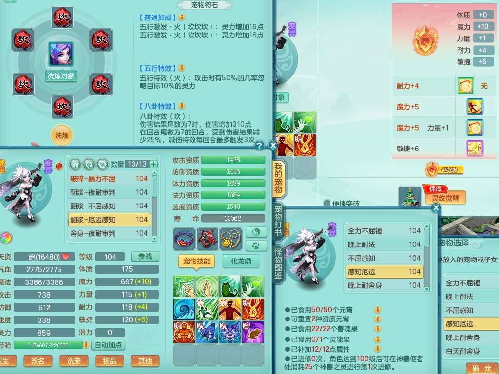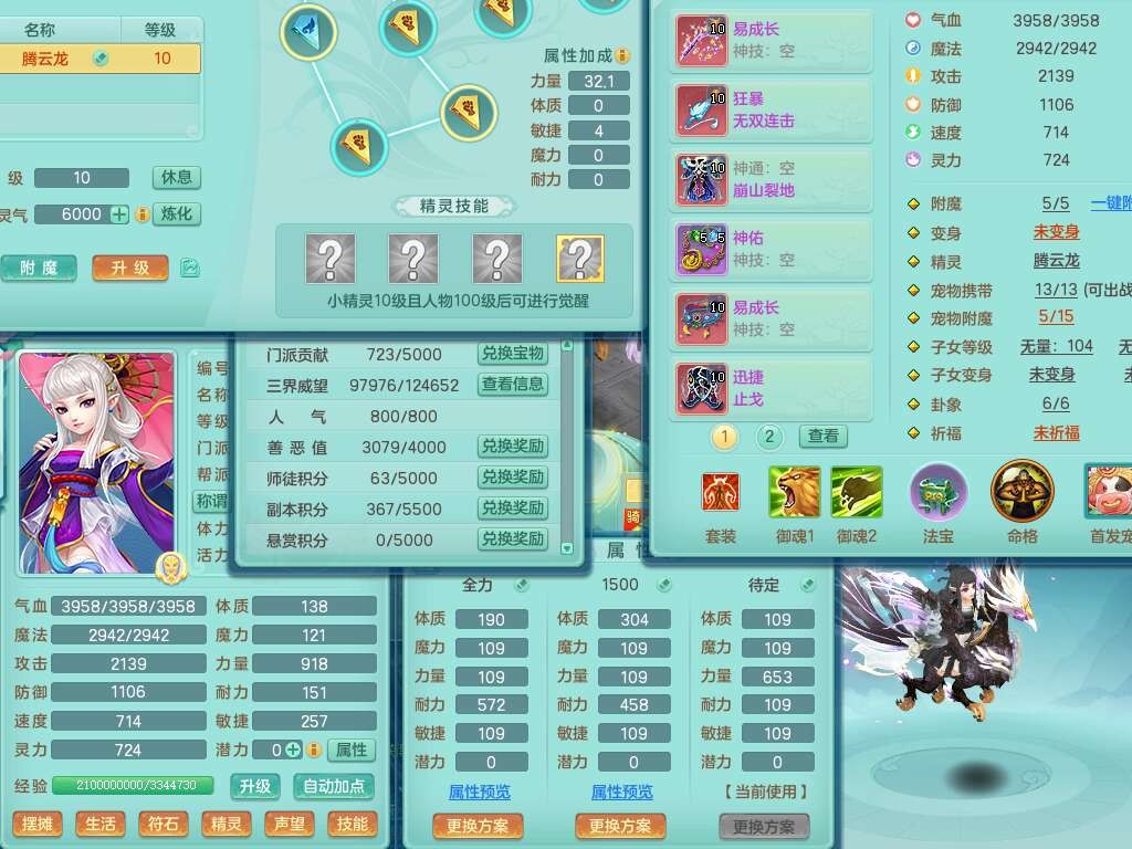 K22207彩云追月99女万兽,1内胆神,10只觉醒,8位靓号不含4,545狂暴破血单加武器,544易成长单加武器,崩山单加衣服,神佑单加链子,易成长单加33腰带,迅捷止戈单加31鞋子,迅捷玉清单加鞋子,2.5基础鼎+42攻+168血,2个纯六字,2个五字,11只满果子,宠排在榜,双人坐骑。