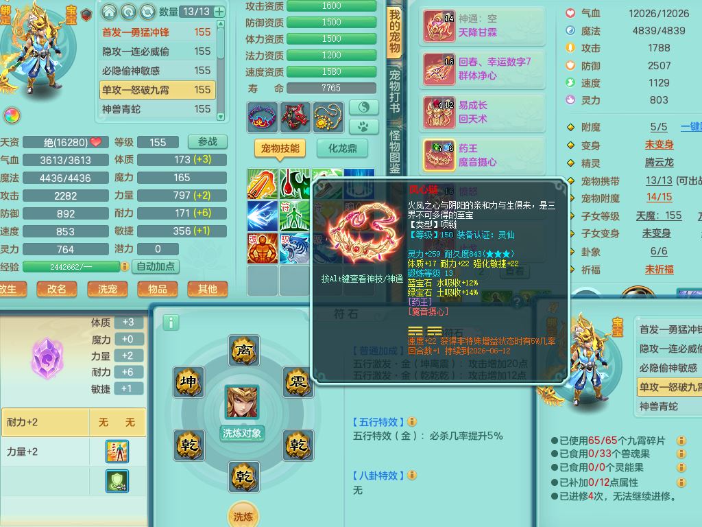 ym10337扬名立万159男地府精灵舞,满级共鸣,2特殊(冲锋/灵傀兽决)三神兽带装饰,综合5个满果子,3觉醒,1六字,11红愤怒5特,三红回春毕业神器,Y双红衣服,药王绝幻项链,Y止戈鞋,鼎5.0,82天月卡,42仙兽灵21内丹碎片,飞行烛龙坐骑