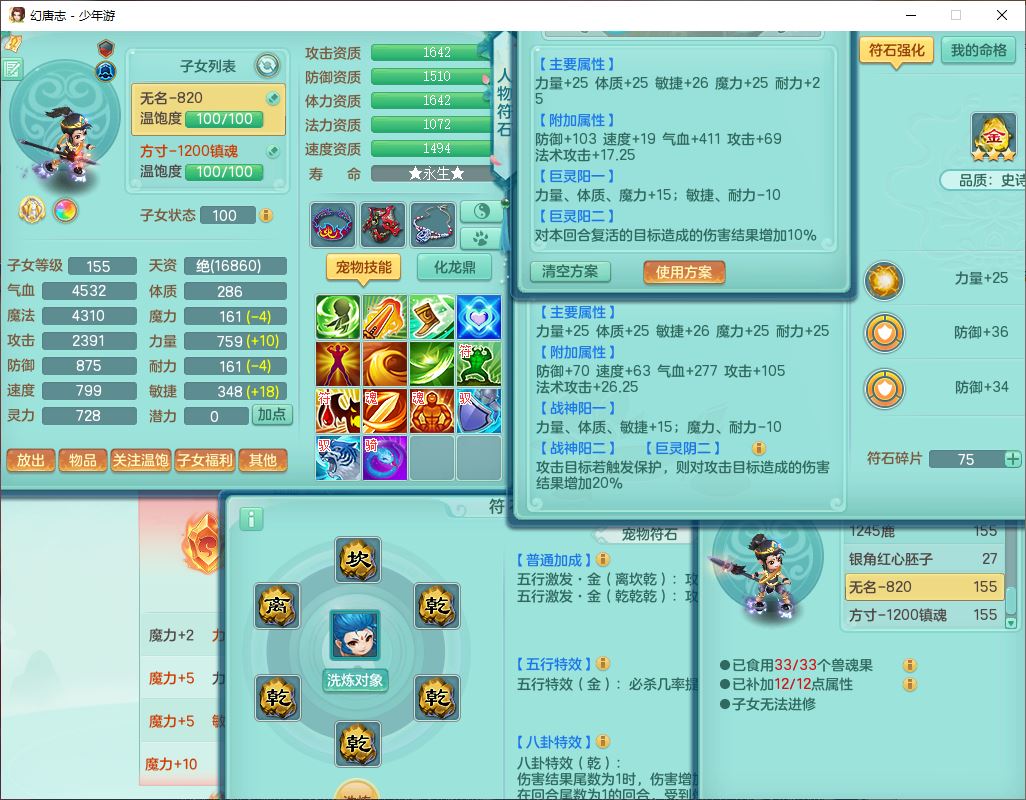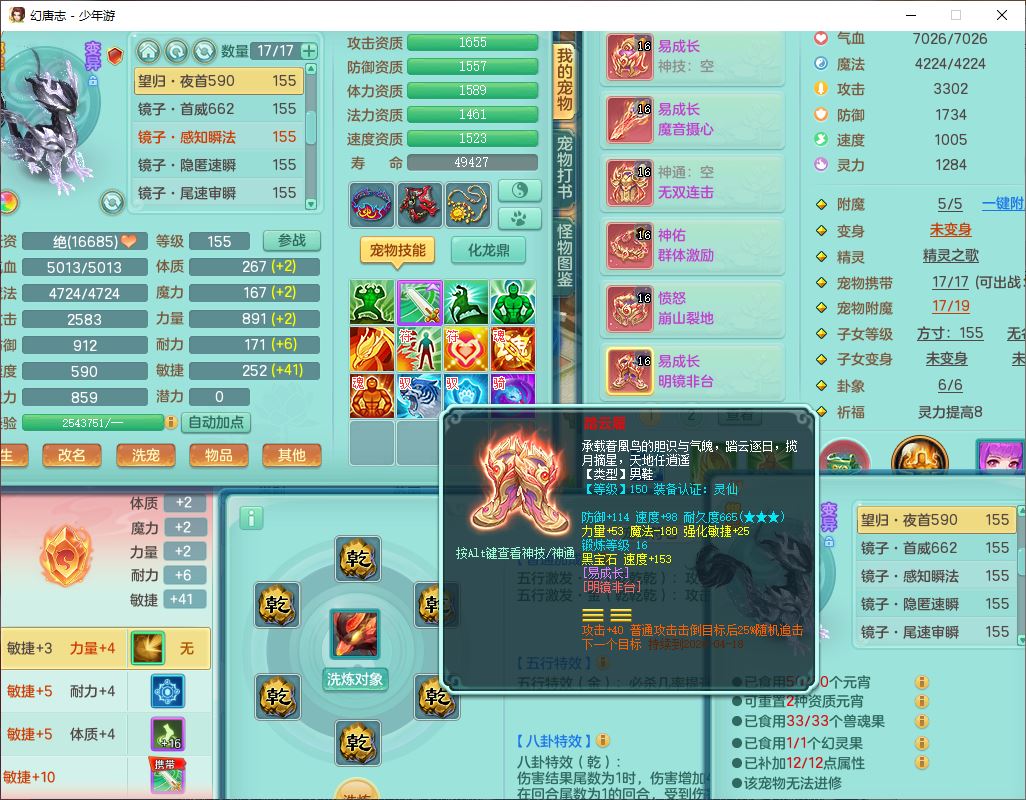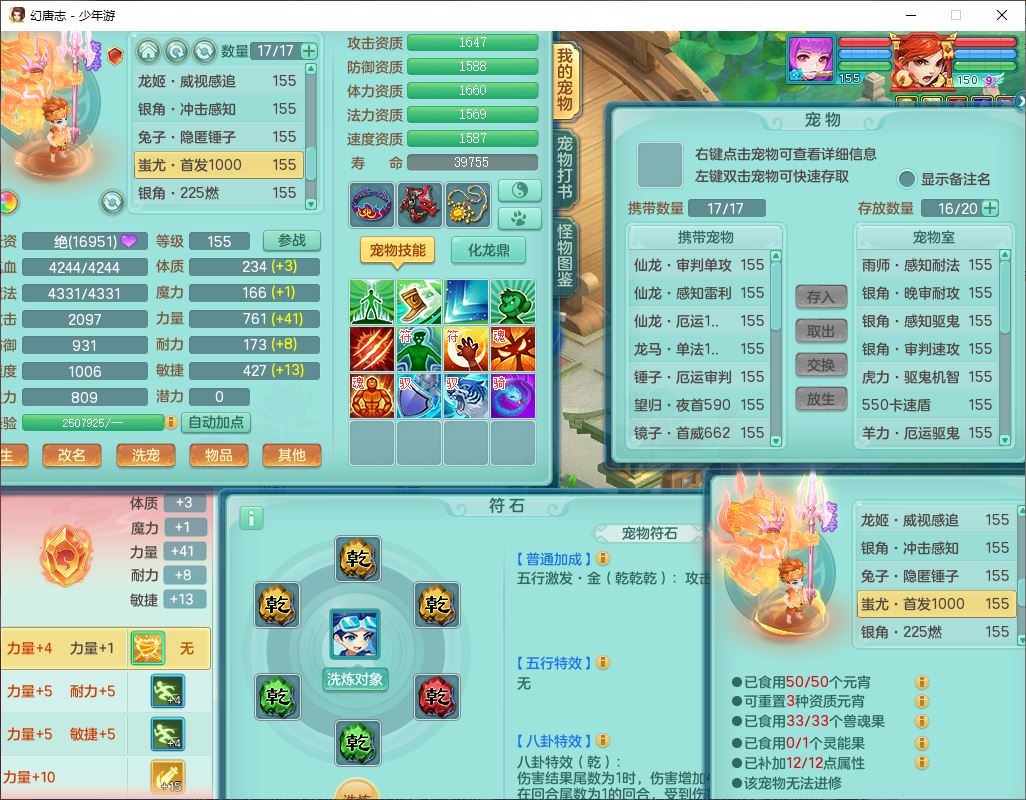 sn10348少年游159男天策【暴龙猎手+西瓜冰+准潜龙号,差4条符石2条附加1条混沌】精灵歌,8位靓号,4龙(1无内),2内(1龙马)1望归4镜花1龙姬1金炉1特殊兽决(以战),13觉醒10宠皮(2幻灵果)11六字1五字10四字(1洗练珠)25只满果子,10红全单加装备,Y魔音武器,神佑群体激励项链,愤怒崩山腰带,Y明镜鞋子,鼎5.0+70+280,2套符石,永久外观、精灵皮肤,宠排、经验、修炼在榜,雷影豹坐骑