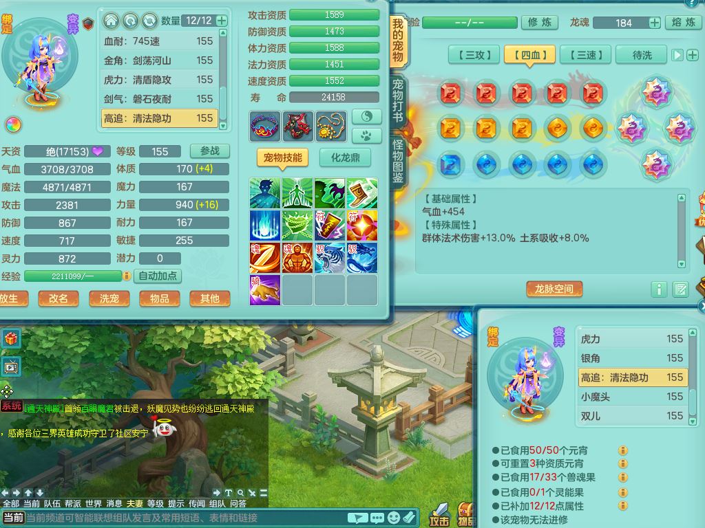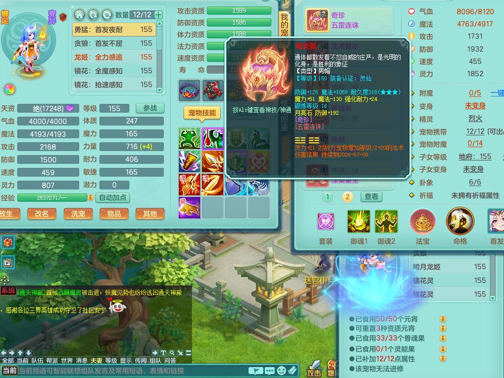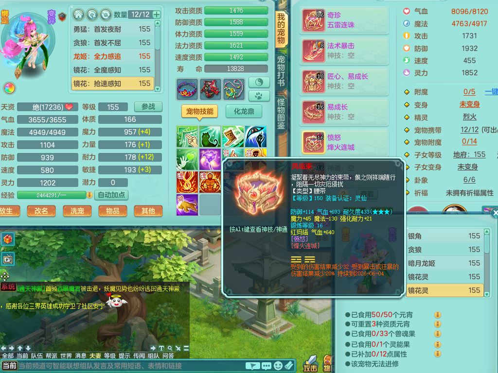 tx10346天下无双159男魔王,满级共鸣,3特殊(冲锋/兽决月光/夺命)2镜花灵1龙姬,综合5只满果子2觉醒,8红,单加五雷头,法爆武器,匠心Y衣服,271Y项链,单加愤怒烽火腰带,鼎4.5+70,50天月卡