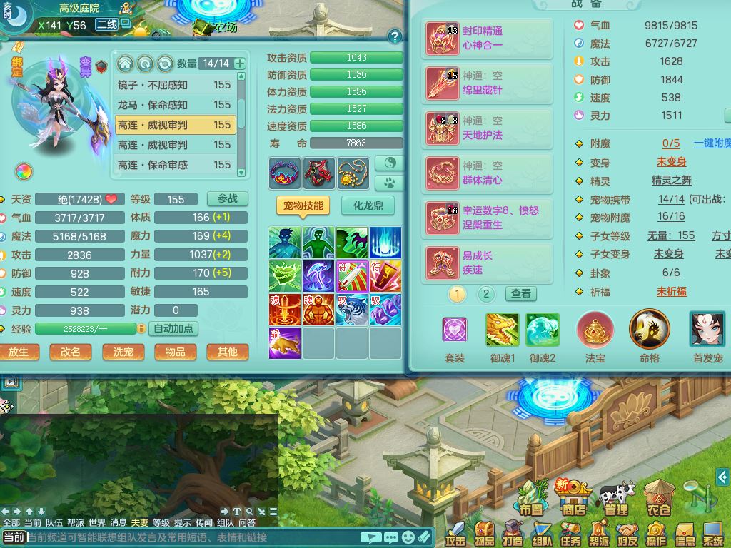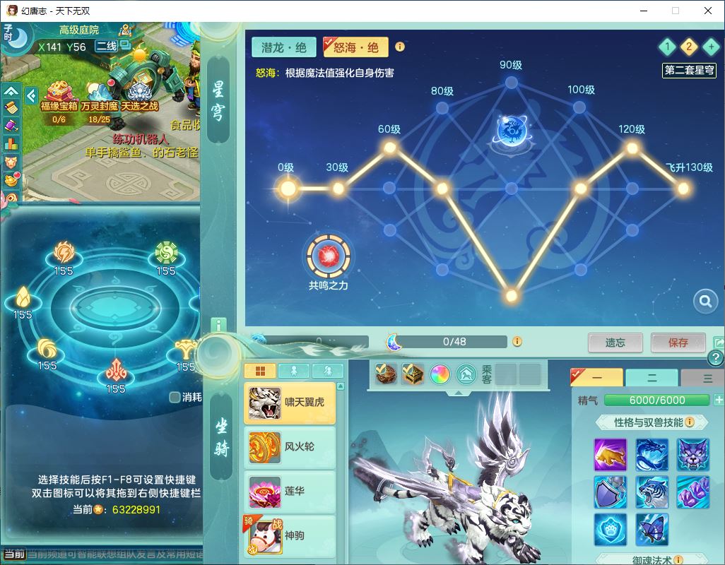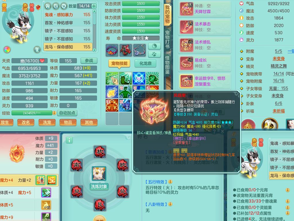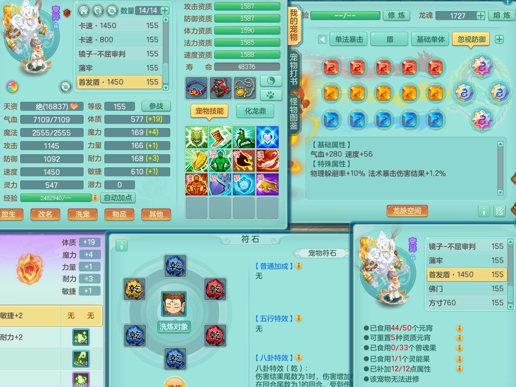 tx10349天下无双159男龙宫【神驹心想事成+火焰之力】精灵舞,2套星穹,1龙(无内)1内丹龙马1皮,3镜花灵1龙姬,综合18只满果子6觉醒6个4字2个5字,8红单加法爆武器,法缭衣服,275单加Y项链,幸运愤怒慈航腰带,五雷鞋,辅助10红愤怒6特,封印心神头,Y流云鞋,鼎5.5+70+280,42天月卡,永久外观精灵皮肤,37内丹碎片,2坐骑(1只飞行双人)