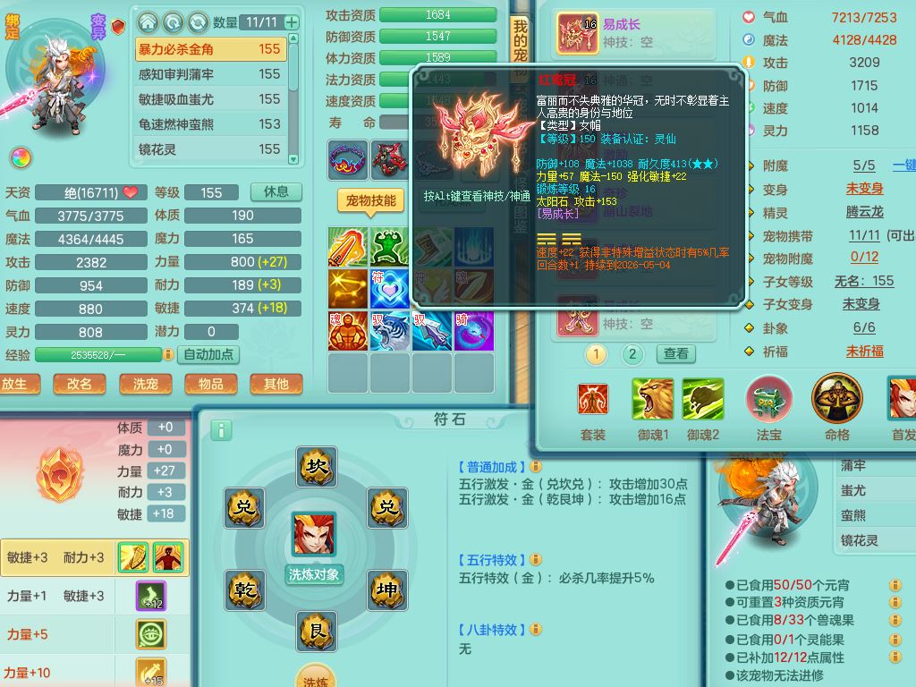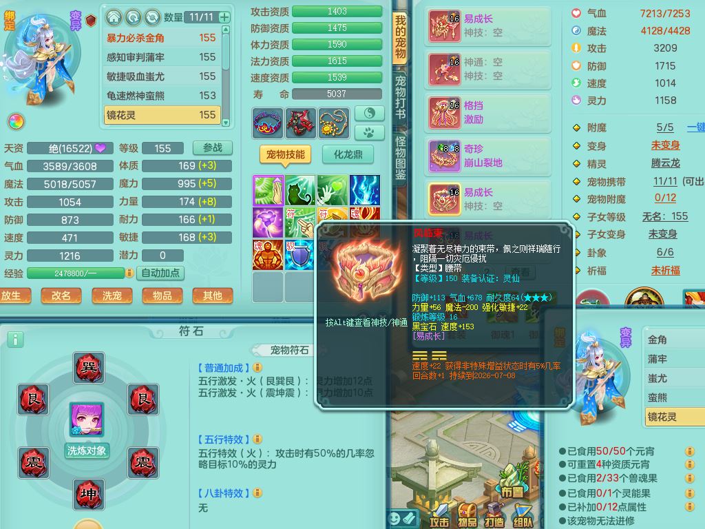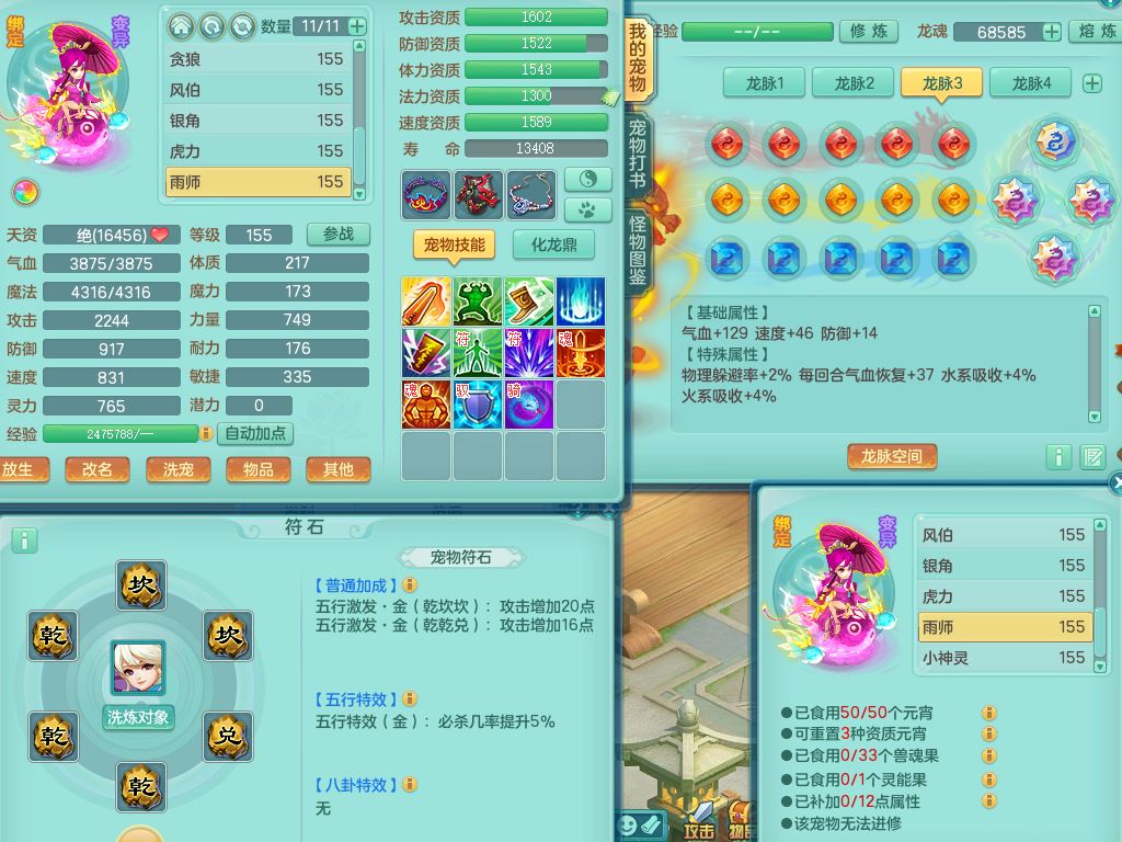 tx10352天下无双159女万兽精灵歌,满级共鸣,宝宝齐全,1镜花灵1龙姬胚子,满攻单加武器,单加Y头,格挡野兽衣服,崩山项链,单加Y腰带,单加Y鞋,鼎4.5,19仙兽灵19内丹碎片,可以换绑
