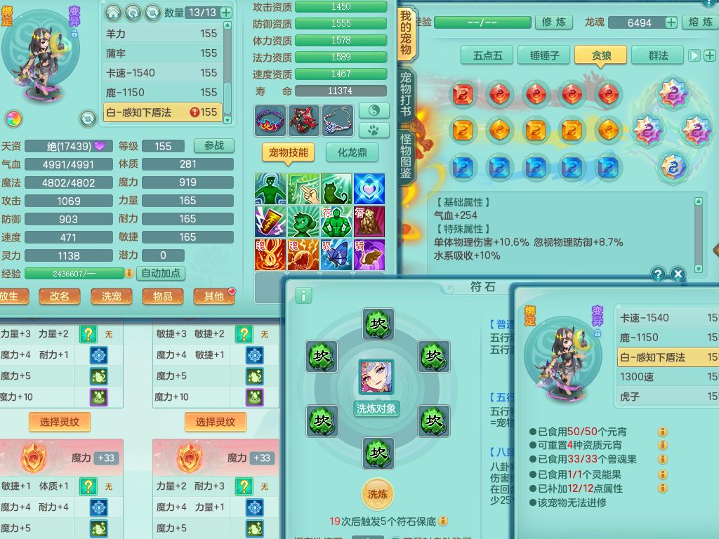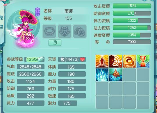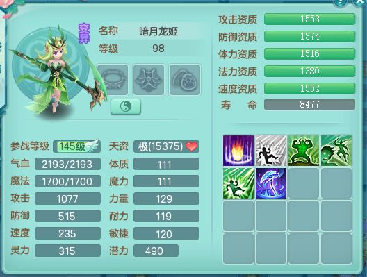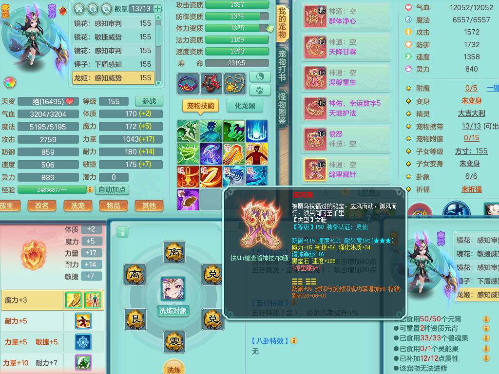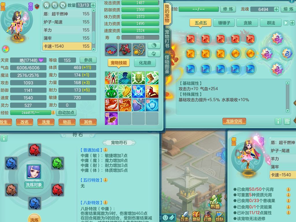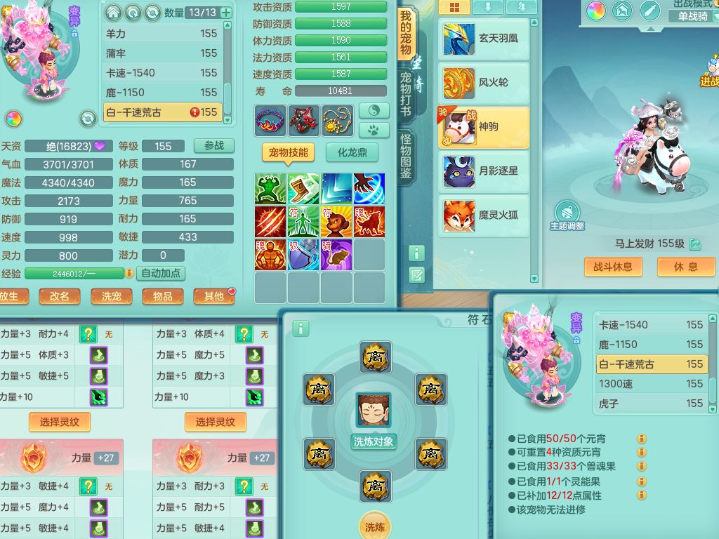 tx10353天下无双159女方寸【神驹马上发财】精灵舞,1内丹青蛇8皮1特殊荒古兽决,4镜花灵(1胚子)2龙姬(1胚子)15只满果子13觉醒13个纯6字,全身单加愤怒5特,神佑幸运罗汉项链,鼎5.5+70,144天月卡,永久外观精灵皮肤,24850金币,42内丹碎片,宠排在榜,3坐骑(1只飞行双人)