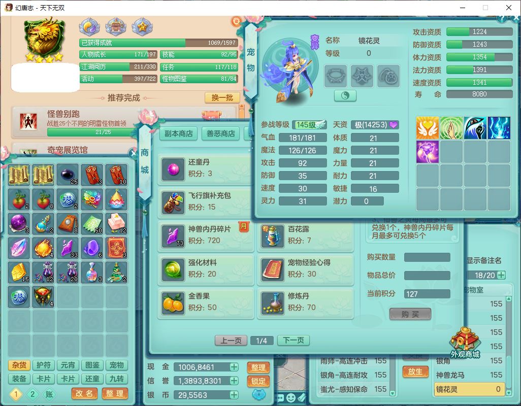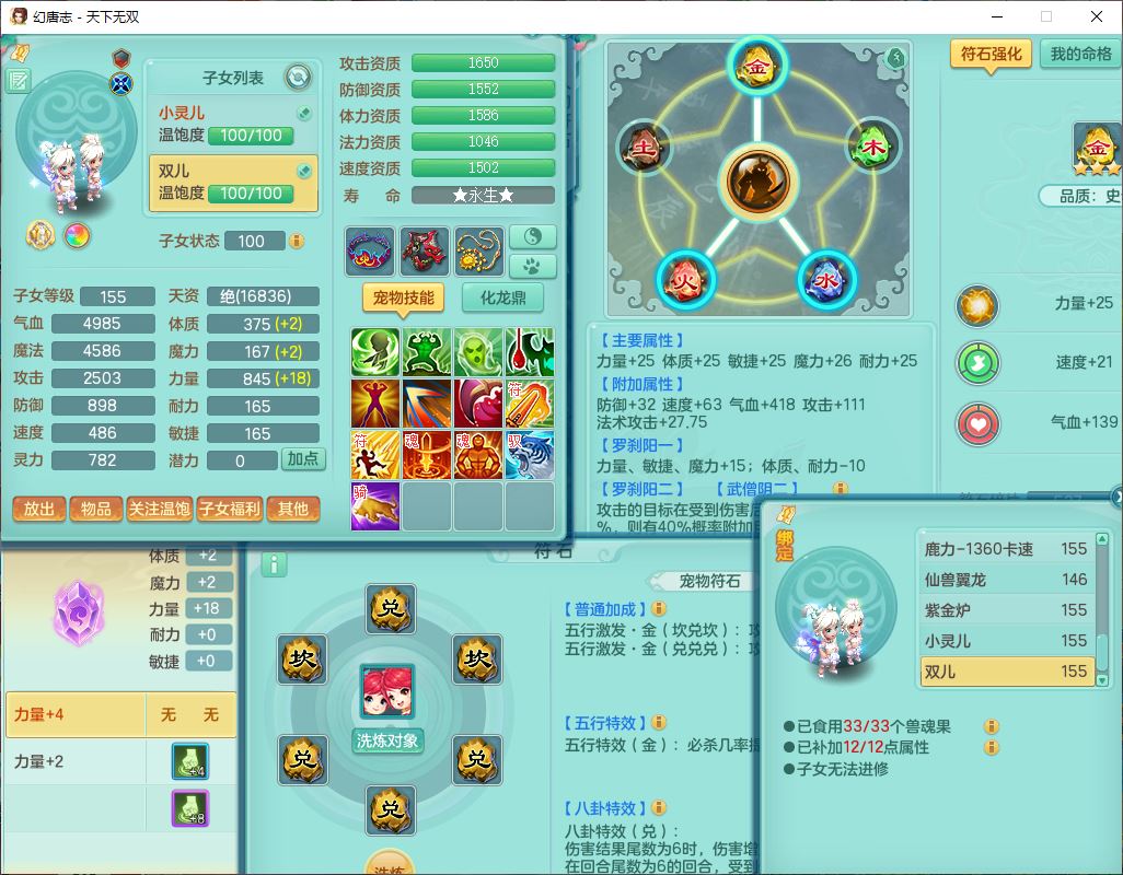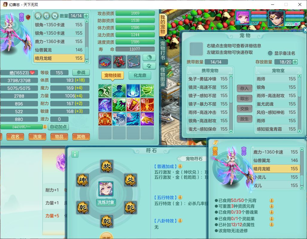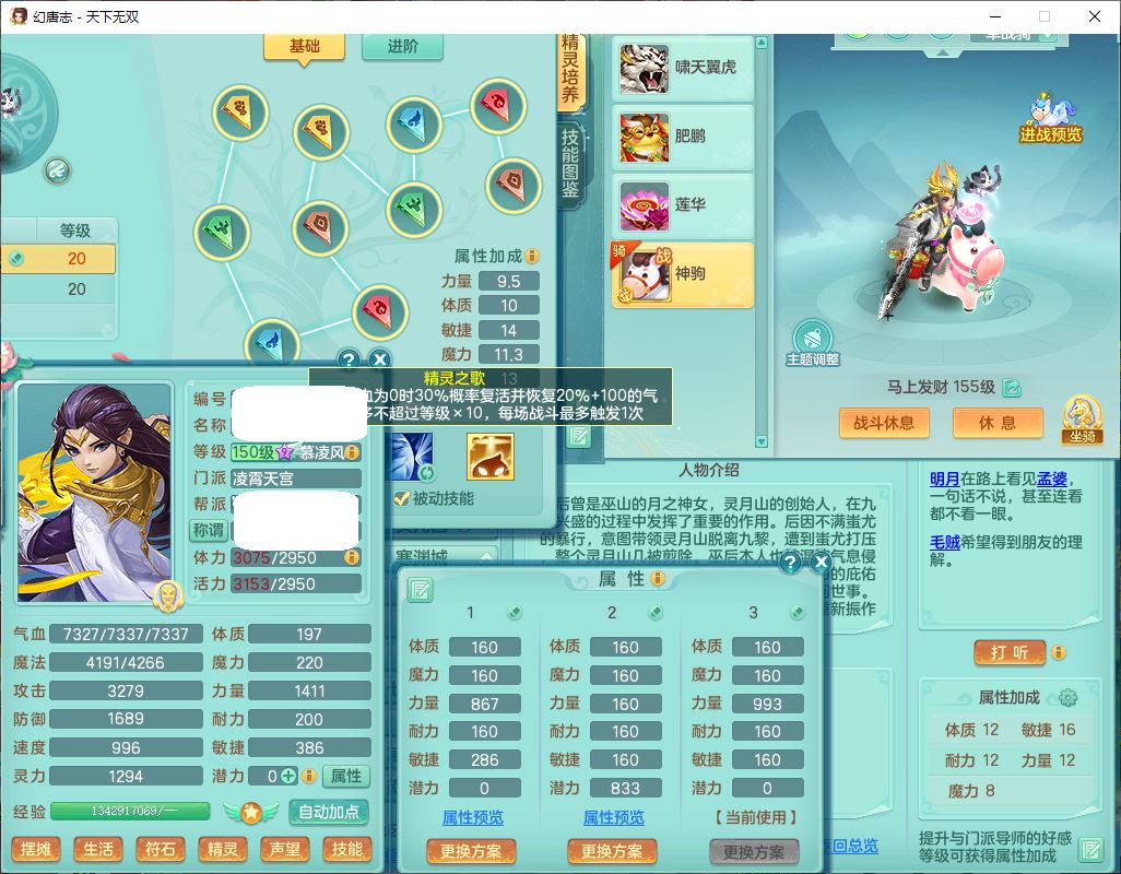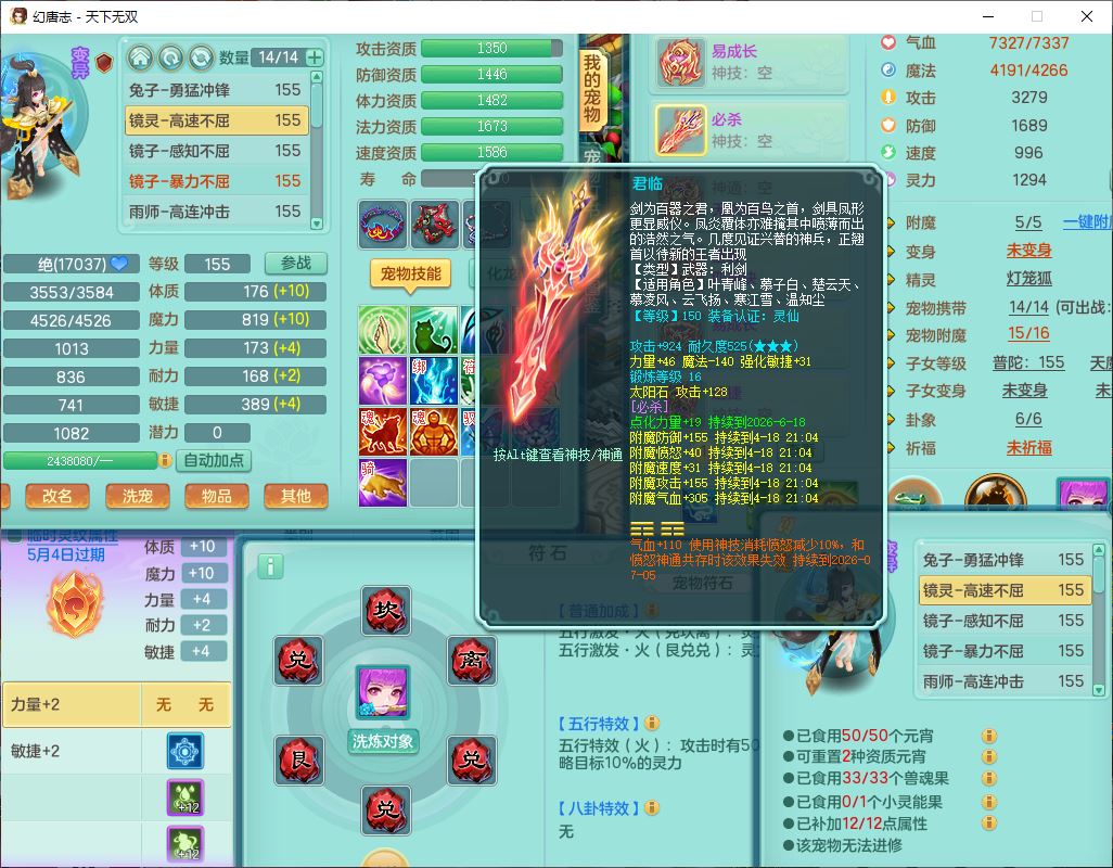 tx10357天下无双159男天宫【马上发财+火焰之力+准潜龙号,差1只宝宝4条条主符石1条附加2颗厚土】精灵歌,1龙(无内)1内1龙马(无内)1特殊(雷光兽决)4镜花灵1望归1龙姬,7觉醒6六字1五字10四字20只满果子,7红全单加装备,924必杀武器,破血衣服,坚毅四灵项链,930单加Y武器,鼎5.5+70,125天月卡,房屋155,永久外观精灵皮肤,33内丹碎片,2坐骑(1只飞行双人)