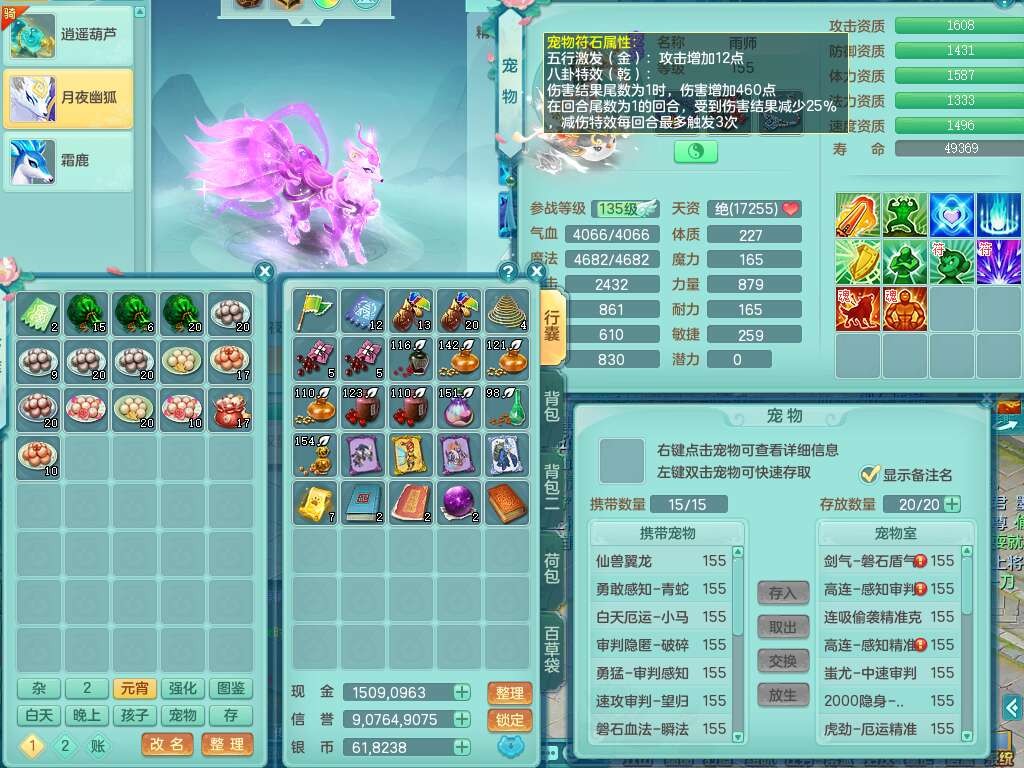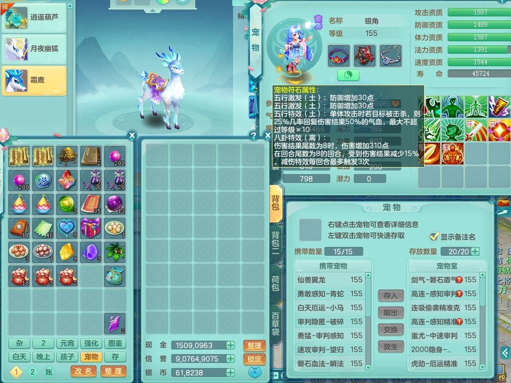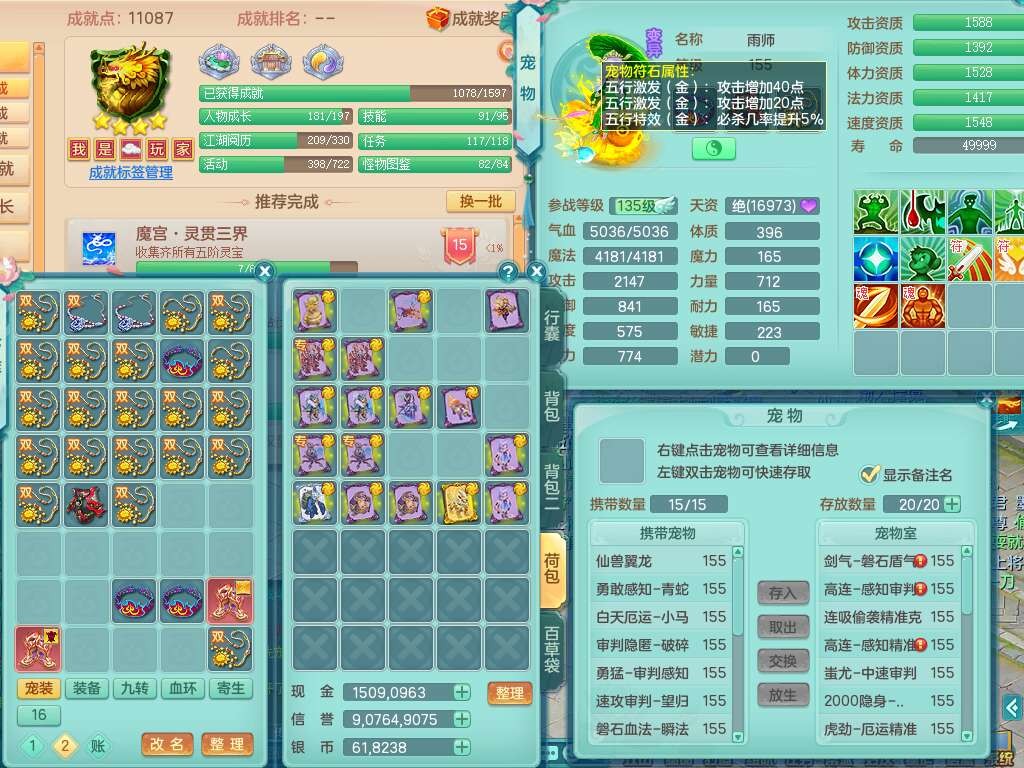 S22253风华绝代159男万兽,精灵歌,1龙无内,4内胆神,1破镜,1特殊(飞花),4只觉醒,4宠皮,2只六技能镜花灵,1只6技能龙姬,易成长单加50头,902狂暴单加54武器,强壮罗汉单加56衣服,神佑单加链子,崩山单加53腰带,易成长单加57鞋子,5.5基础鼎+70攻,13个格子,3个纯六字,5个5字,综合13只满果子,宠排在榜,修炼在榜,3个坐骑,带26天月卡。