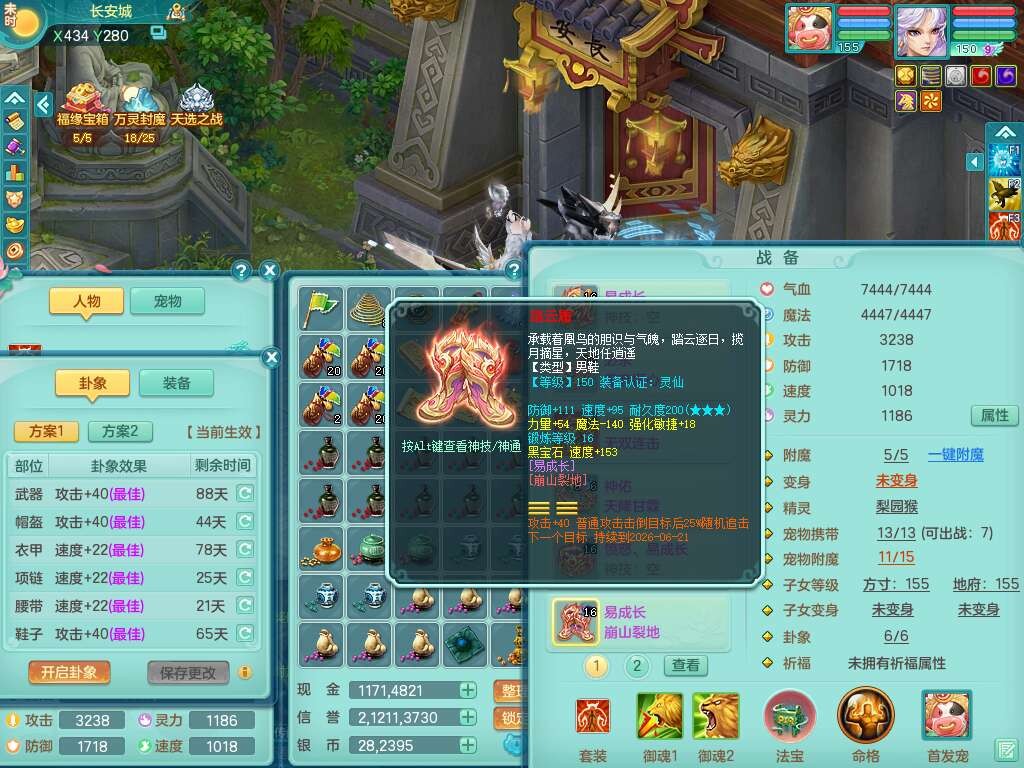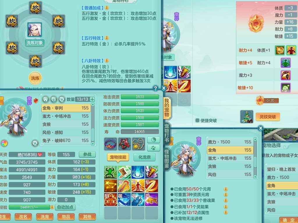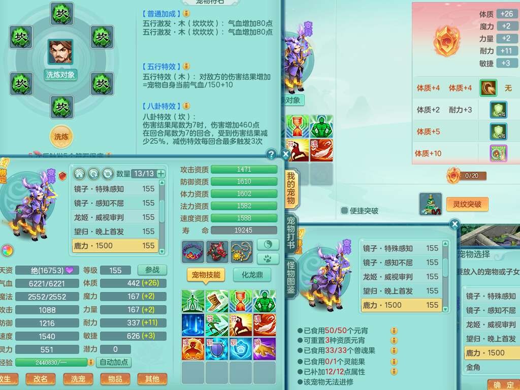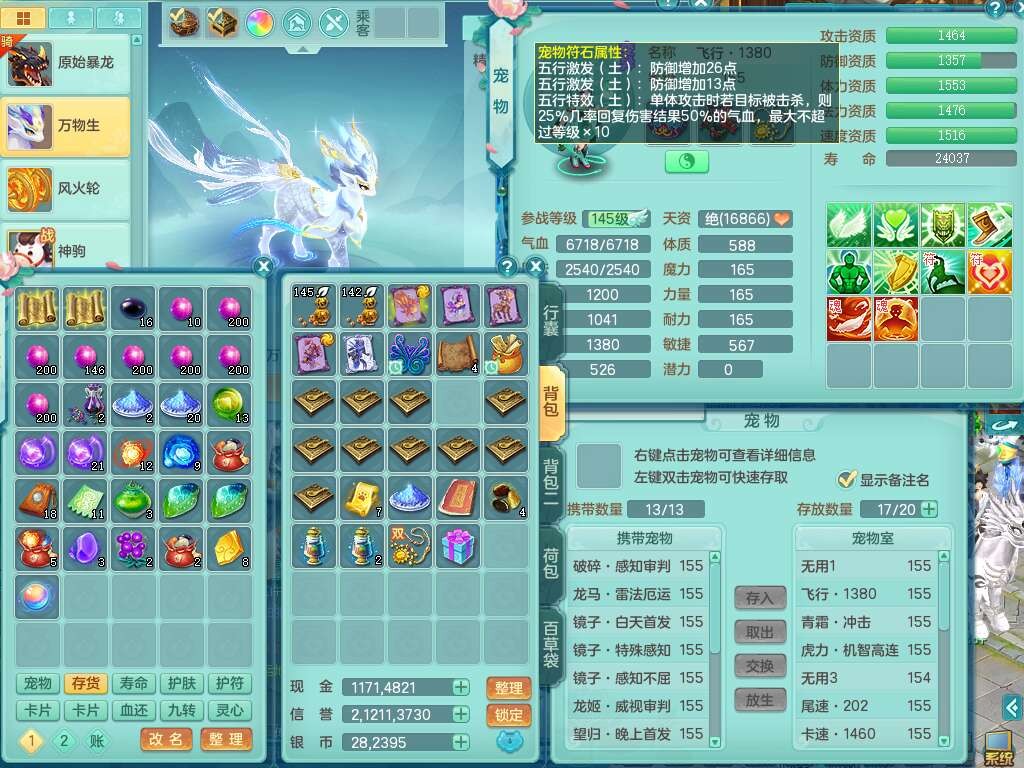 a22252超凡入圣男159男万兽,精灵舞,2内胆神,1破镜,【10觉醒,已潜龙】,8位靓号不含4(AAAABBCC),7宠皮,1特殊(祈雨),3只六技能镜花灵,2只六技能龙姬,易成长单加头,934必杀魔音摄心单加武器,神佑四海链子,愤怒易成长单加腰带,易成长崩山单加54鞋子,5.5基础鼎+70攻+280血,10个纯六字,2个五字,17只满果子,仓库还有101个果子,有30个神兽内丹碎片,2只双人坐骑,暴龙泰坦+逍客+神驹心想事成+火焰之力武器+西瓜冰武器,带11169金币,61天月卡。