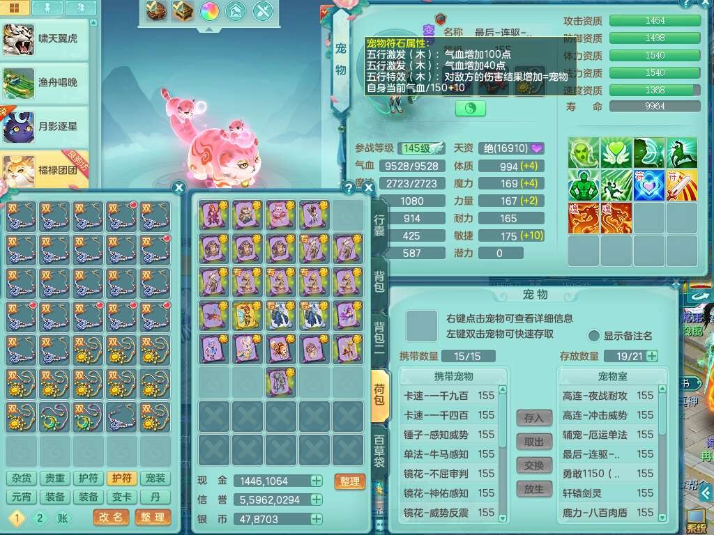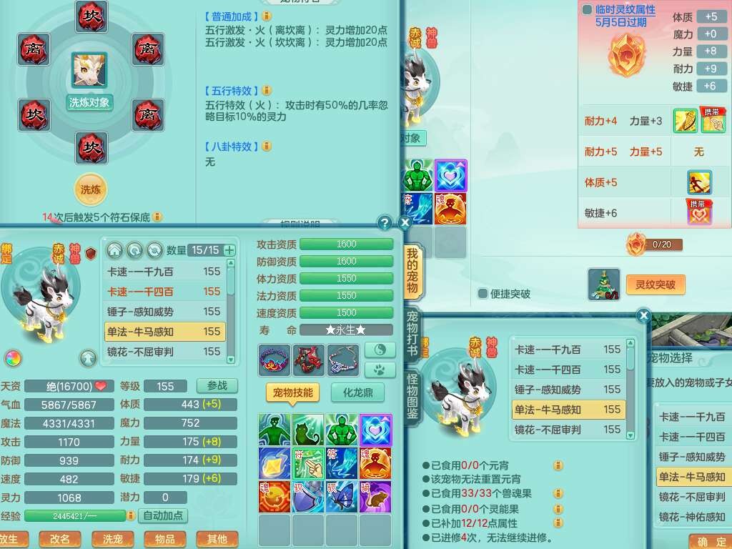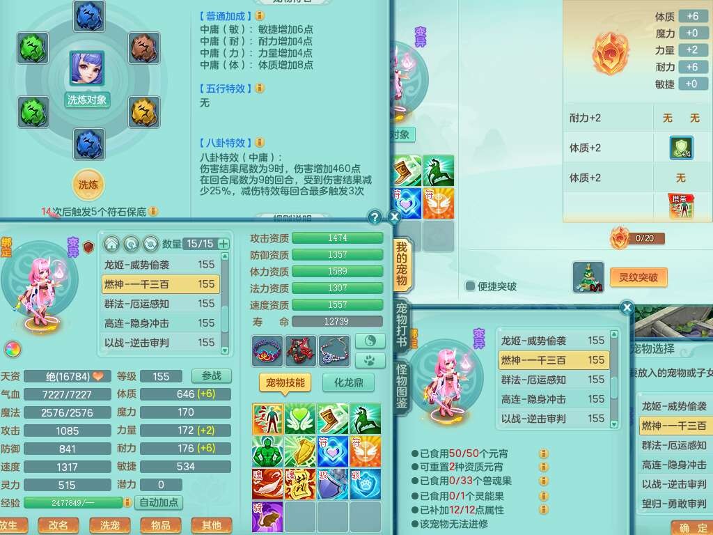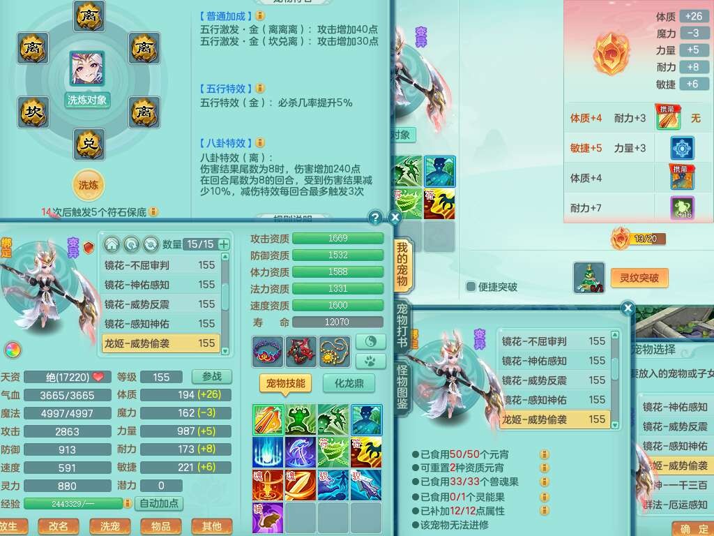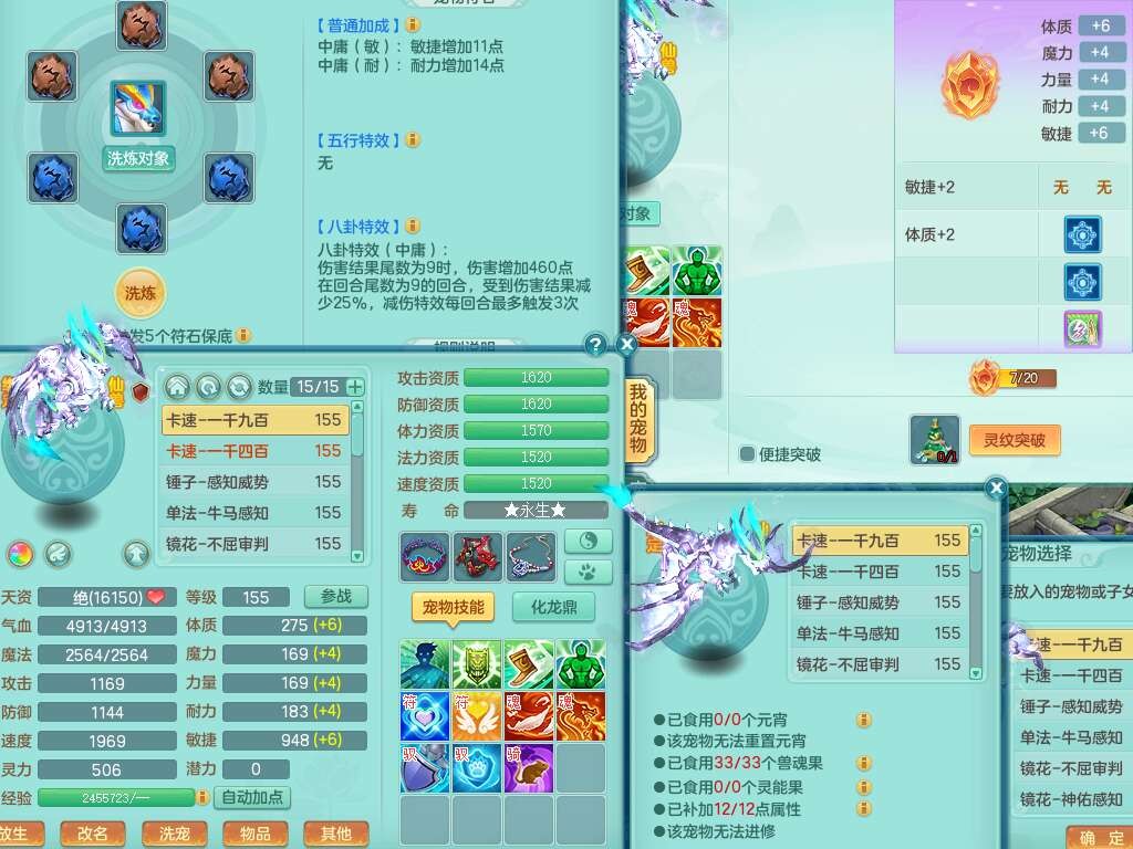 a22244七窍玲珑159女方寸,精灵舞,2龙(1龙没内),2内胆神,【10觉醒,已潜龙】,8位靓号不含4,2宠皮,4只六技能镜花灵,1只六技能龙姬,愤怒群体守备腰带,易成长罗汉单加57鞋子,六特,5.5基础鼎+70攻+280血,14个纯六字,1个五字,21只满果子,宠排在榜,2只双人坐骑,118天月卡。带1个155奶粉,1个152奶粉。