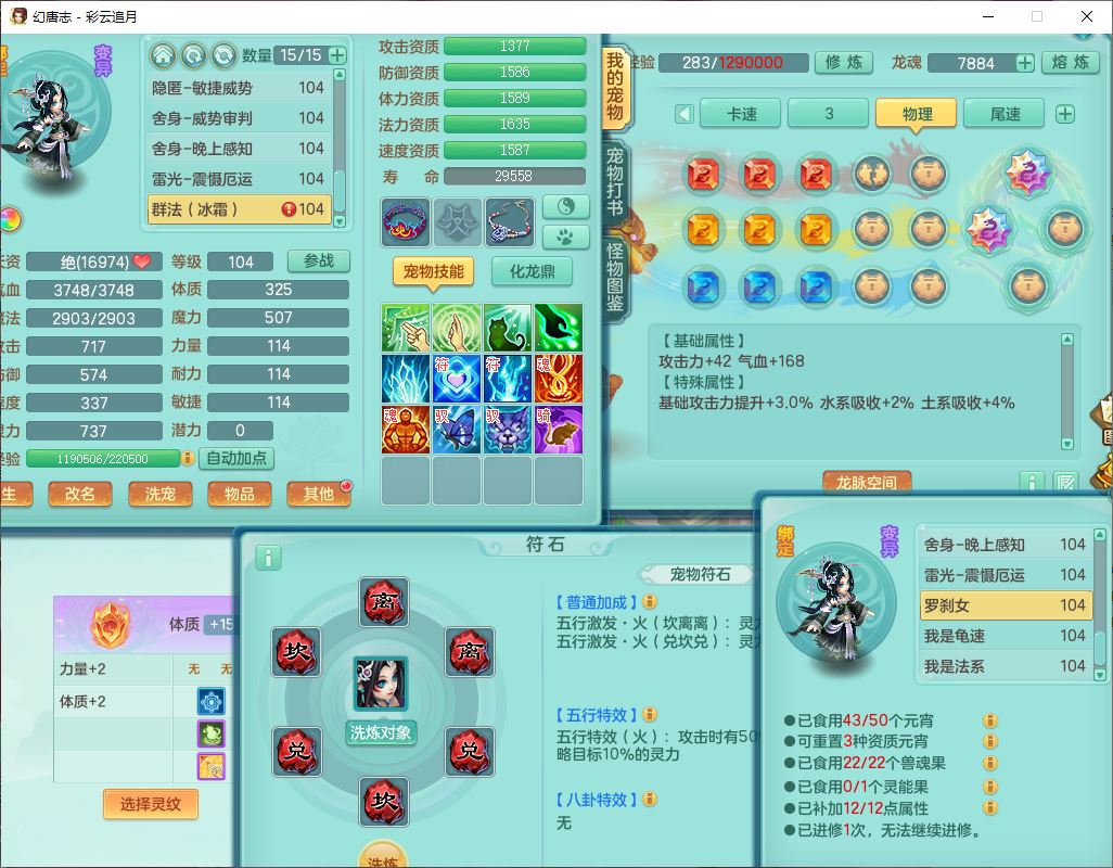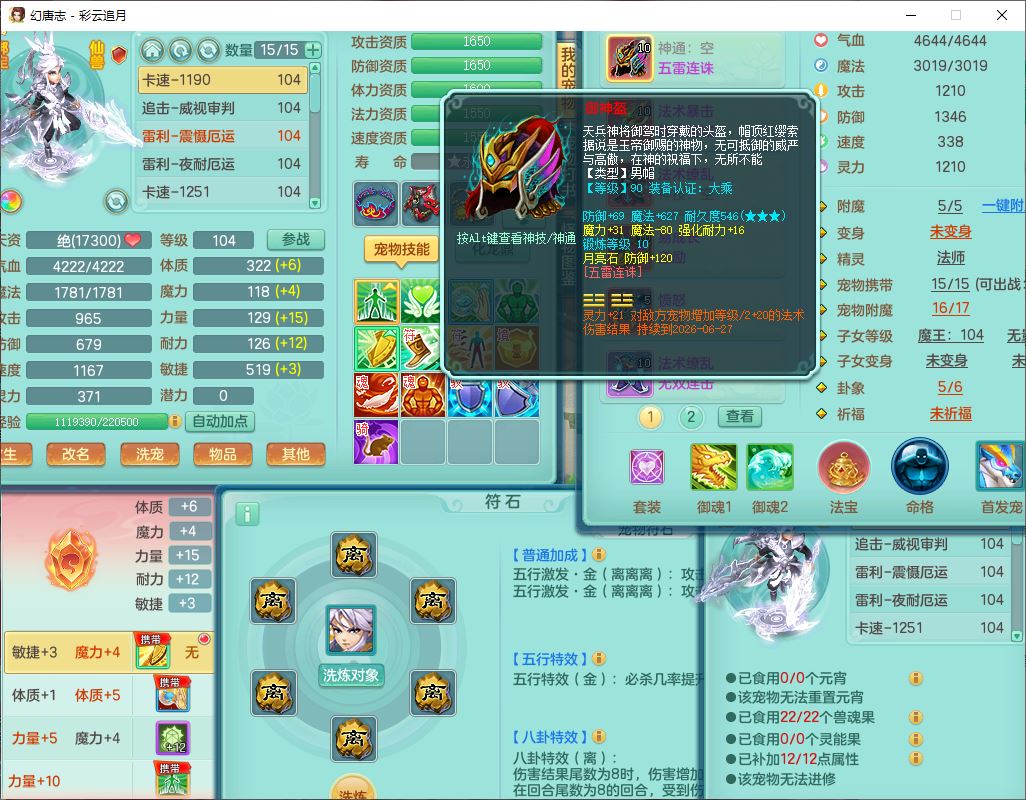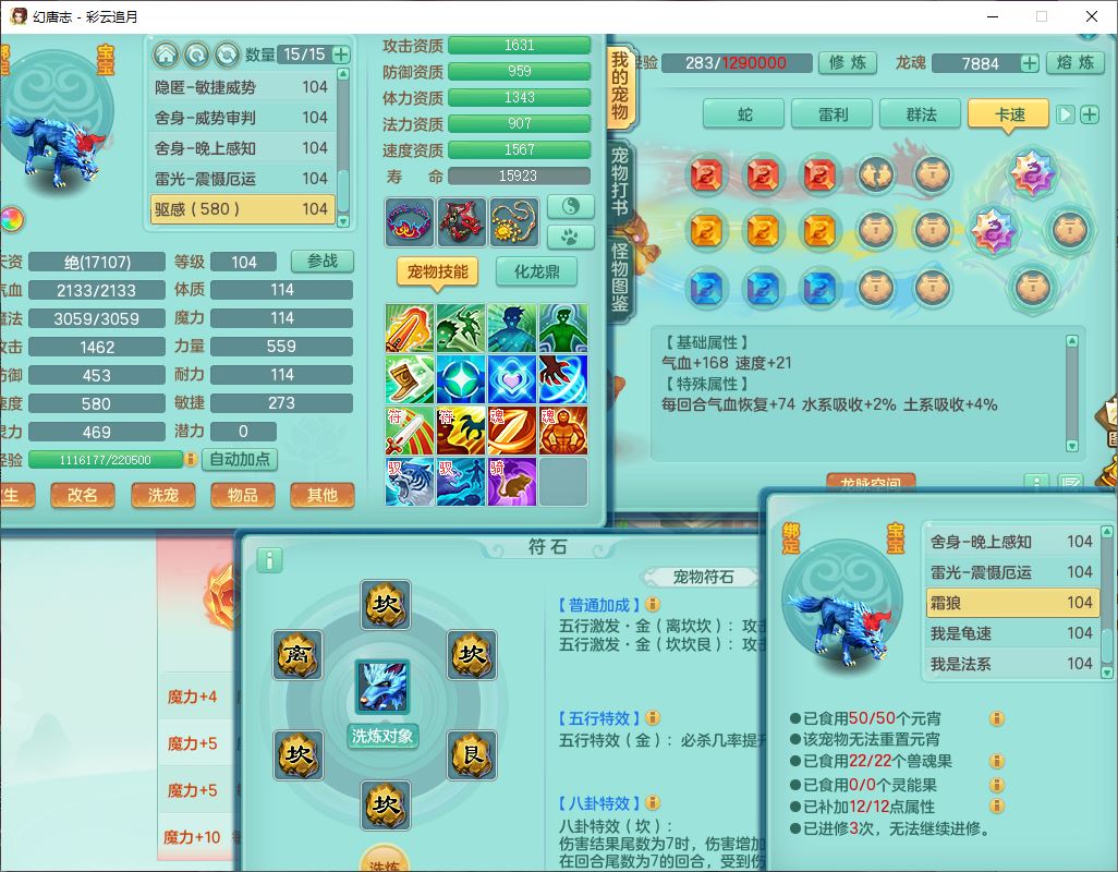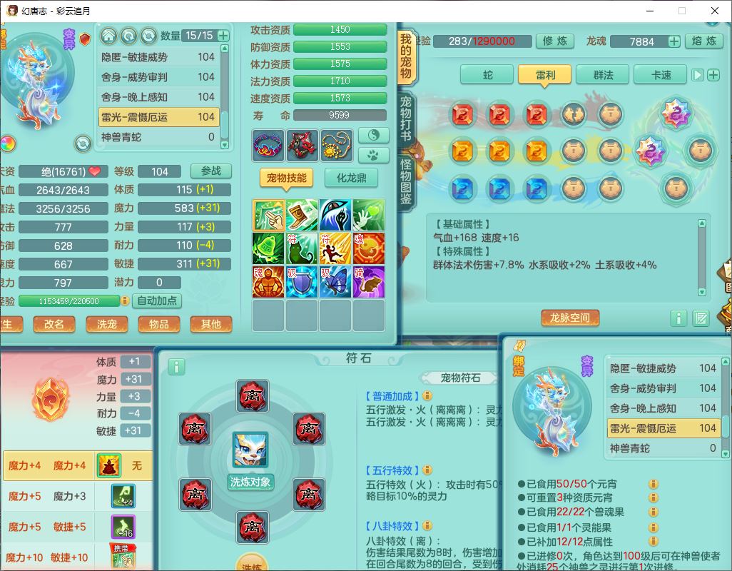 4369彩云追月99男龙宫【潜龙号+龙皮号+暴龙泰坦+西瓜冰】全魔精灵、力敏精灵,5龙(2破境)2内(1青蛇)1青蛇(无内)2翻江2舍身1建木1炉子,1龙皮11觉醒3宠皮7六字1五字7四字19只满果子,9红双法缭星辰之拥装备,单加五雷帽子,单加法爆烽火武器,法术缭乱衣服,单加Y激励项链,单加愤怒腰带,单加法术缭乱破血鞋子,一套9红物理装备,破血衣服,幸运8神佑迟滞项链,愤怒四海腰带,鼎3.0+42+168,2套符石,69天月卡,永久外观饰物、精灵皮肤,46个内丹碎片,3双人坐骑(1飞行)