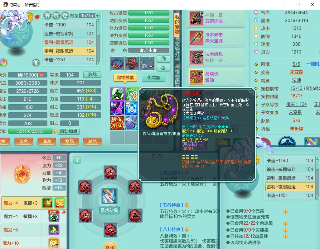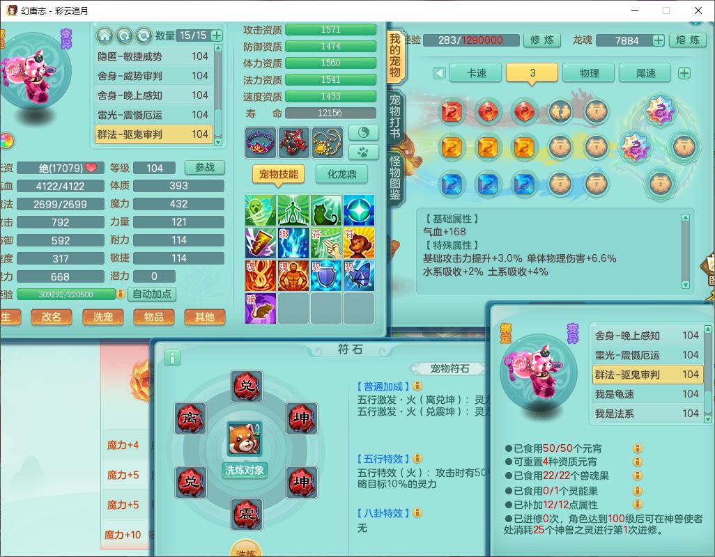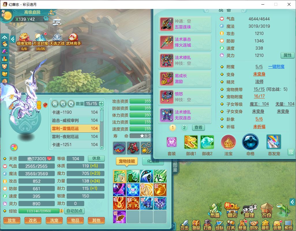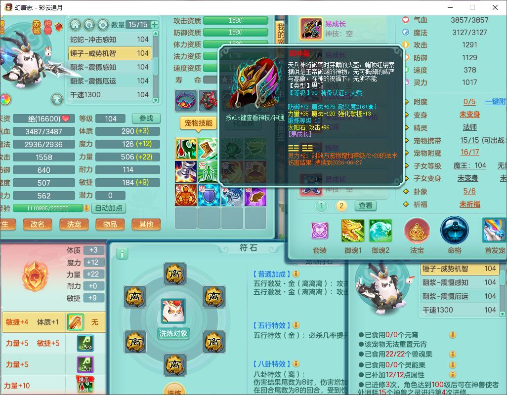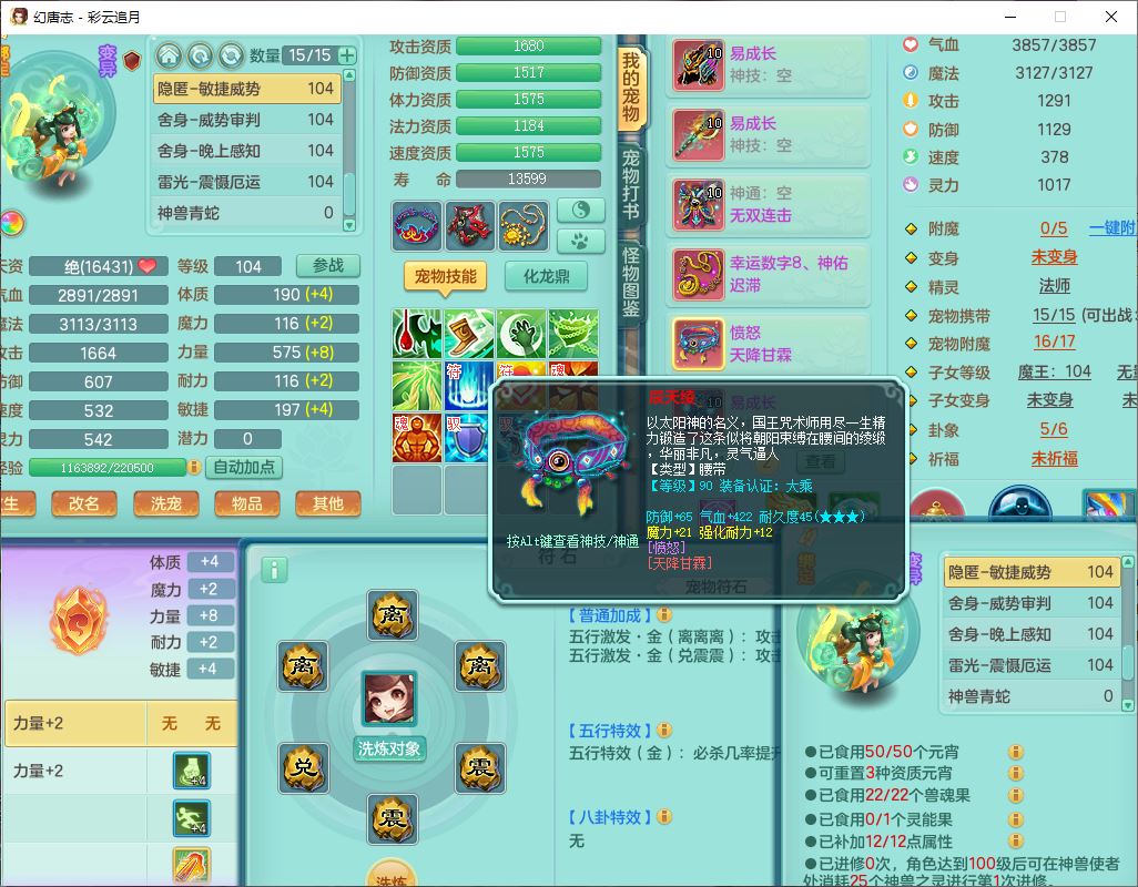 4369彩云追月99男龙宫【潜龙号+龙皮号+暴龙泰坦+西瓜冰】全魔精灵、力敏精灵,5龙(2破境)2内(1青蛇)1青蛇(无内)2翻江2舍身1建木1炉子,1龙皮11觉醒3宠皮7六字1五字7四字19只满果子,9红双法缭星辰之拥装备,单加五雷帽子,单加法爆烽火武器,法术缭乱衣服,单加Y激励项链,单加愤怒腰带,单加法术缭乱破血鞋子,一套9红物理装备,破血衣服,幸运8神佑迟滞项链,愤怒四海腰带,鼎3.0+42+168,2套符石,69天月卡,永久外观饰物、精灵皮肤,46个内丹碎片,3双人坐骑(1飞行)