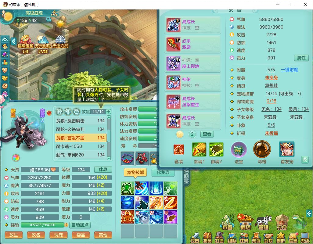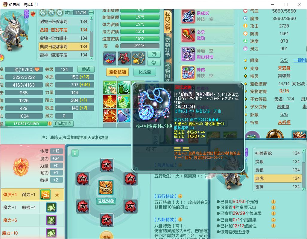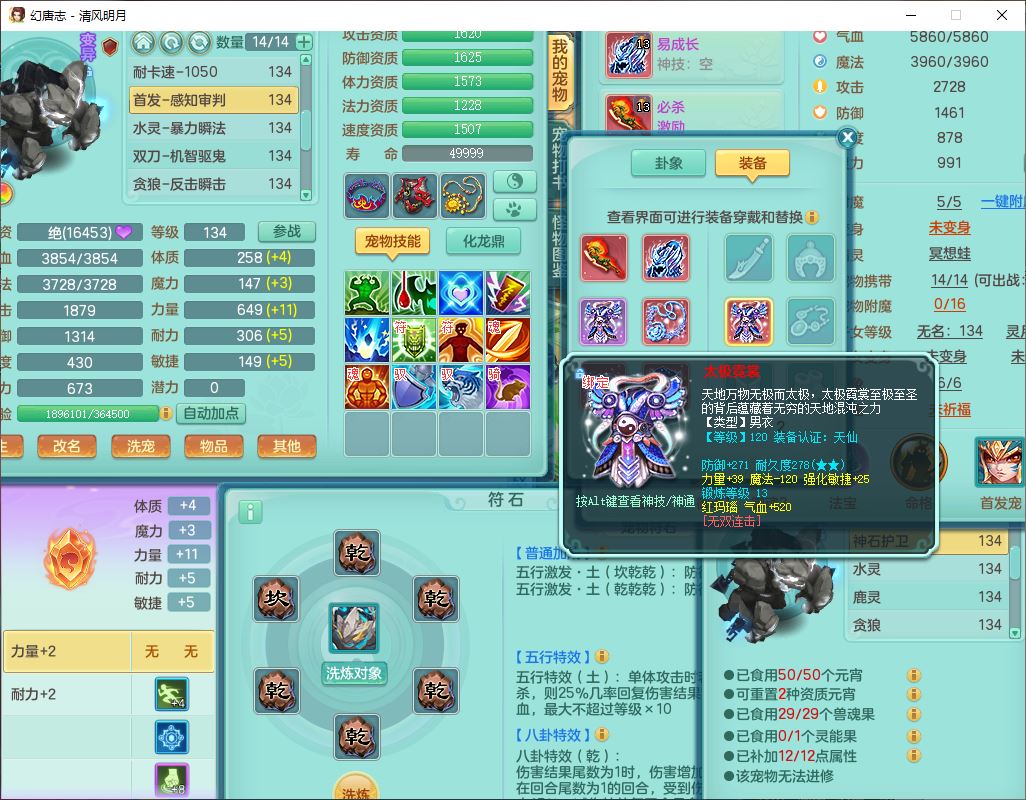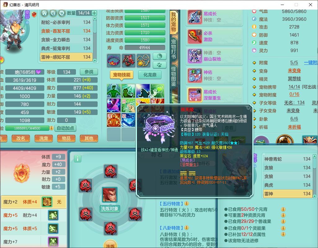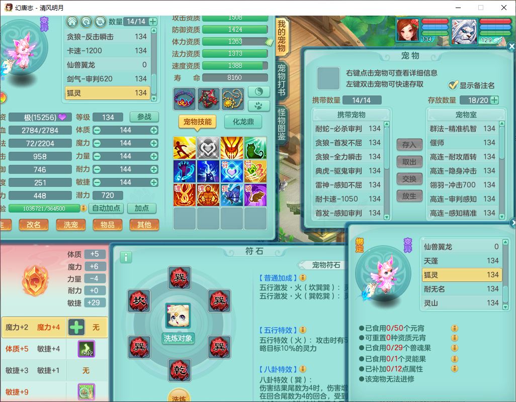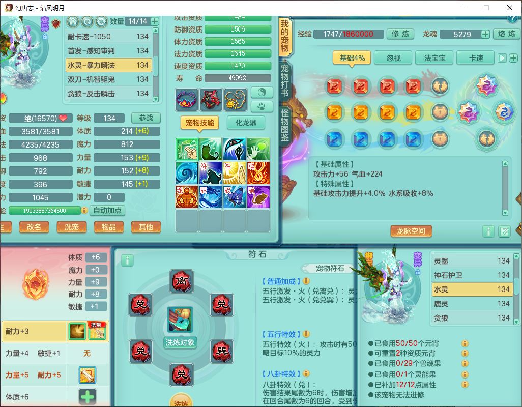 24297清风明月129男万兽【准潜龙号,差1只宝宝3条主符石1条附加】精灵歌,1龙(换、无内)1内丹青蛇3贪狼1神石1金炉,6觉醒7六字1五字13四字13只满果子,8红装备,必杀激励武器,崩山衣服,神佑项链,Y慈航腰带,仓库多双红,可搭星辰只有法系装,法爆回天武器,幸运法缭笑里衣服,鼎4.5+56+224,23个内丹碎片,1双人飞行坐骑