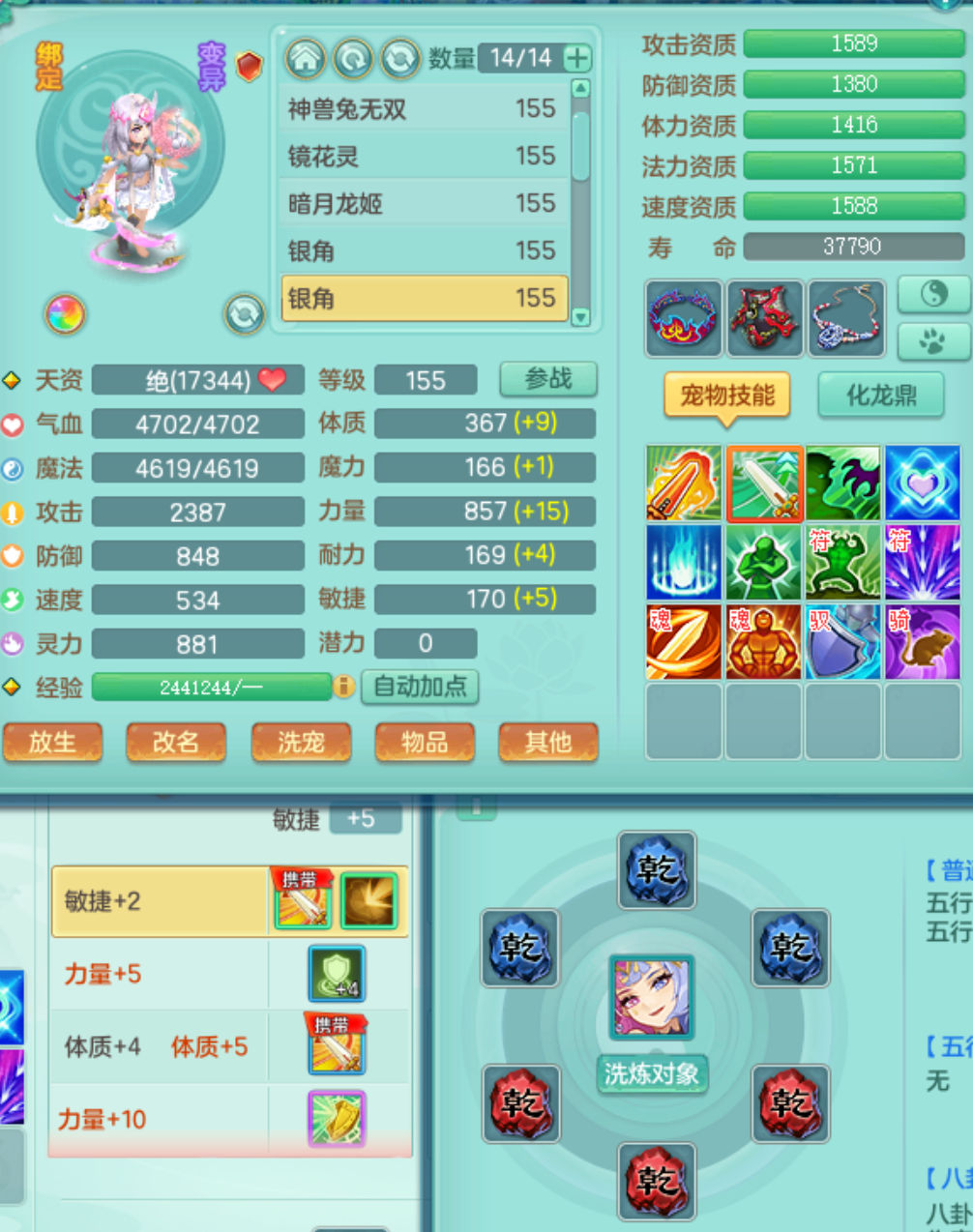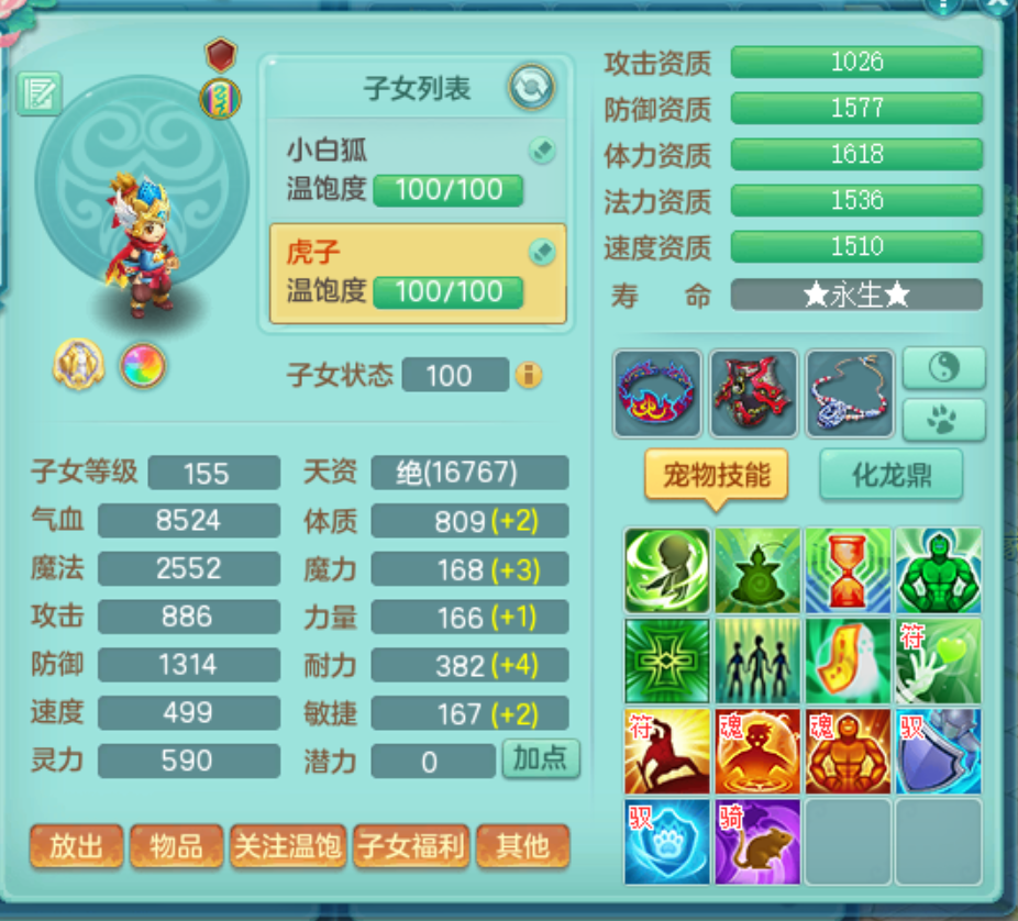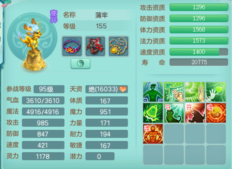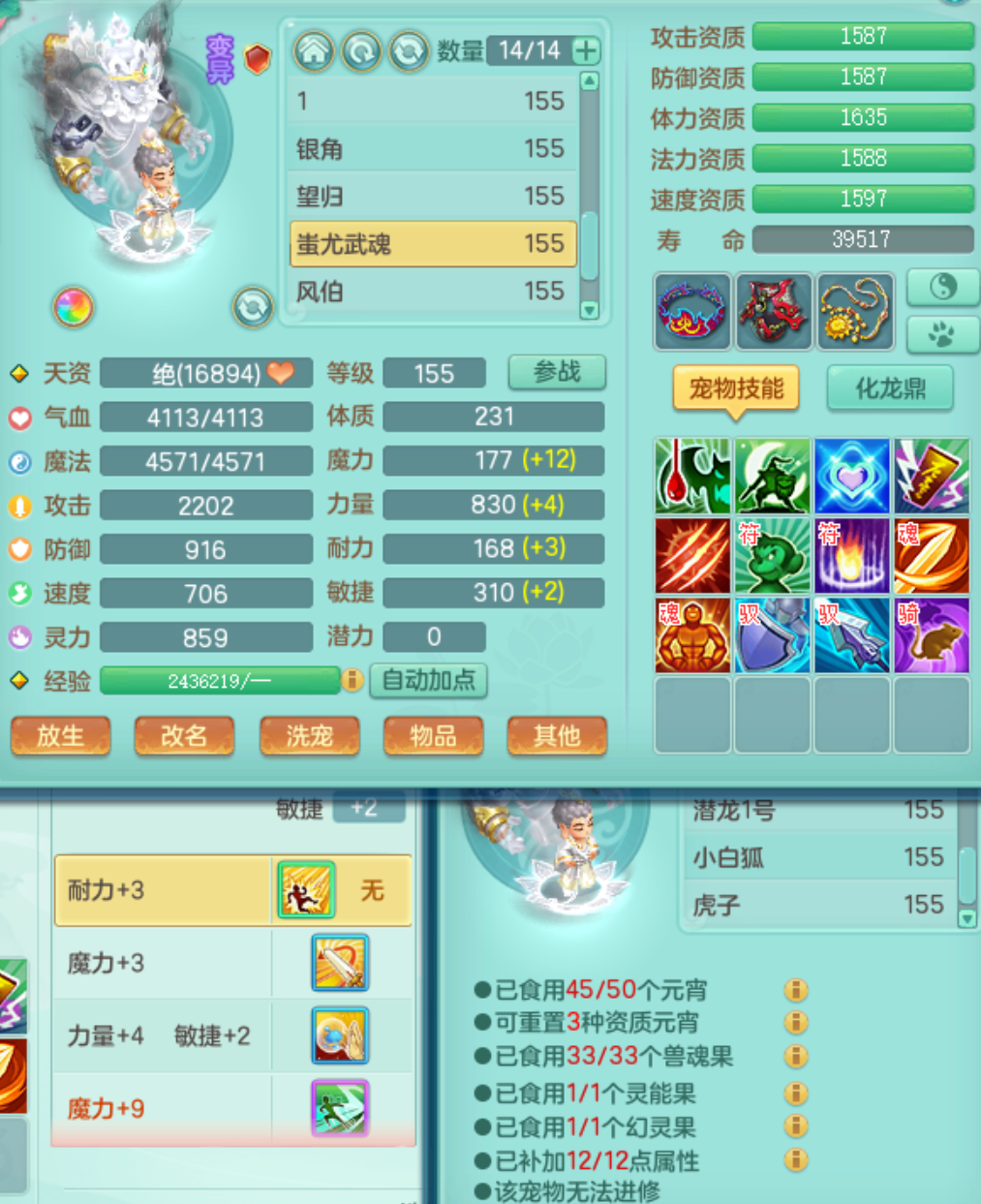60941风驰电掣159天策 1龙无内 1内丹神+22碎片 5个宝宝皮肤【3银角】 7觉醒 14只满果子 9红物理装备 精灵舞 化龙鼎5.5+70攻击力 3镜子1龙姬 2特殊 1天马之心 1双人坐骑 一套法系装备 57法爆武器 各类型宝宝齐全 上手可踢球