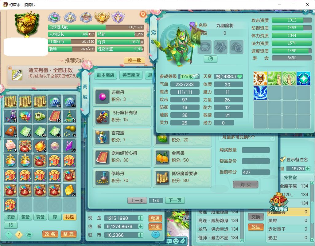 24295浪淘沙129男地府【潜龙号+暴龙逍客】精灵舞,3龙(换,无内)2内(1青蛇1龙马,1破境)1金炉,12觉醒7六字4五字6四字19只满果子,10红装备,Y疾速帽子,幸运守护衣服,愤怒Y腰带,Y四海鞋子,鼎4.0+56+224,152天月卡,庭院178房屋196,永久外观精灵皮肤,13内丹碎片,宠排在榜,2只双人坐骑,全明星冠军永久称谓