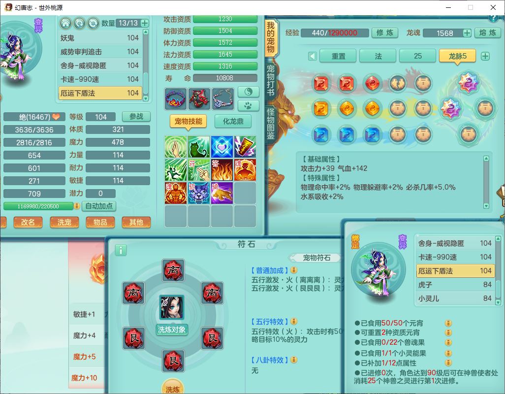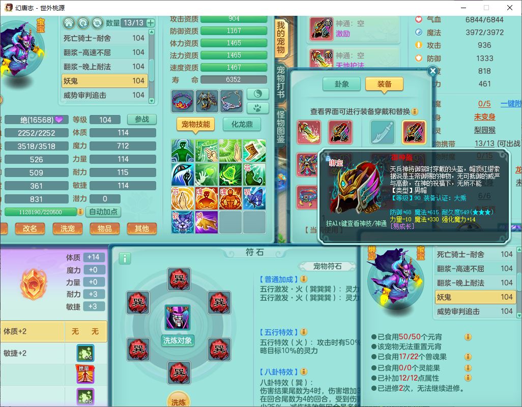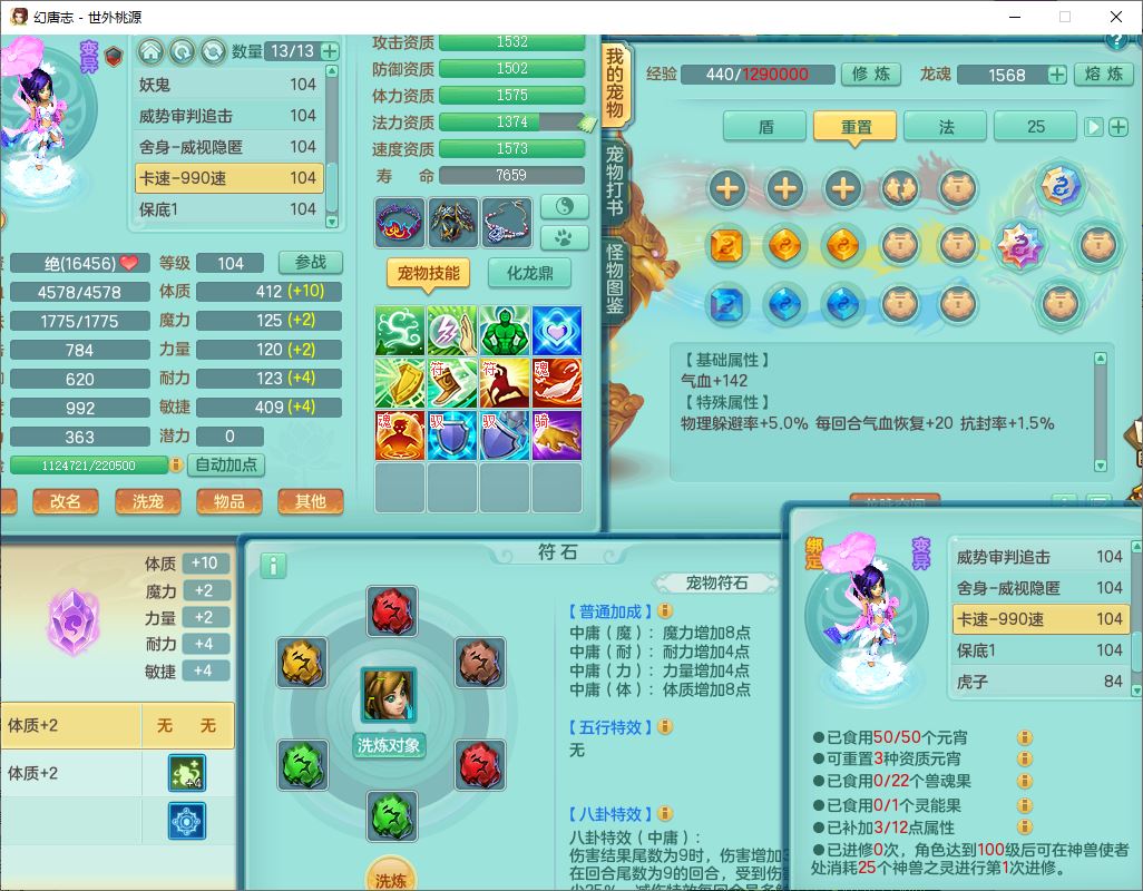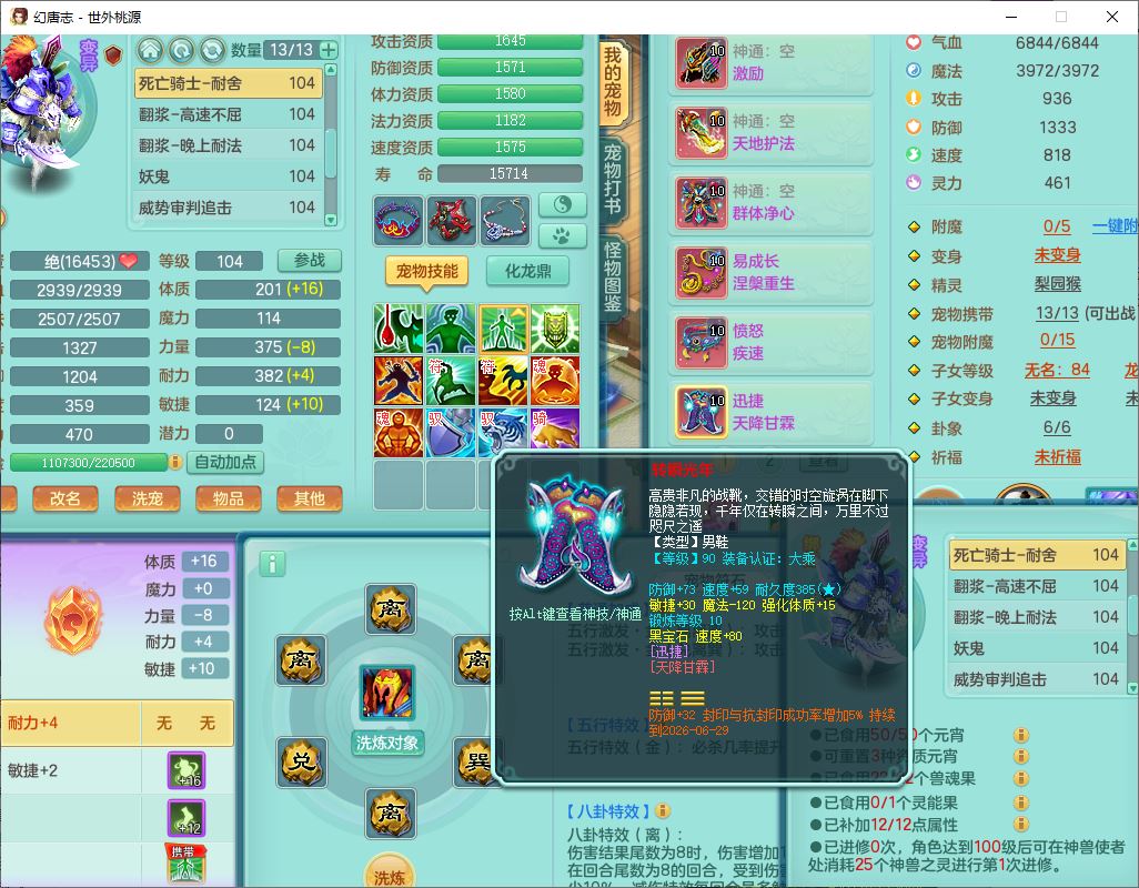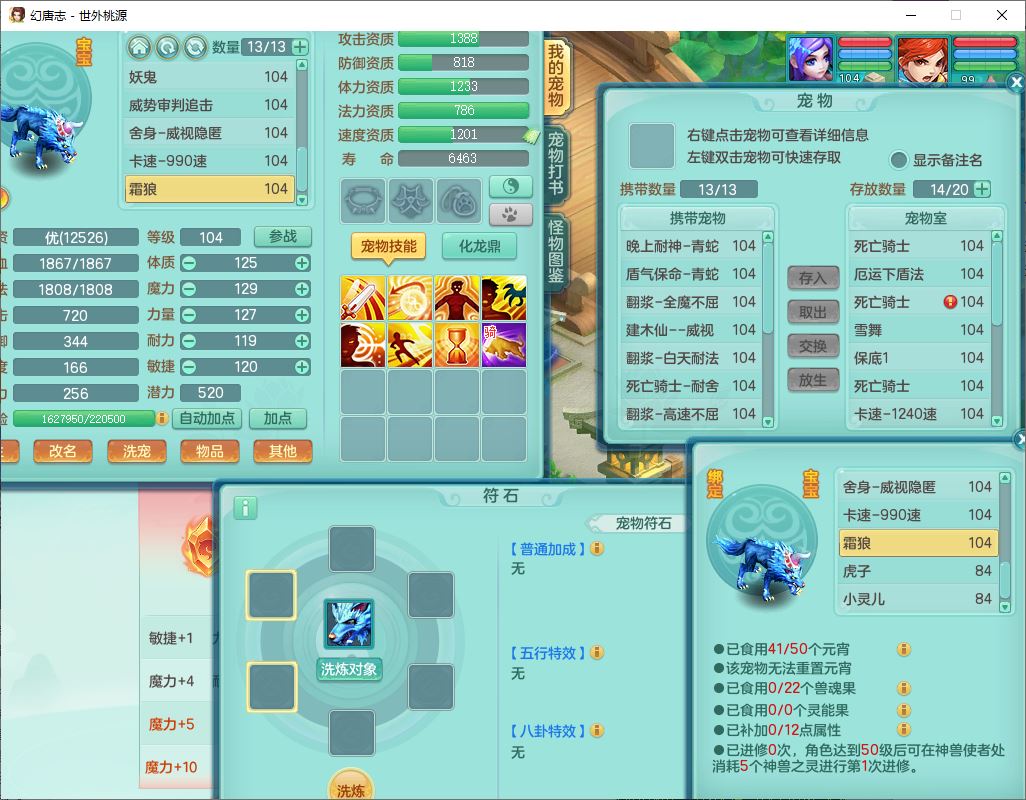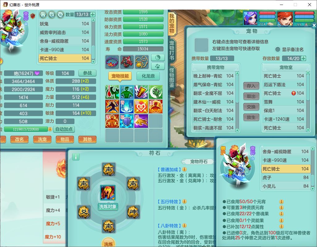62431世外桃源99男方寸体敏、力体敏双精灵, 2内丹青蛇5翻江5舍身1七技能雷光妖鬼1金炉,4觉醒1宠皮5六字1五字11四字14只满果子,9红装备,Y慈航项链,愤怒疾速腰带,迅捷四海鞋子,有物理装备,崩山衣服,愤怒四海腰带,神佑四海项链,鼎2.5,2套符石,3坐骑(1双人飞行)