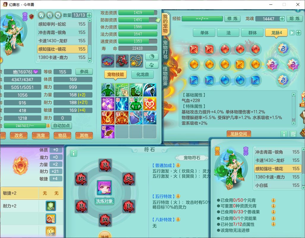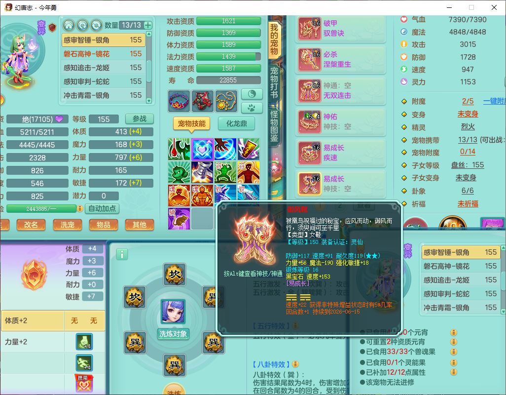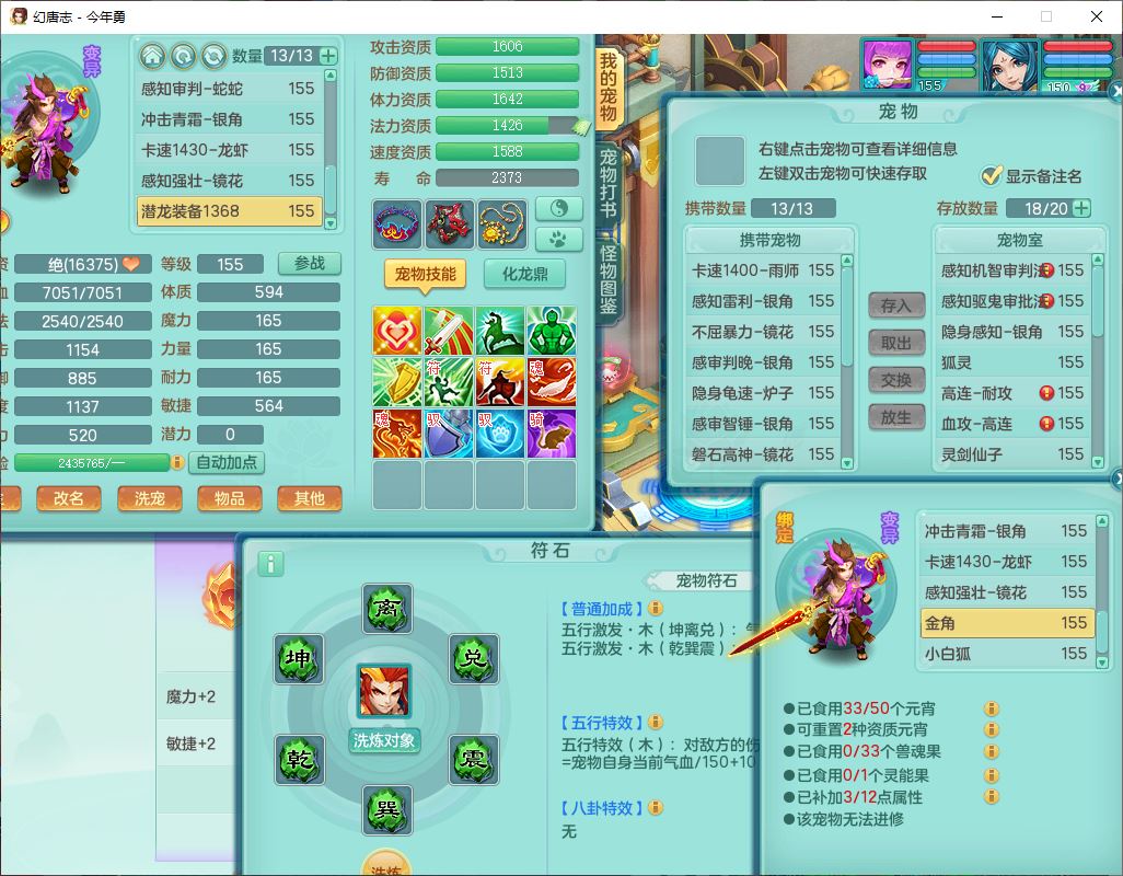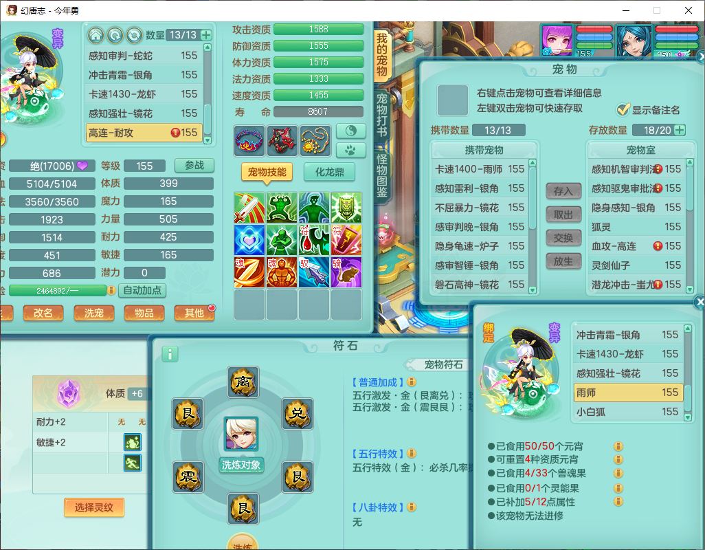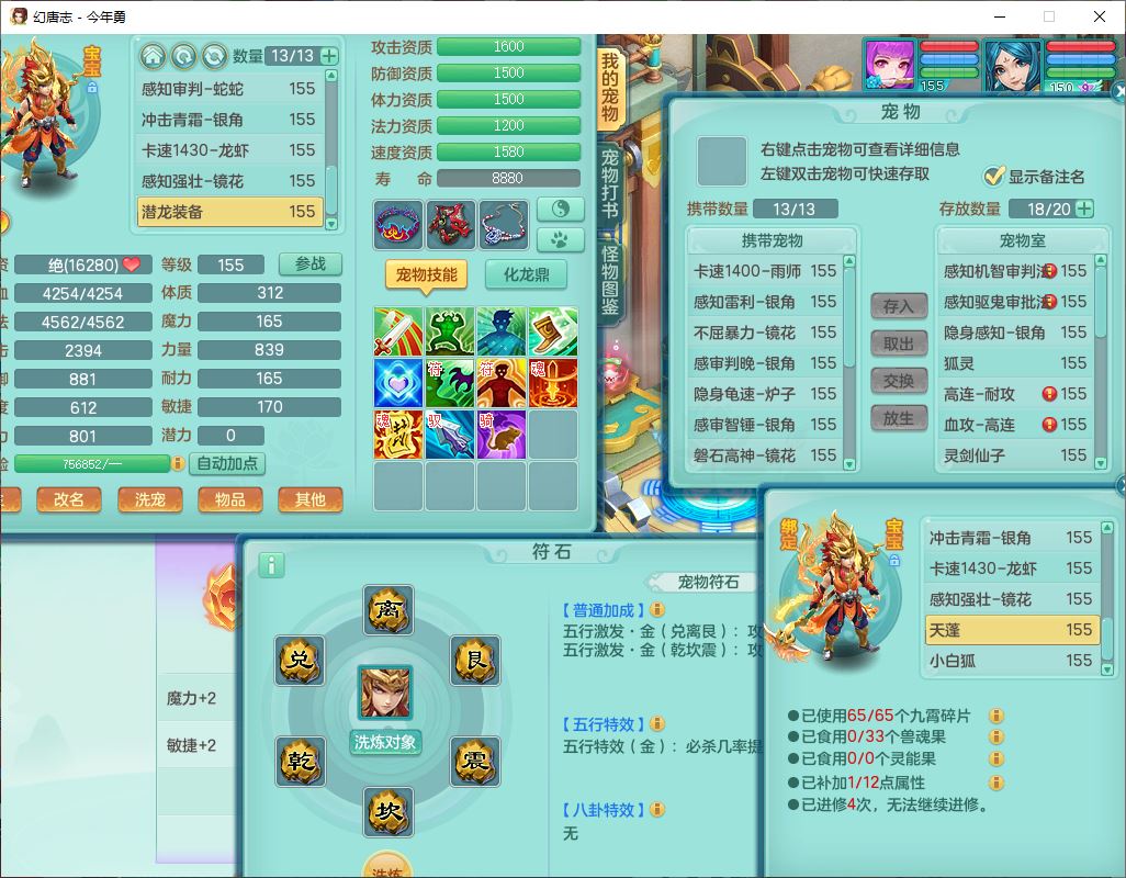 80747今年勇159女五庄精灵歌,1内丹青蛇3镜花1龙姬5特殊(雷利、破碎、青霜,兽决藕断、墨守)1金炉,1觉醒2五字12四字,9红星辰之拥装备,破甲驭兽帽子,必杀慈航武器,神佑项链,Y疾速腰带,崩山帽子,鼎4.5,庭院158房屋159,53个仙兽灵,33个内丹碎片,1双人飞行坐骑