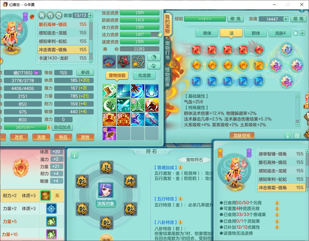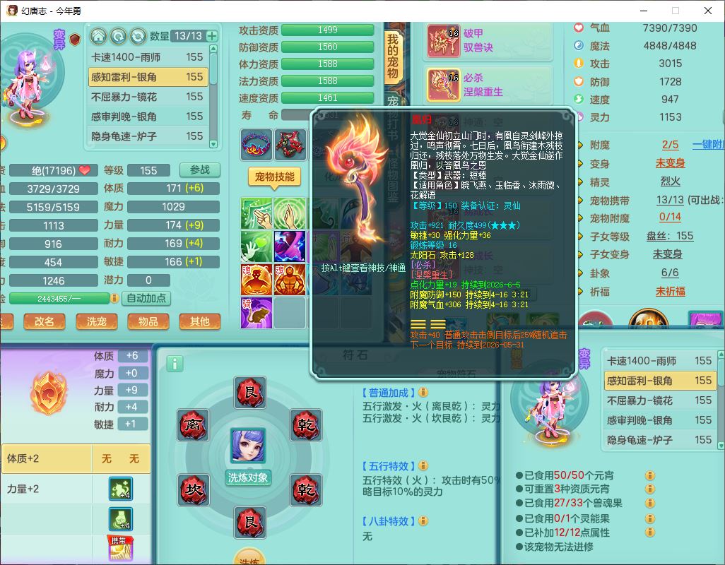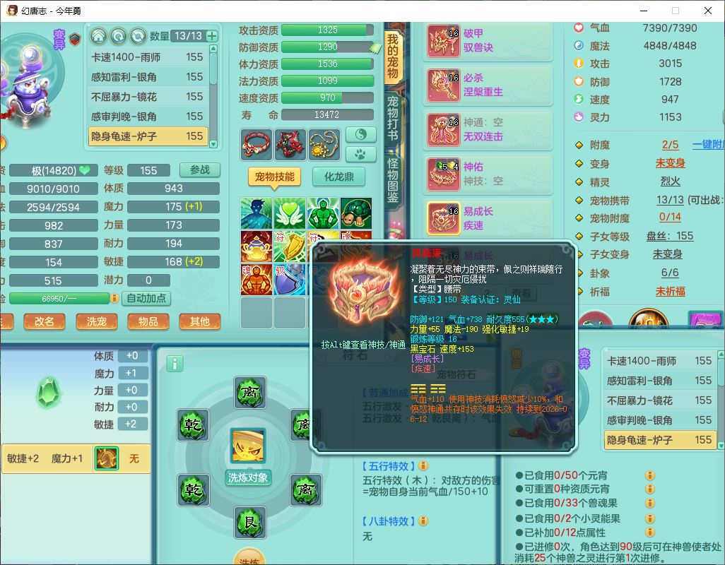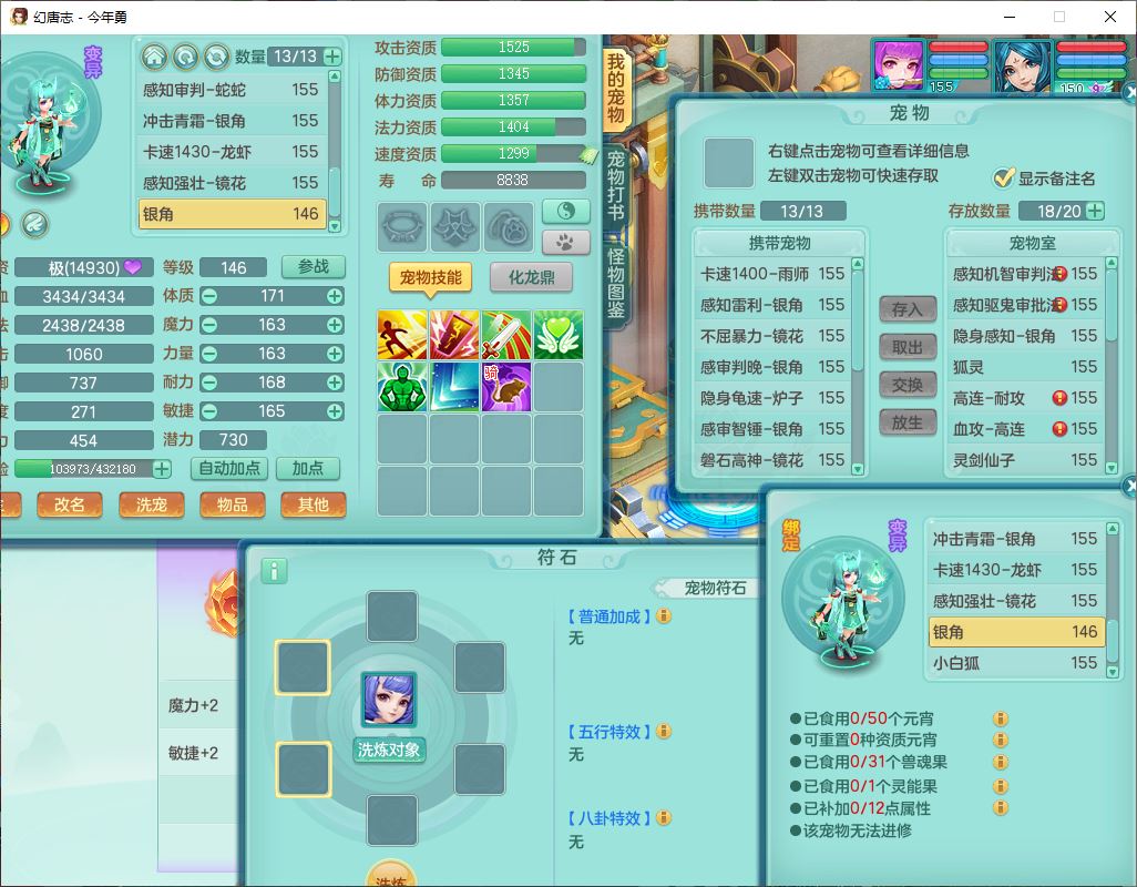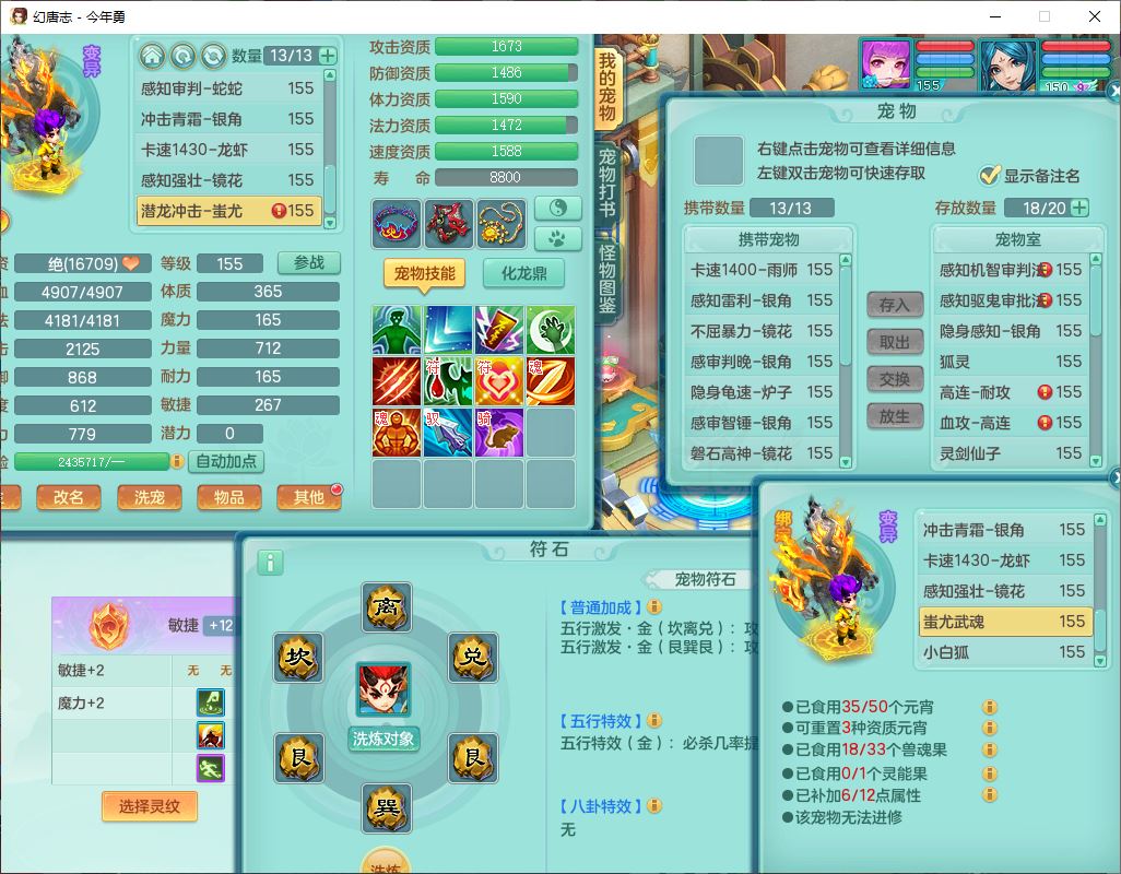 80747今年勇159女五庄精灵歌,1内丹青蛇3镜花1龙姬5特殊(雷利、破碎、青霜,兽决藕断、墨守)1金炉,1觉醒2五字12四字,9红星辰之拥装备,破甲驭兽帽子,必杀慈航武器,神佑项链,Y疾速腰带,崩山帽子,鼎4.5,庭院158房屋159,53个仙兽灵,33个内丹碎片,1双人飞行坐骑