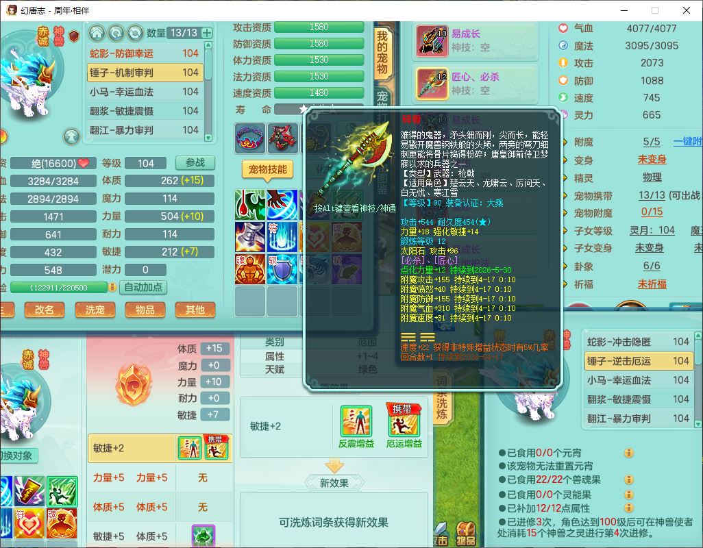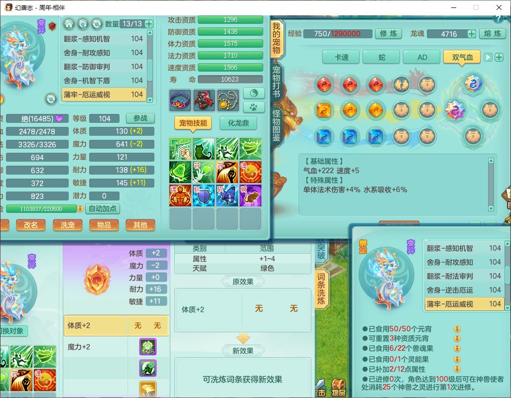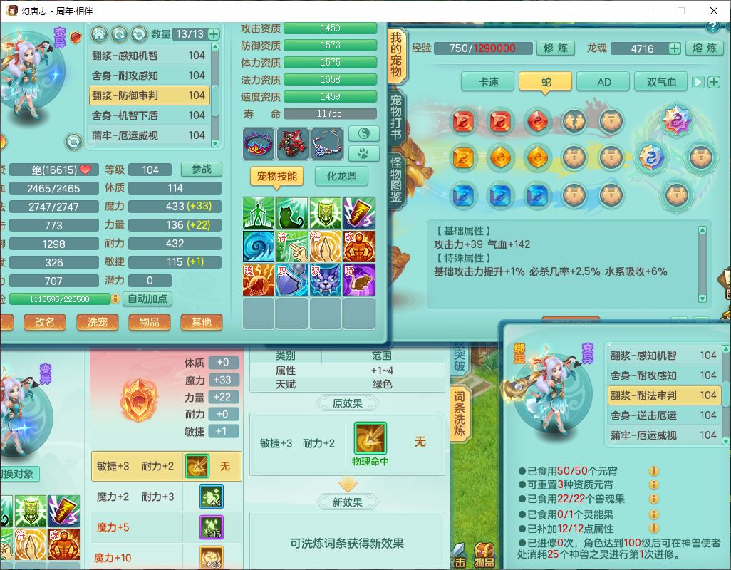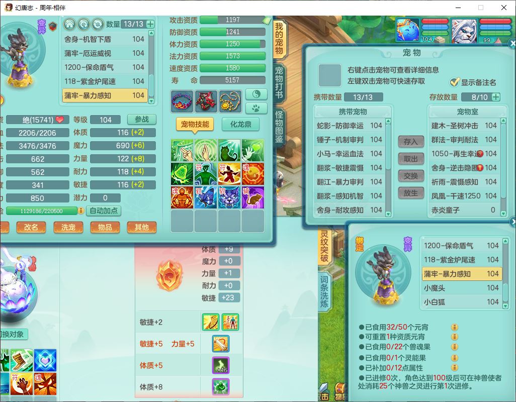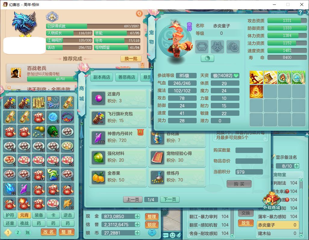 52683周年相伴99男无名【暴龙泰坦+西瓜冰】力敏耐精灵,3内(1龙马1蛇影)4翻江3舍身1建木1金炉,5觉醒10宠皮12只满果子,9红装备,匠心必杀武器,Y崩山衣服,神佑项链,Y罗汉鞋子,鼎2.5,永久外观、精灵皮肤,10个内丹碎片,4坐骑(1双人飞行)
