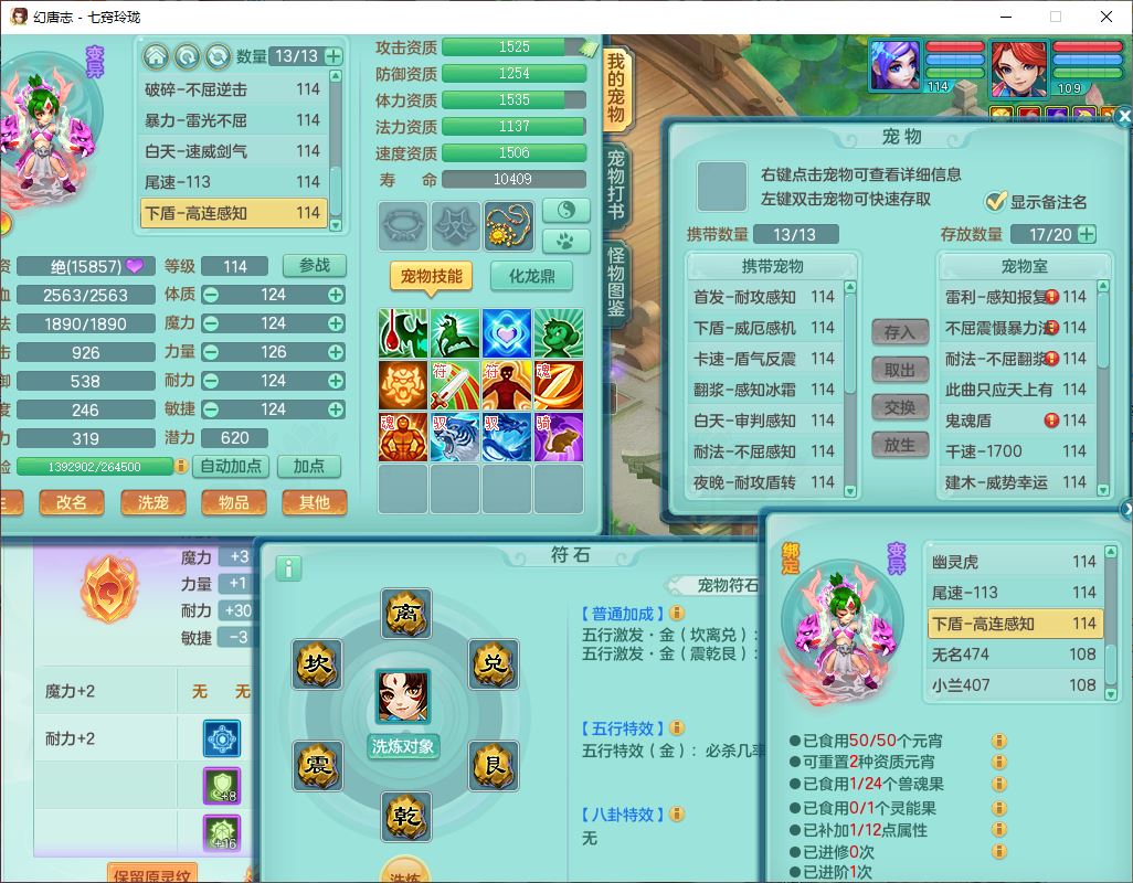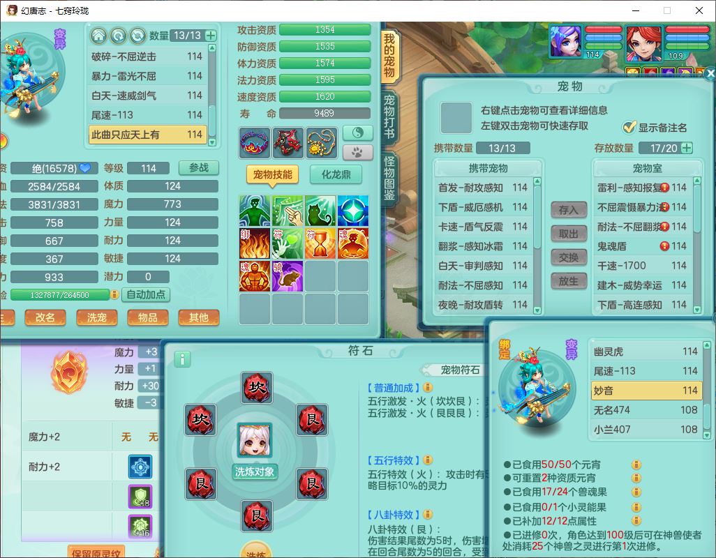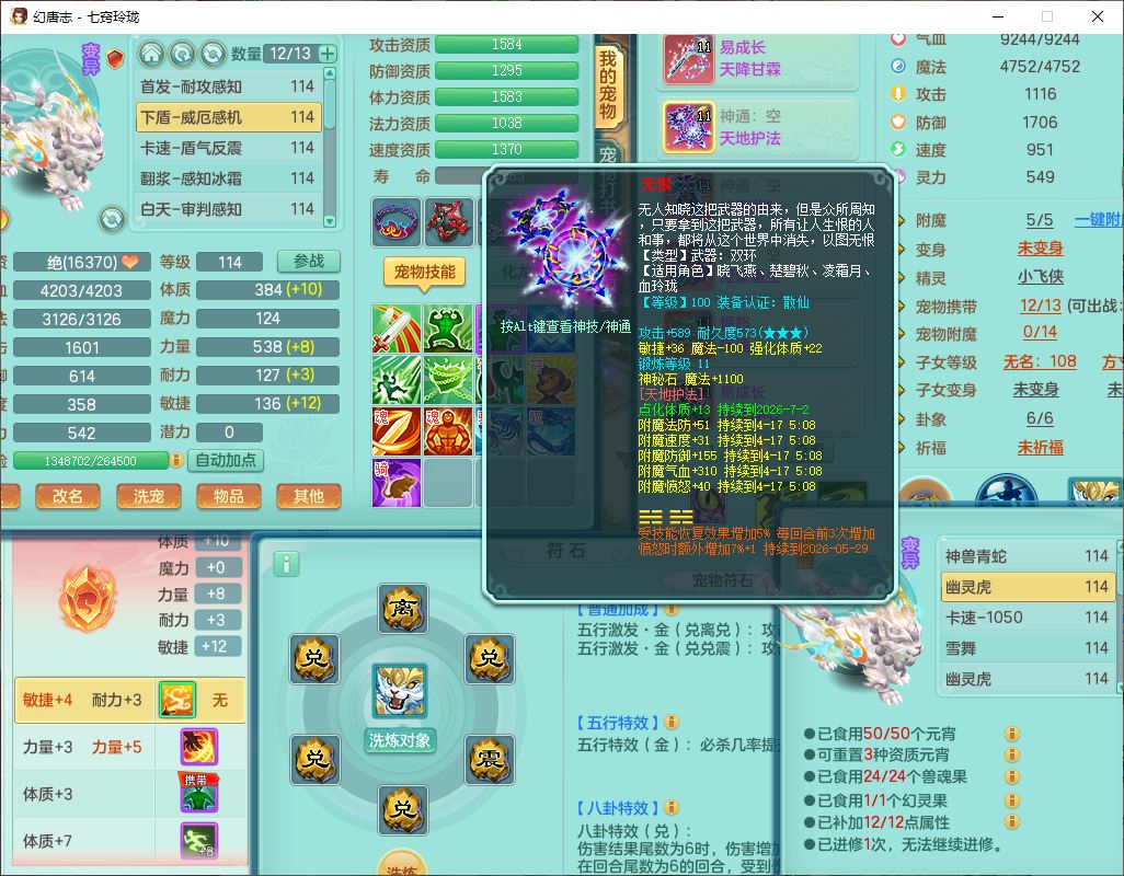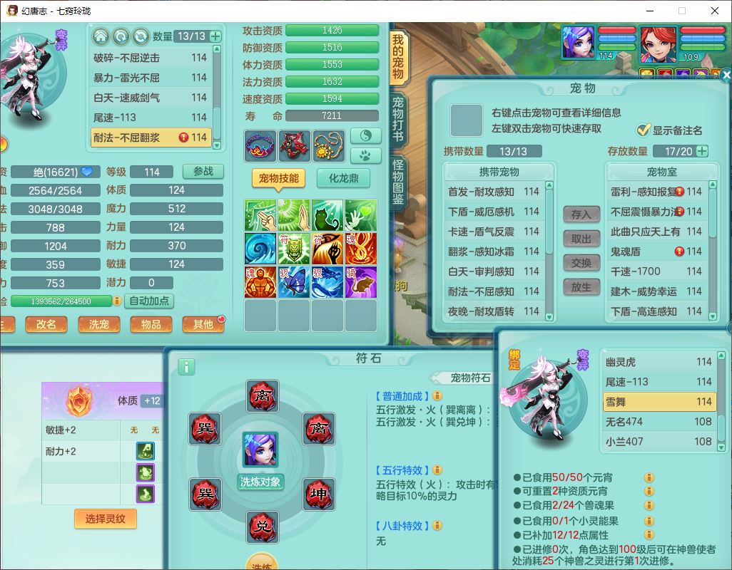 24288七窍玲珑109女天魔精灵舞,1内丹青蛇1羽袭1金炉8幽灵虎,2觉醒3宠皮1五字12四字综合12只满果子,9红装备,Y四海帽子,愤怒疾速腰带,Y晶清鞋子,鼎2.5+42,庭院160房屋150,永久外观、精灵皮肤,18个仙兽灵,31个内丹碎片,2坐骑(1双人)
