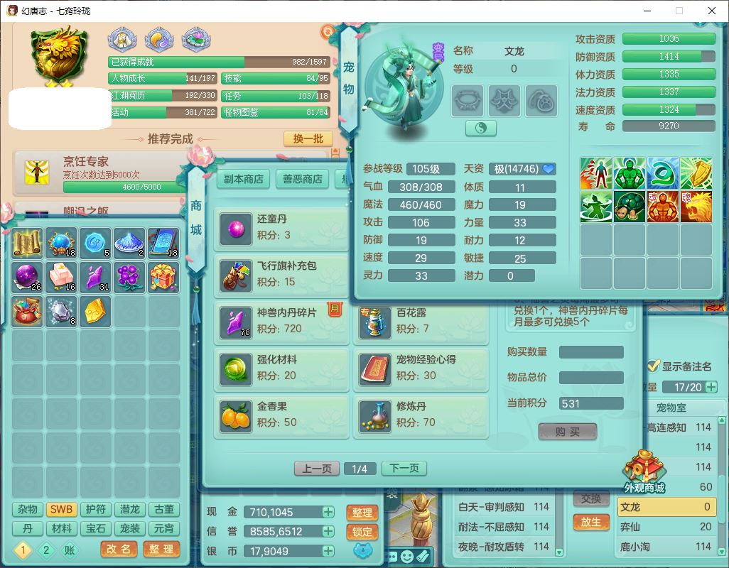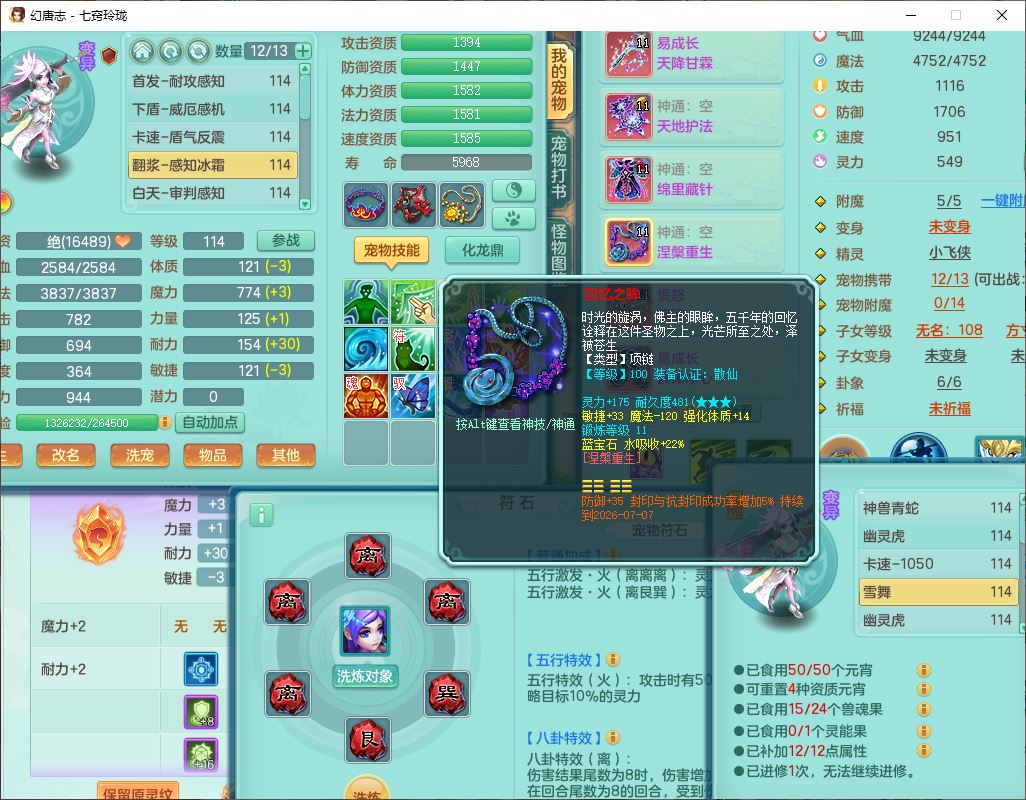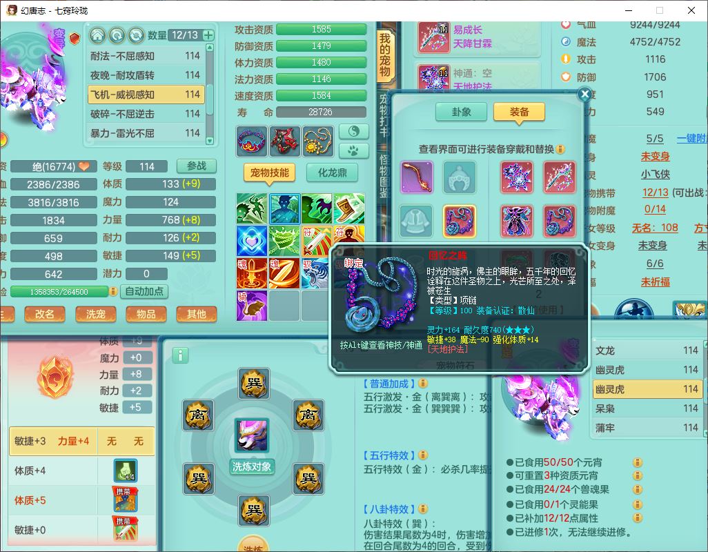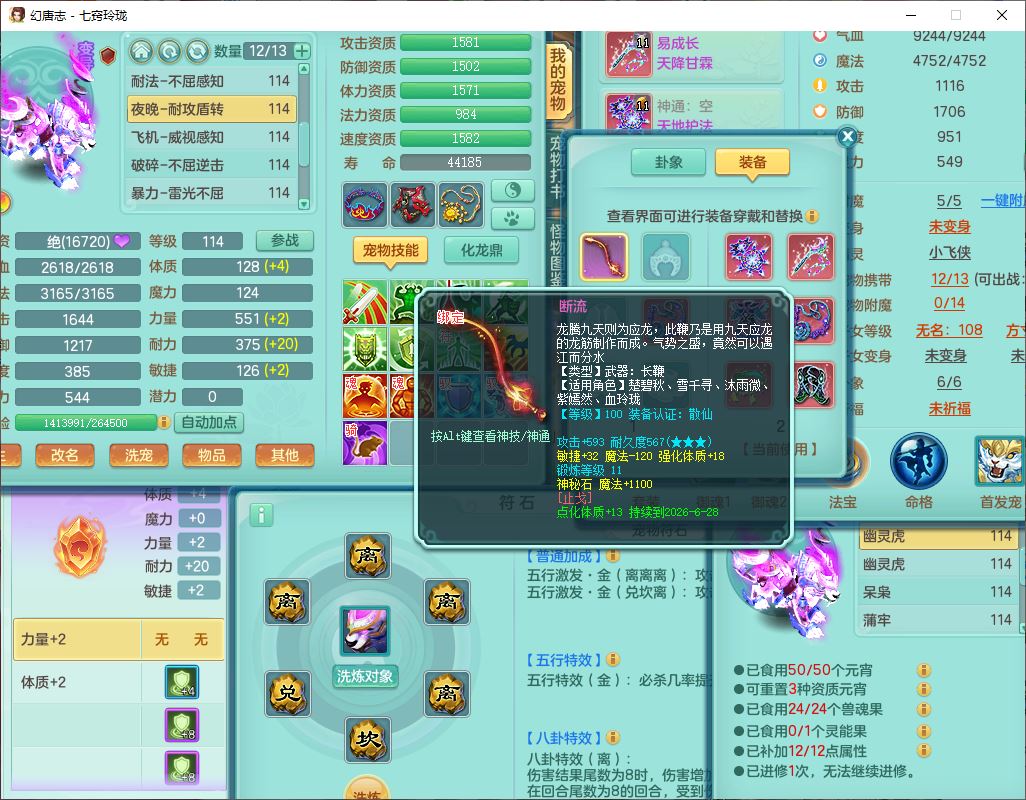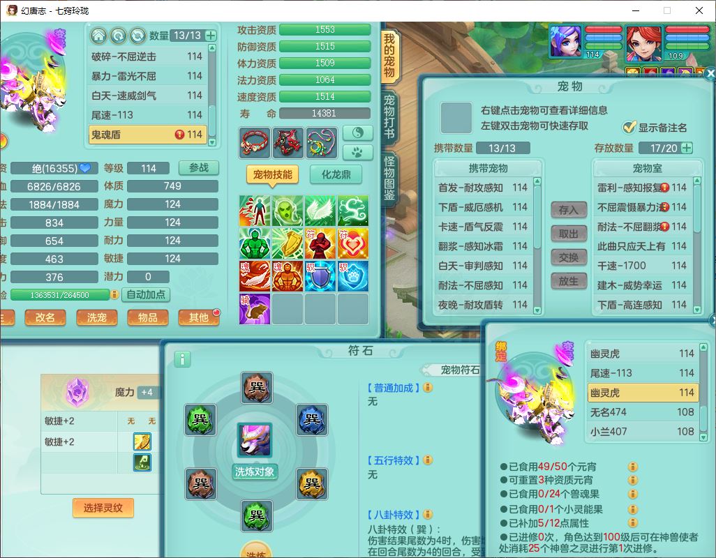 24288七窍玲珑109女天魔精灵舞,1内丹青蛇1羽袭1金炉8幽灵虎,2觉醒3宠皮1五字12四字综合12只满果子,9红装备,Y四海帽子,愤怒疾速腰带,Y晶清鞋子,鼎2.5+42,庭院160房屋150,永久外观、精灵皮肤,18个仙兽灵,31个内丹碎片,2坐骑(1双人)