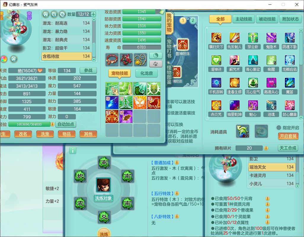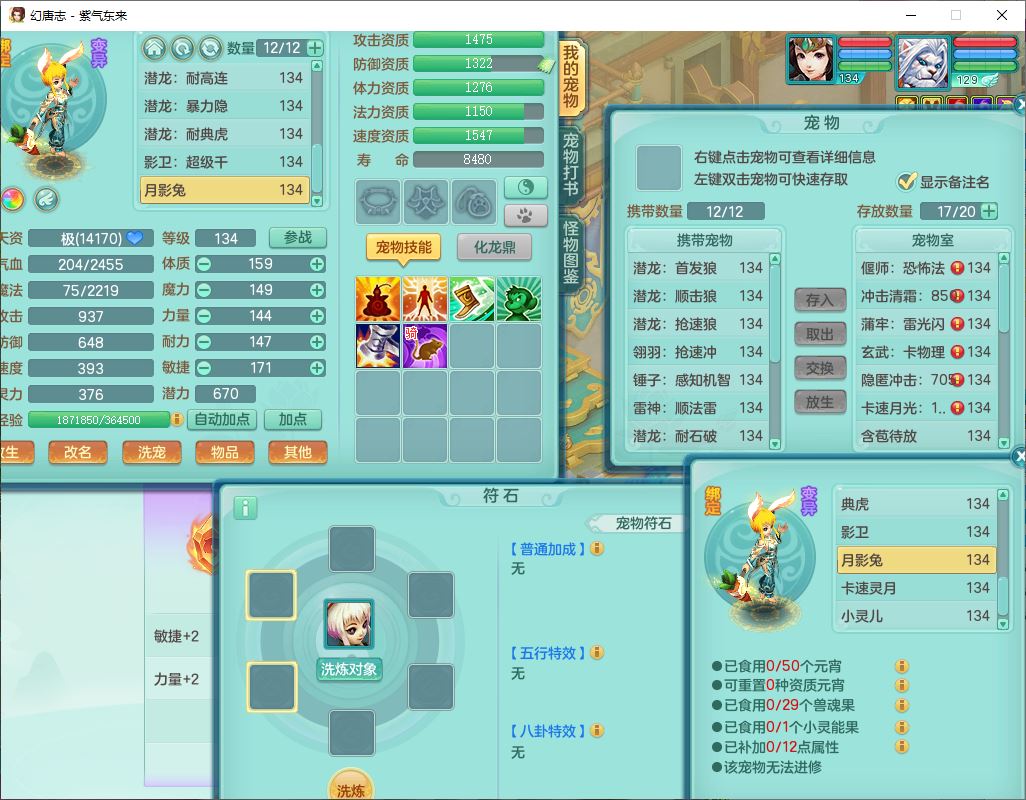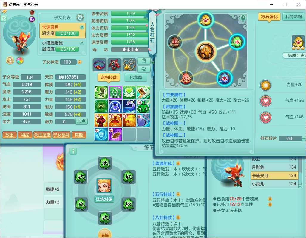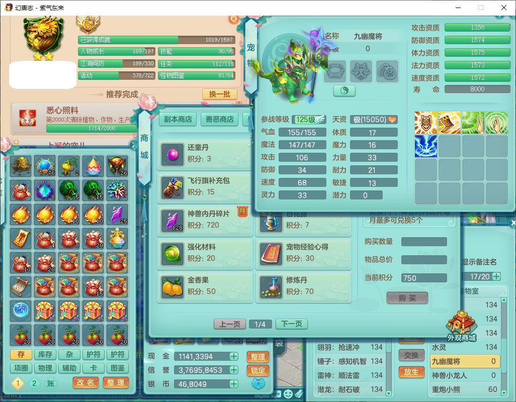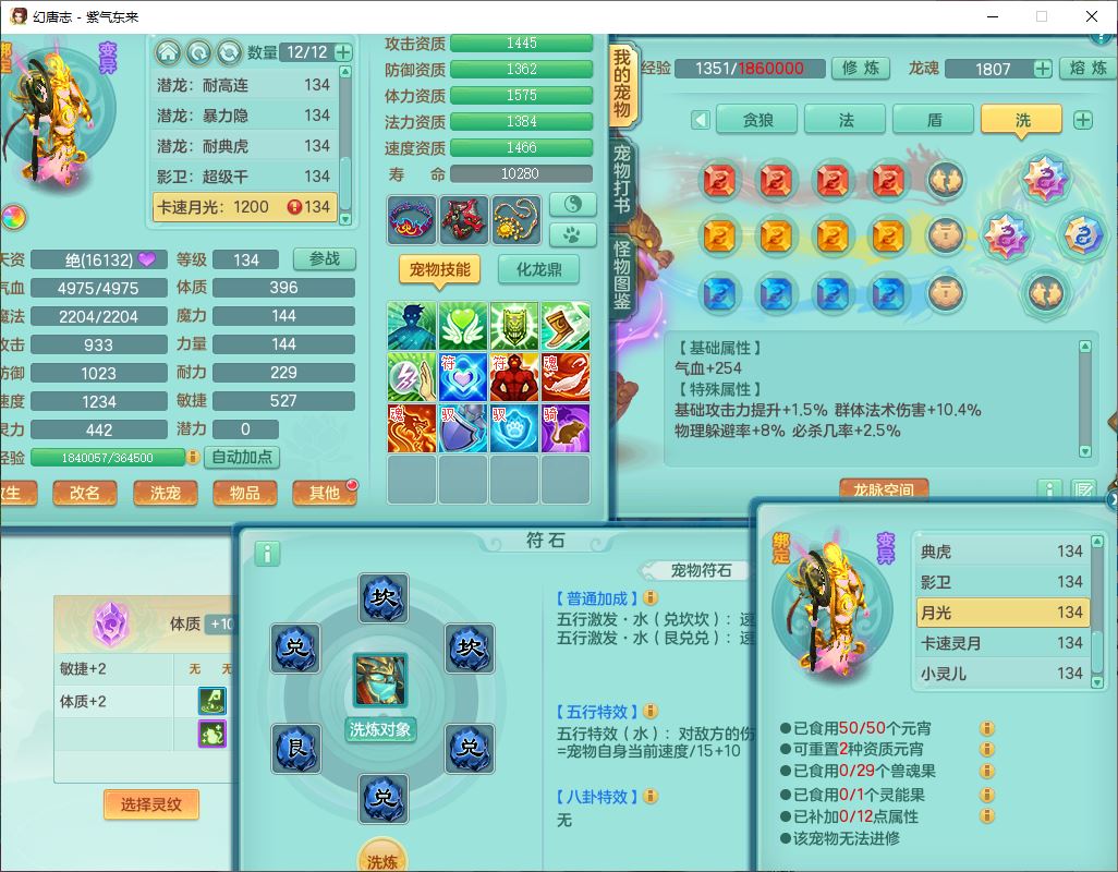 24285紫气东来129男万兽【潜龙号】精灵舞,3贪狼1神石1典虎,7觉醒9六字1五字4四字15只满果子,装备齐全,必杀武器,崩山衣服,神佑项链,一套辅助装备,Y四海鞋子,鼎4.0+56+224,永久外观、精灵皮肤,76个仙兽灵,25个内丹碎片,仓库多存货,2坐骑(1双人飞行),带150奶粉
