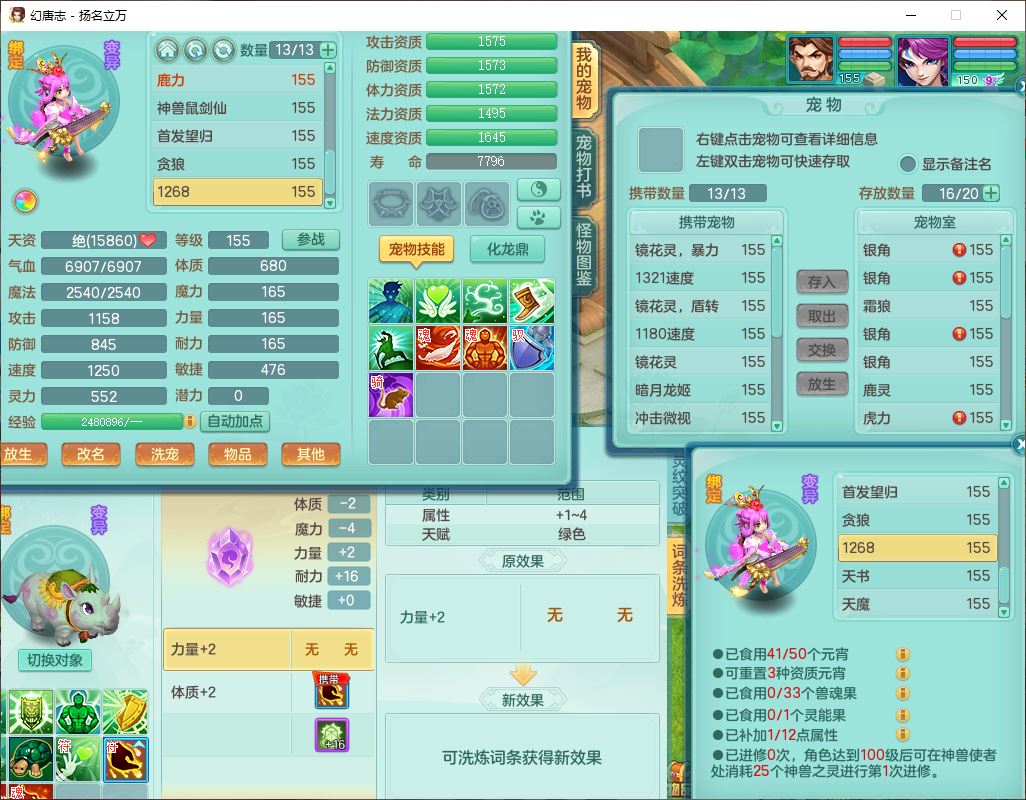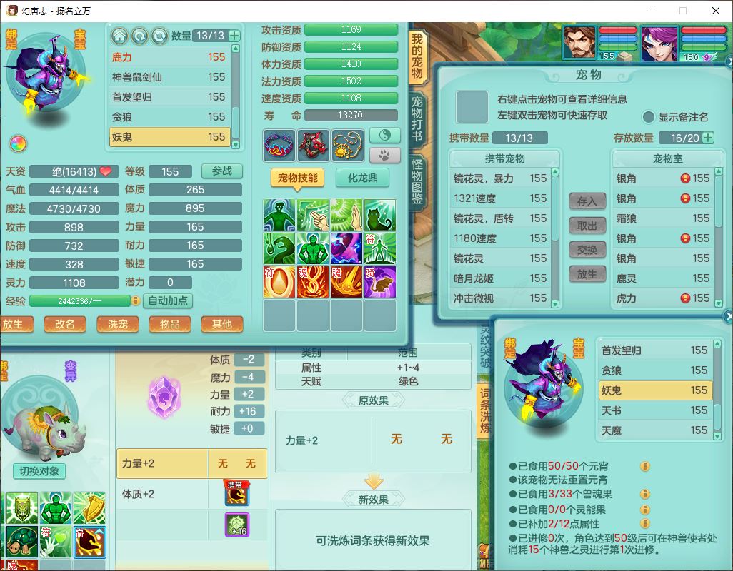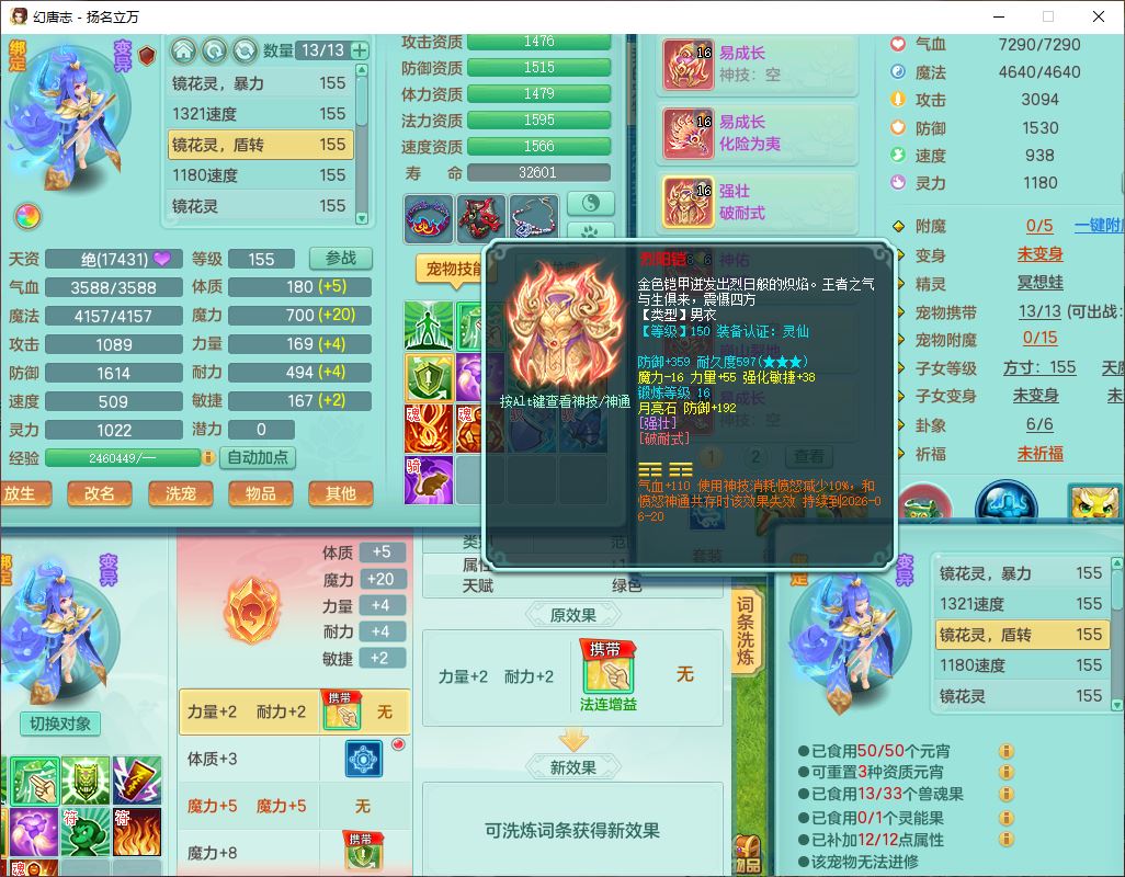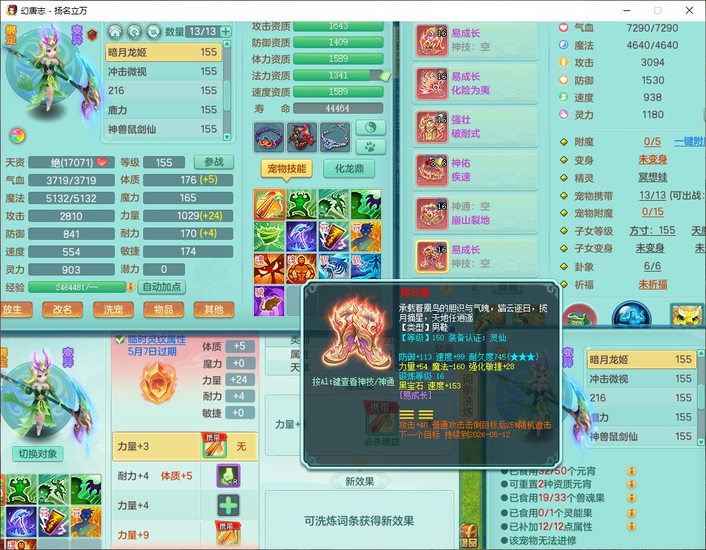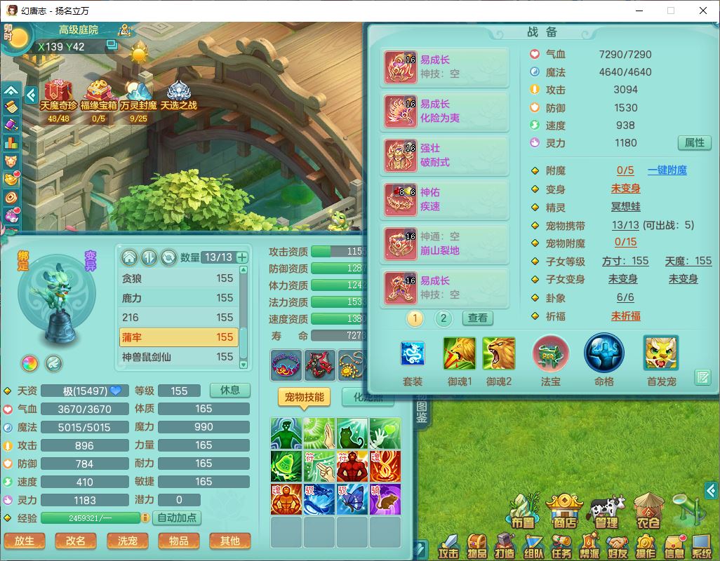 24282扬名立万159男万兽精灵舞,1内1望归3镜花1龙姬7技能雷利妖鬼1特殊兽决(怒破),2觉醒1宠皮,9红装备,Y化险武器,强壮破耐衣服,神佑疾速项链,崩山腰带,鼎4.5,34天月卡,23个仙兽灵