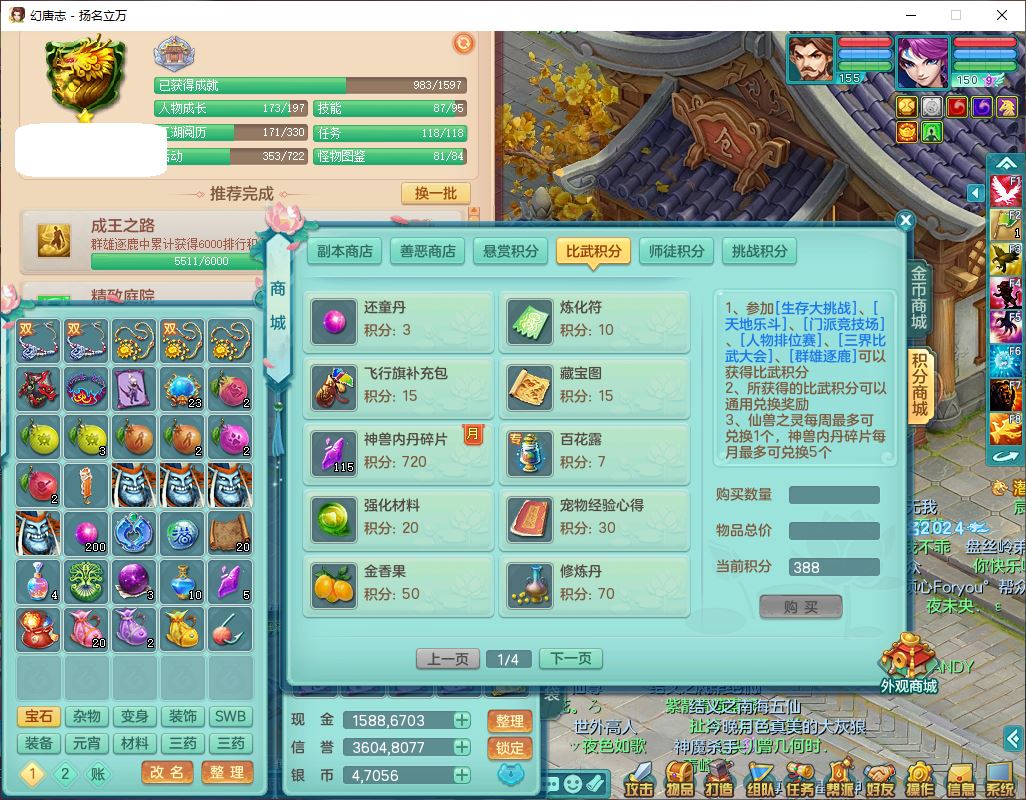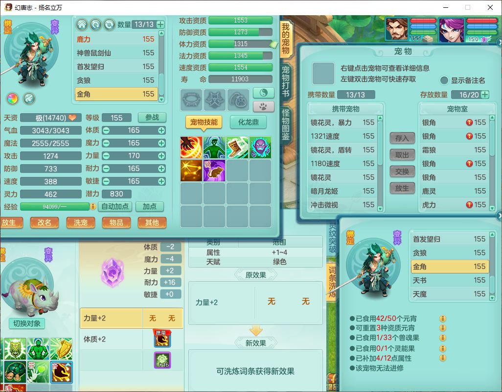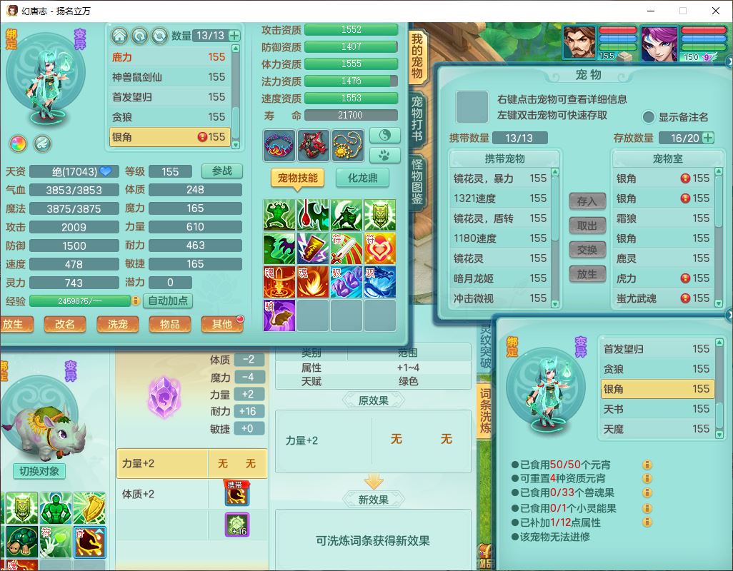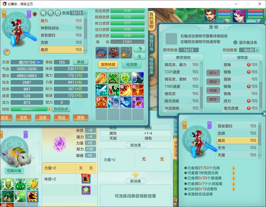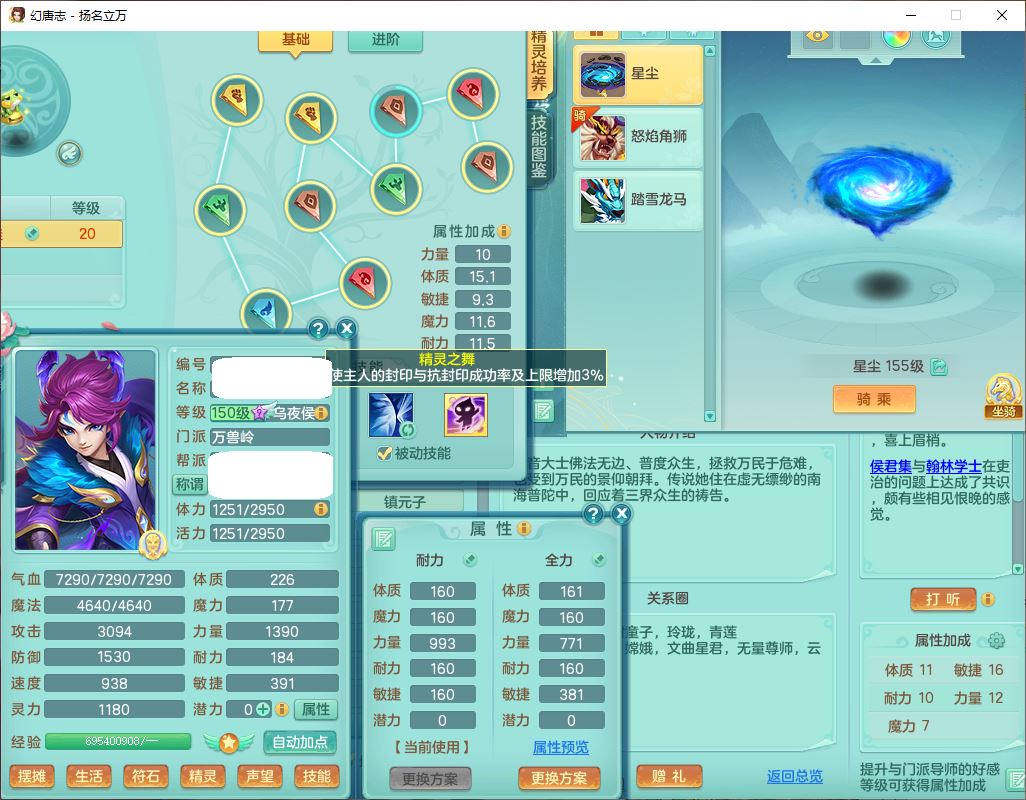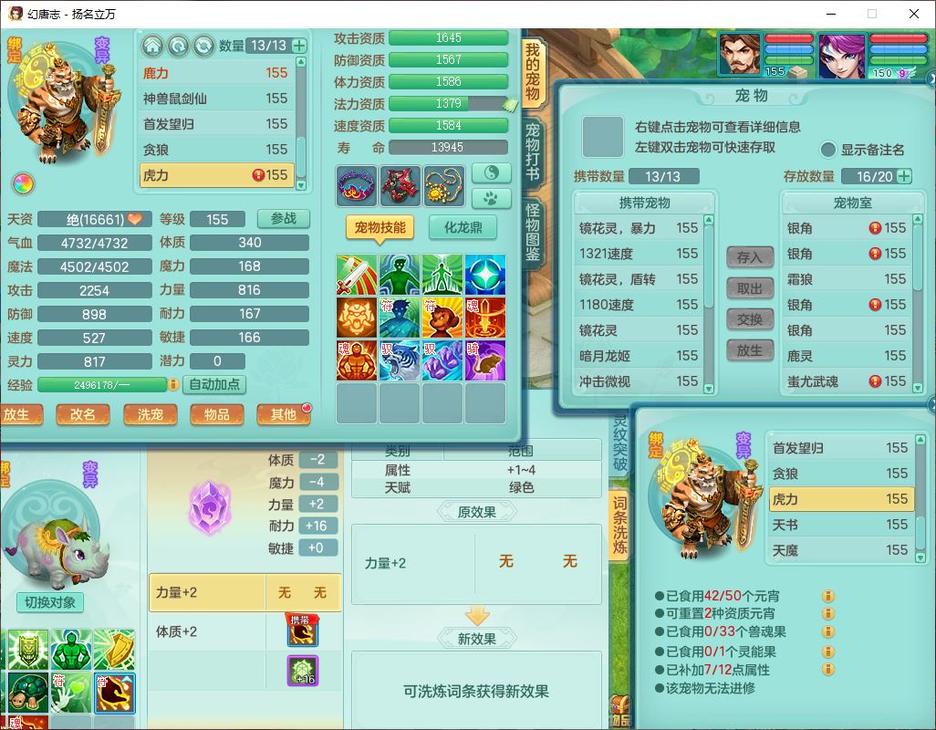 24282扬名立万159男万兽精灵舞,1内1望归3镜花1龙姬7技能雷利妖鬼1特殊兽决(怒破),2觉醒1宠皮,9红装备,Y化险武器,强壮破耐衣服,神佑疾速项链,崩山腰带,鼎4.5,34天月卡,23个仙兽灵