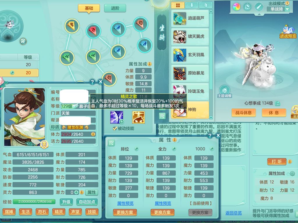 71468YB七窍玲珑129男天策【潜龙号+2龙皮+神驹心想事成+暴龙泰坦+火焰之力、西瓜冰】精灵歌+舞,4字靓号,2套星穹,9龙(换)2龙皮,2内丹龙马1青蛇无内2破境8宠皮,18格子32只满果子13觉醒17个纯6字,10红,单加破甲头,730狂暴武器,格挡崩山衣服,单加愤怒Y腰带,单加迅捷Y破血鞋,辅助11红愤怒6特,鼎4.0+56+224,127天月卡,永久外观精灵皮肤,6884金币,20内丹碎片,宠排在榜,6坐骑(5只双人)