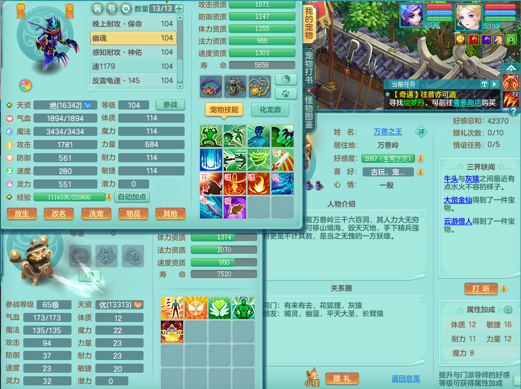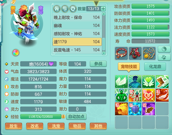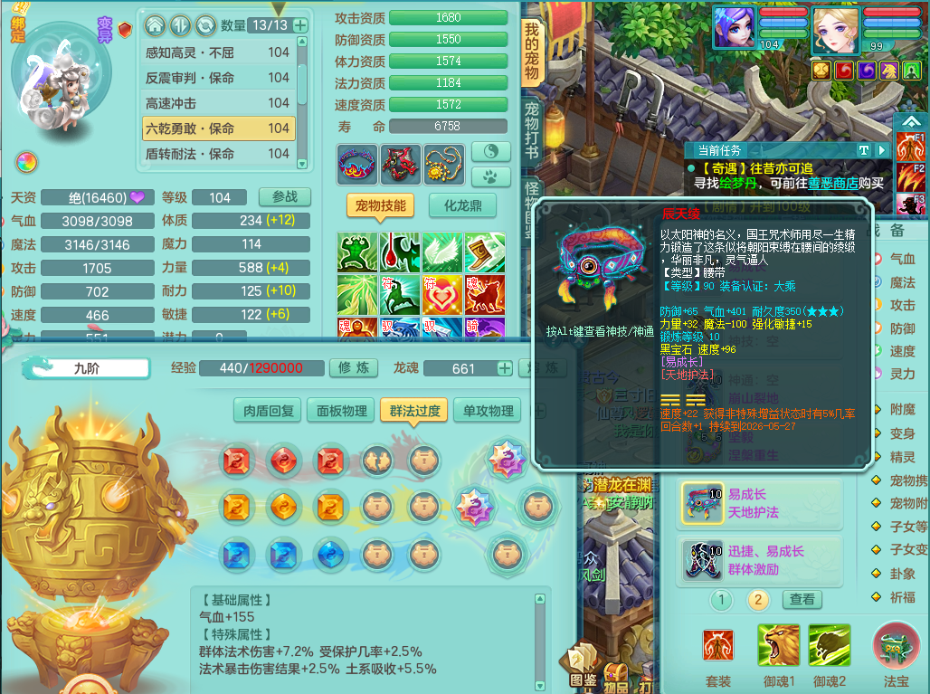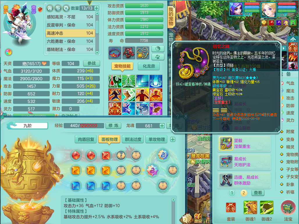 63140,龙腾九州99女万兽,1内丹神龙马(存)8只觉醒,1只8技能炼妖,基础2.5,单加34易疾速头,555攻易成长武器,坚毅慈航项链,单加32易罗汉腰带,迅捷易群体激励三红鞋子,小Q注销,可配合改密