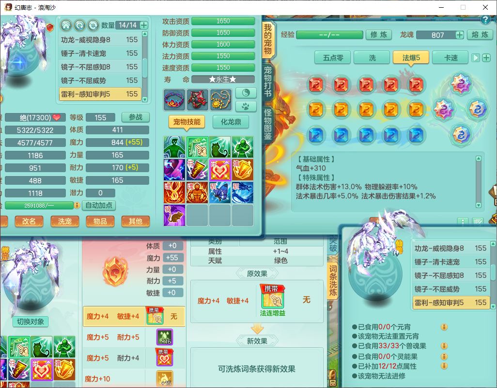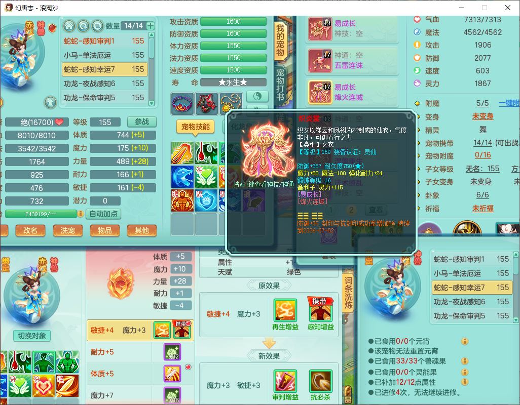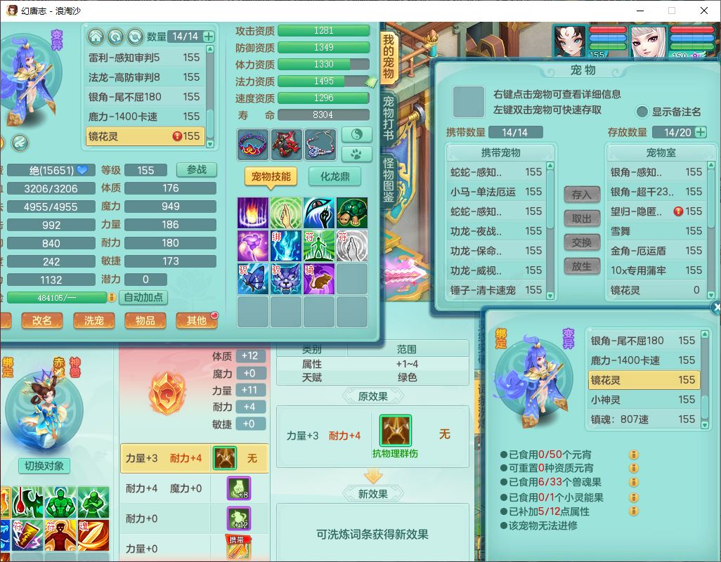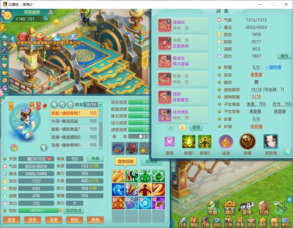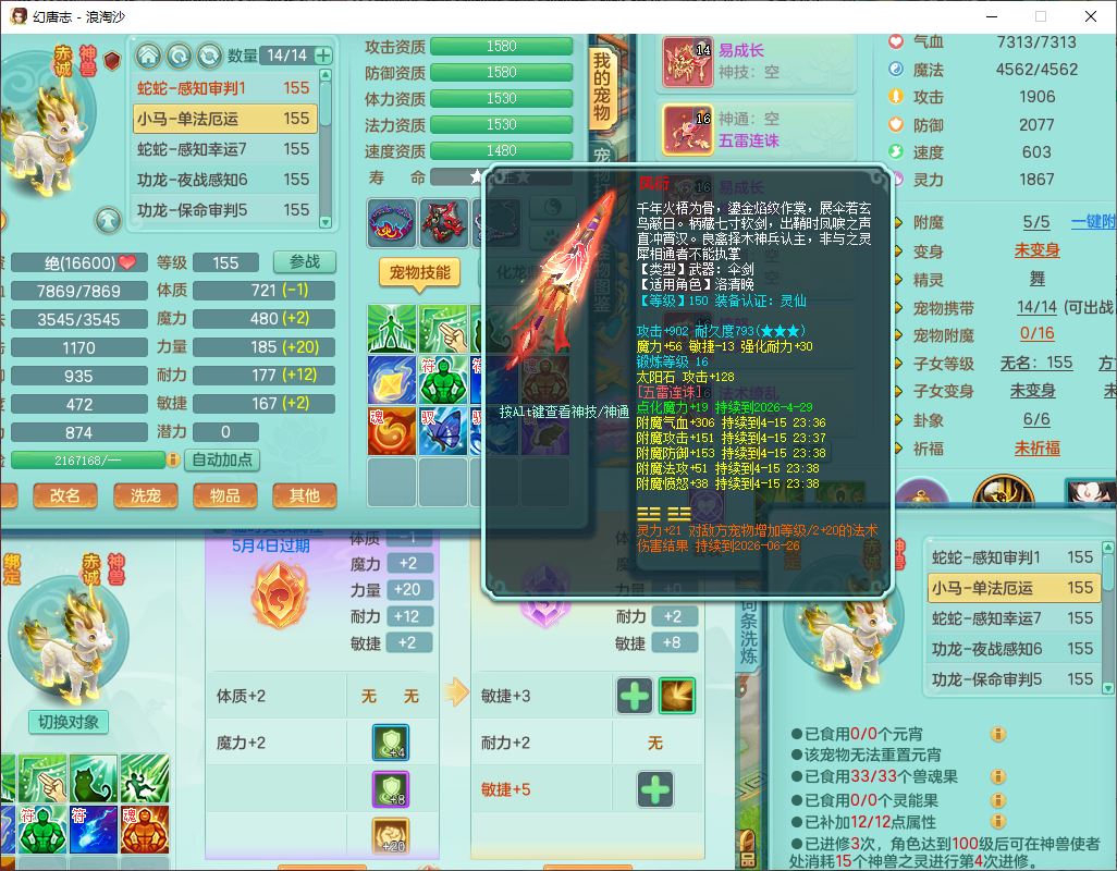 24283浪淘沙159女魔王【火焰之力+潜龙过半】精灵舞,5龙(换)3内(2青蛇1龙马)还能攒一个,1破镜4宠皮,14只满果子8觉醒3个纯6字,8红装备,五雷武器,Y烽火衣服,愤怒慈航腰带,法缭鞋子,崩山项链, 鼎5.0+70+280,53天月卡,庭院161,永久外观精灵皮肤,宠排在榜,2只双人坐骑, 带5个150仓库号,30多个仓库秘方药