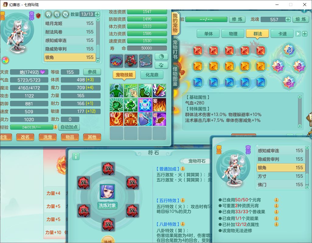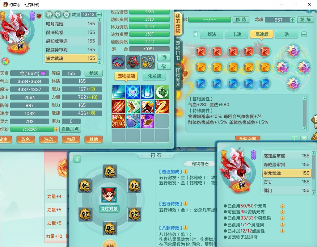 24280七窍玲珑159男万兽【潜龙+马上发财+火焰之力】精灵歌,1内丹青蛇1望归4镜花4特殊(祈雨、舍身,兽决禁锢、夺命)2龙姬1金炉,9觉醒3宠皮13六字1五字3四字18只满果子,8红装备,Y狂暴四海武器,崩山衣服,坚毅项链,一套辅助装备,Y晶清腰带,Y四海项链,鼎5.5+70+280,2套符石,131天月卡,庭院165房屋148,永久外观、精灵皮肤,28个仙兽灵,23个内丹碎片,1双人坐骑