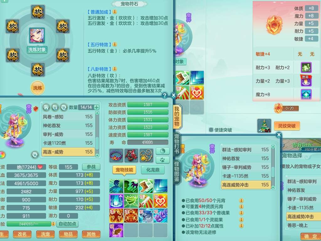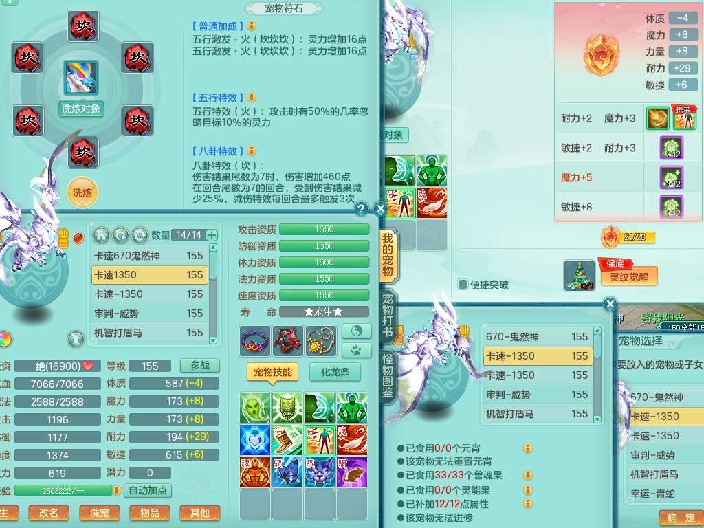 s22118今年勇159男无量,精灵歌,4龙(1龙无内),1内胆神,7只觉醒,5宠皮,4位靓号,5特殊(翻江,堕天,夺命,善恶,风卷),4只6技能镜花灵,2只6技能龙姬,回春愤怒5特,仓库有934狂暴单加武器,崩山裂地单加52衣服,神佑单加链子,破甲单加55鞋子,5.5基础鼎+70攻,7个纯六字,2个5字,综合15只满果子,仓库41神兽内丹碎片,4只坐骑,月卡还有41天。带4个150奶粉。