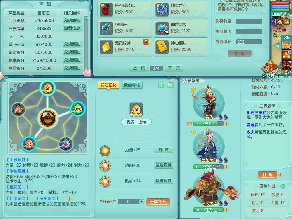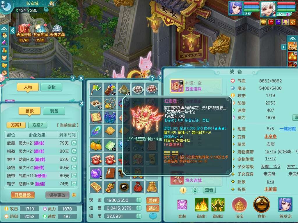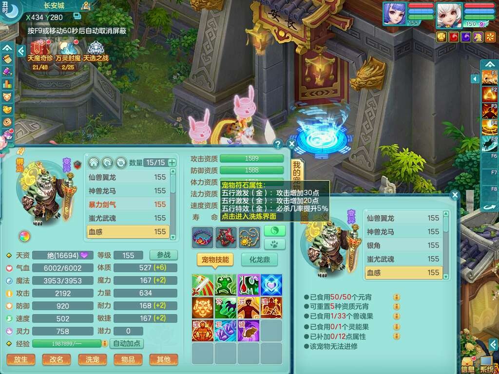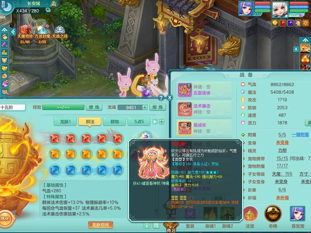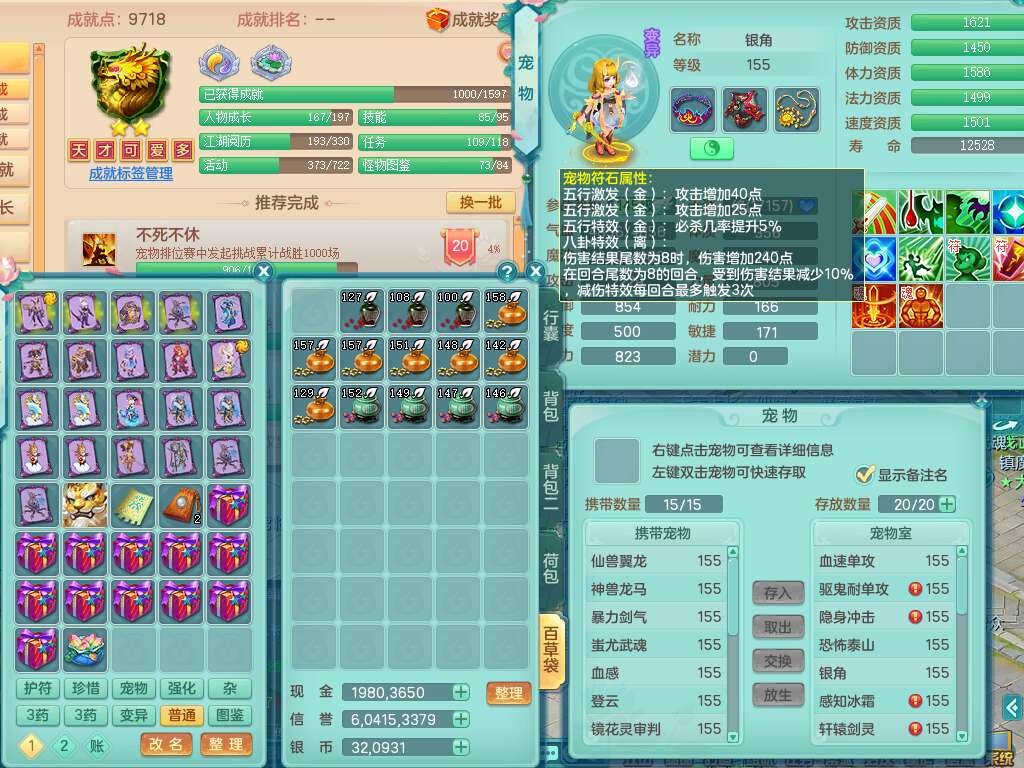 A22114七窍玲珑159女魔王,精灵歌,1龙1内胆神,4只觉醒,3只六技能镜花灵,2特殊(噬风,风卷),五雷单加55头,法爆单加56武器,易成长单加50衣服,易成长单加54腰带,烽火单加57鞋子,5.5基础鼎+70攻+280血,2个纯六字,1个五字,综合9只满果子,双人坐骑,带27天月卡。