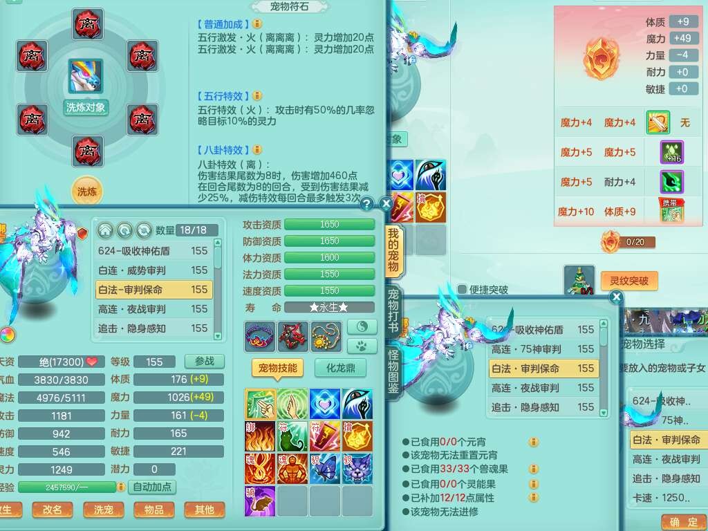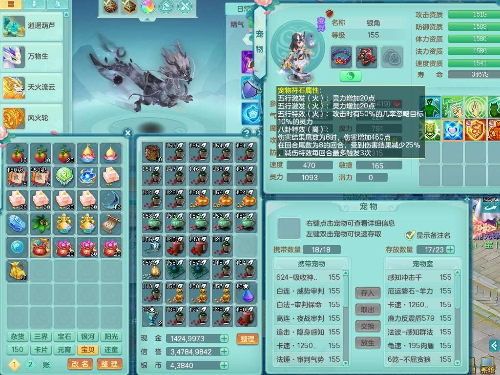 A22110阳春白雪159男龙宫,精灵歌,6龙1龙皮,3内丹神(1蛇1马),6破镜,【20只觉醒,已潜龙】,4位靓号,5宠皮,3只六技能镜花灵,1只六技能龙姬,3特殊(舍身,上善,勇猛),击退四海单加武器,易成长疾速单加50衣服,263易成长单加55项链,五雷单加50腰带,法缭单加鞋子,可玩辅助愤怒六特,5.5基础鼎+70攻+280血,8.7法爆,15个永久格子,20个纯六字,28只满果子,仓库还有49个果子,宠排在榜,经验修炼在榜,永久称谓,4个孩子,5个坐骑,神驹马到成功+火焰之力武器皮肤。