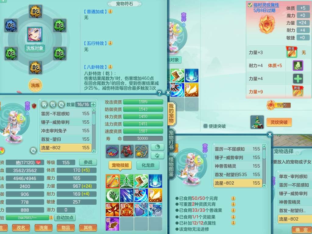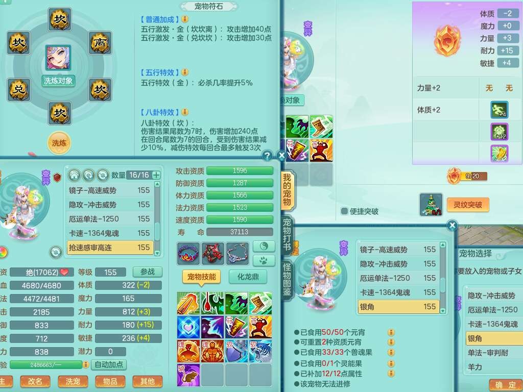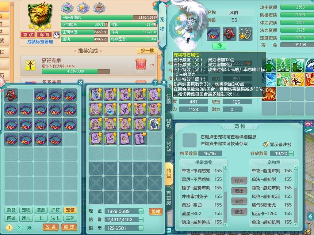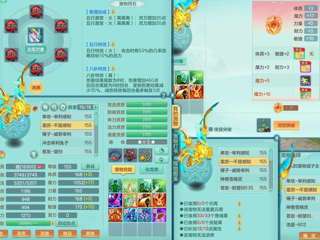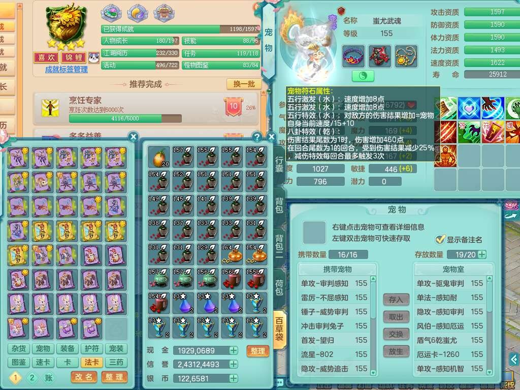 S22107生日快乐159男普陀,精灵舞,2龙2内胆神,7只觉醒(4只潜龙BB,符石差3个主要,2个附加,化龙鼎差5.5),4位靓号不含4,6宠皮,1只六技能龙姬,4只六技能镜花灵,3特殊(夺命,流星,墨守),愤怒六特,物理923易成长武器,破甲单加55鞋子,坚毅项链,5.0基础鼎+70攻+280血,14个永久格子,7个纯六字,3个五字,23只满果子,宠排在榜,经验修炼成就在榜,5个坐骑,2只双人,暴龙泰坦,带66天月卡。