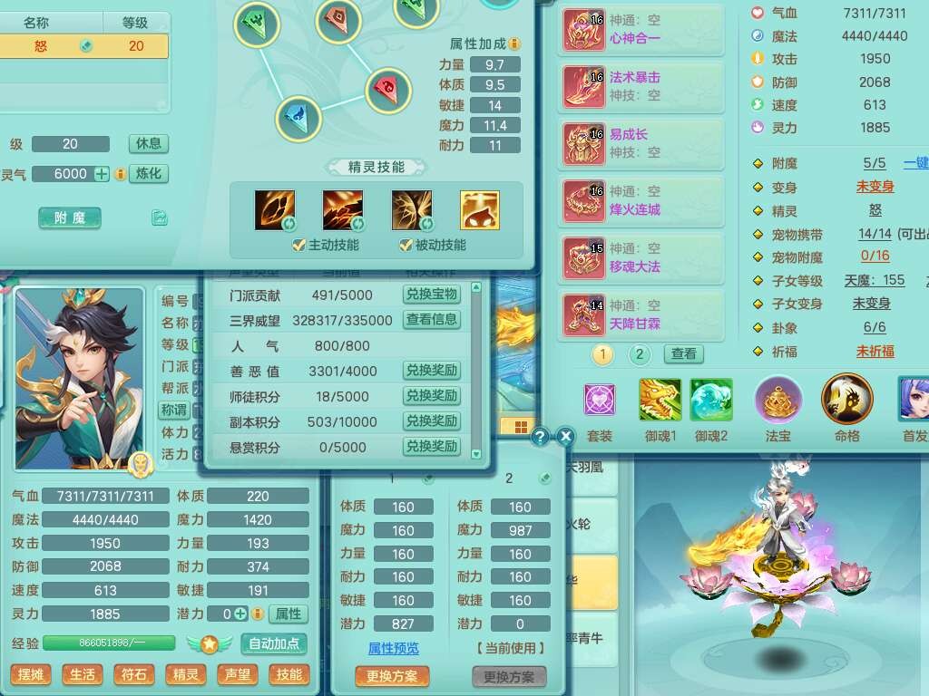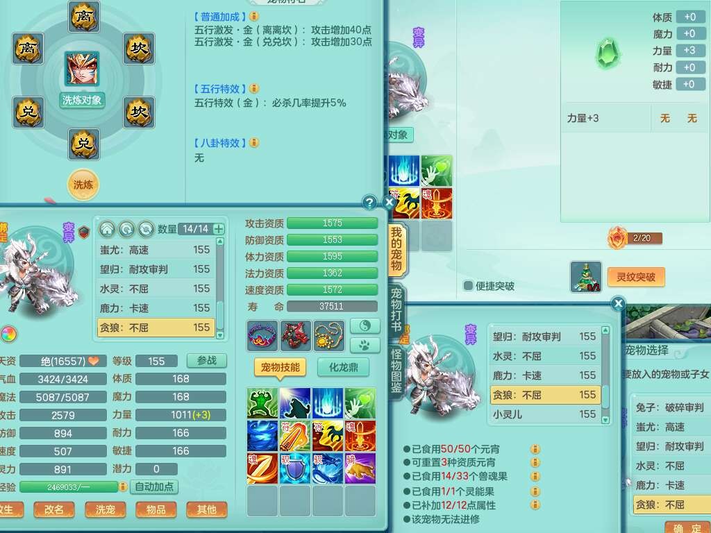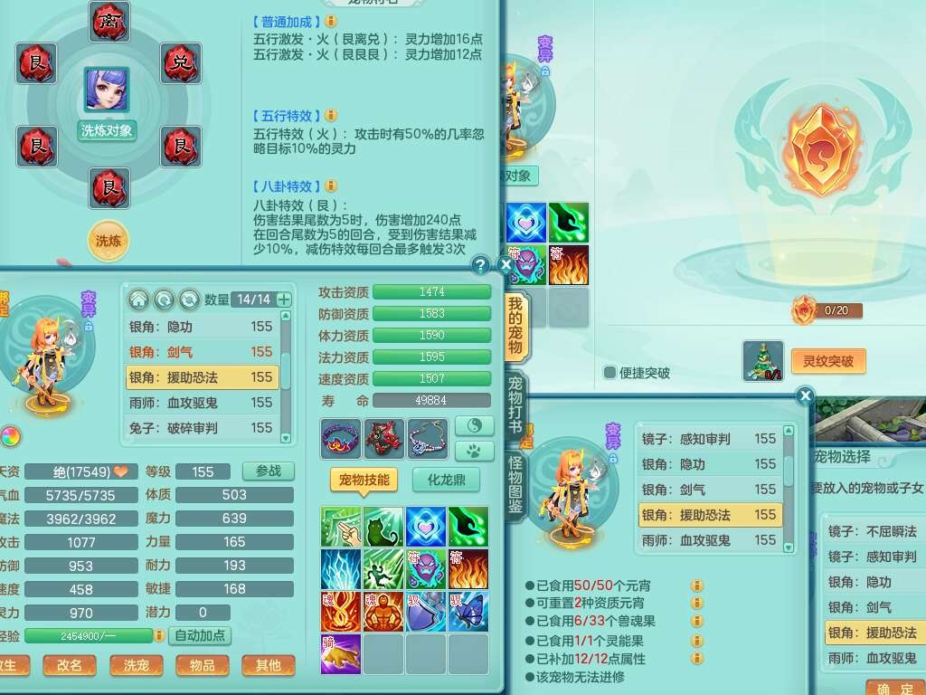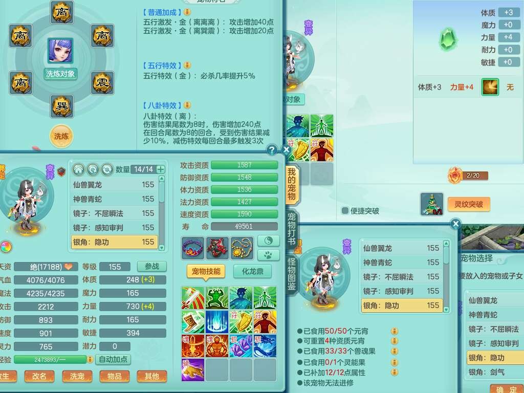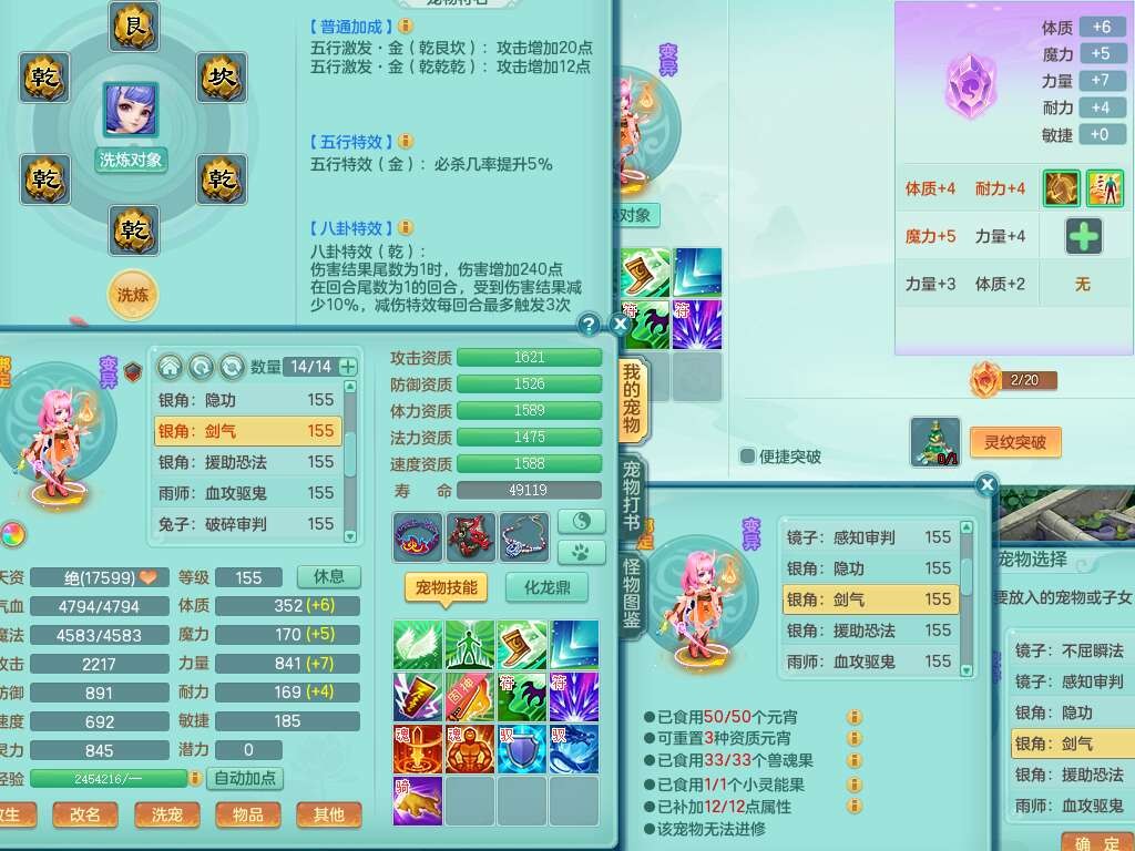 p22097今年勇159男龙宫,精灵歌,1龙,1觉醒,1宠皮,2只六技能镜花灵,法爆单加55武器,易成长单加衣服,272烽火单加56链子,有易成长单加57鞋子,2个五字,4只满果子,双人坐骑,68个仙兽蛋,34个神兽内丹碎片,冰晶庭院。➕159男万兽奶粉,1神兽,1觉醒,易成长笑里单加57头,930必杀武器,神佑链子,易成长单加57鞋,4.5基础鼎,双人坐骑。