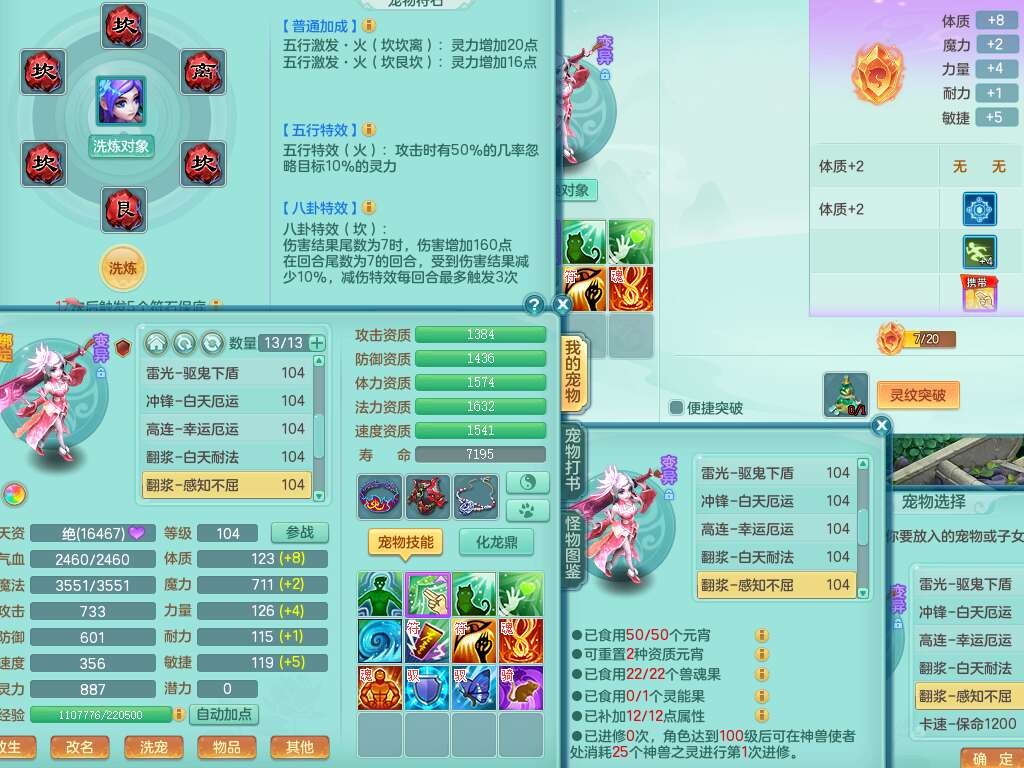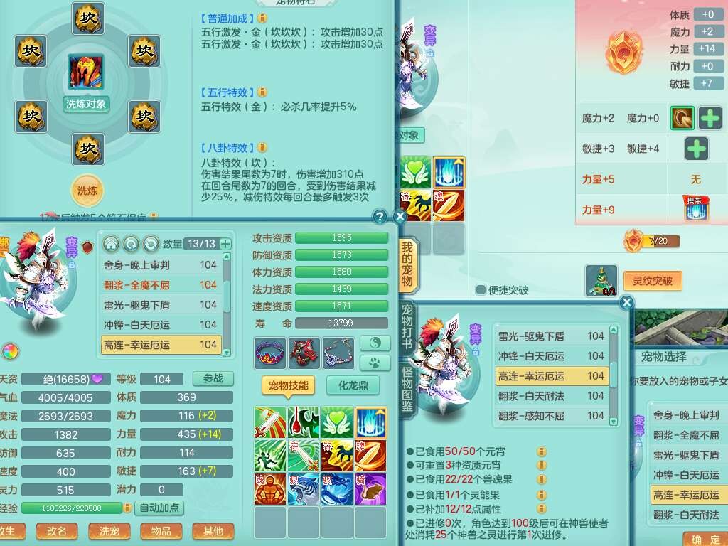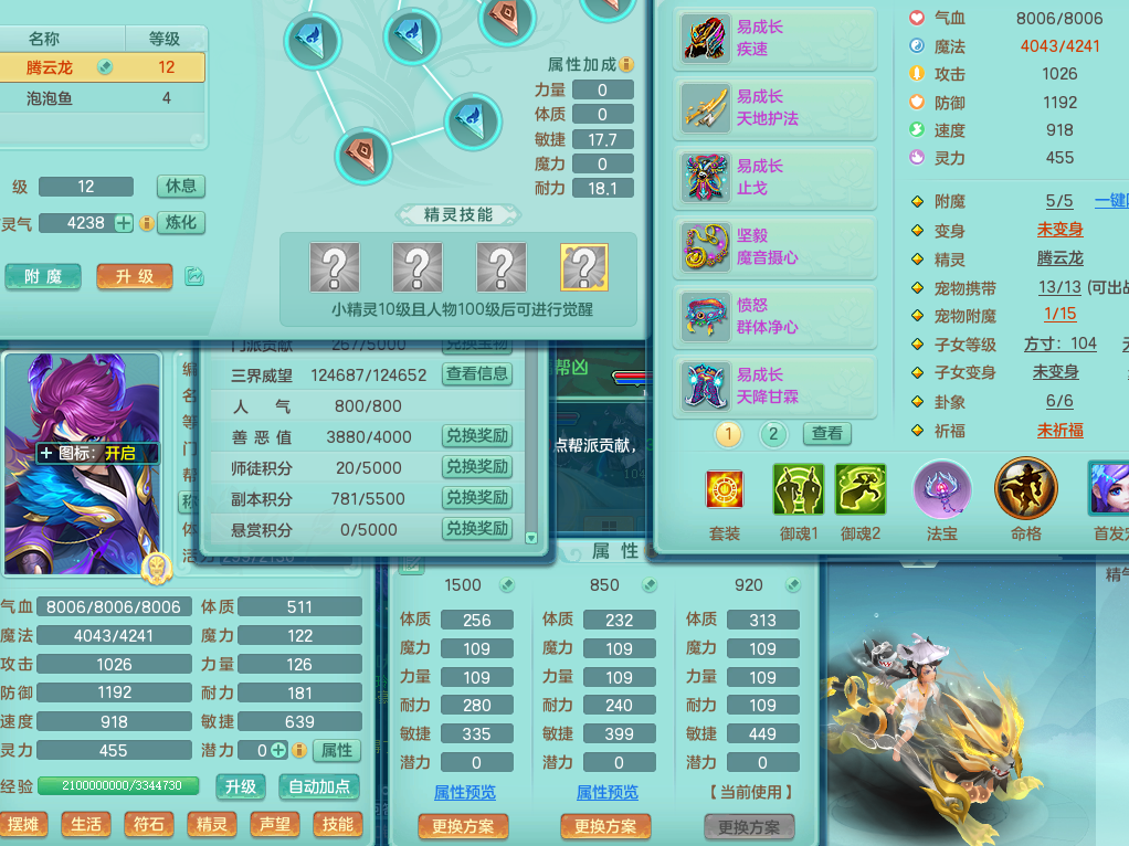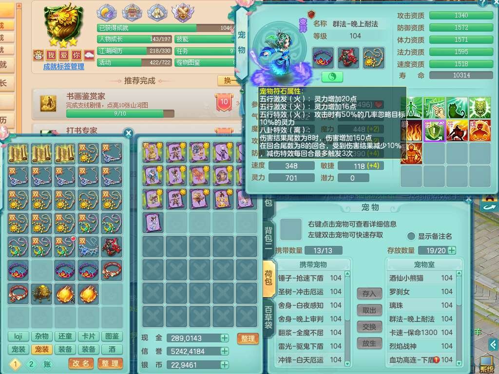 p22095今年勇99男盘丝,1内胆神,6只觉醒(准潜龙,宝宝只差1觉醒,符石差2个附加),易成长疾速单加34头,易成长天地护法单加34武器,易成长止戈单加32衣服,坚毅魔音摄心项链,愤怒晶清腰带,易成长四海单加31鞋子,六特,有555易成长群体止戈单加31武器,556易成长单加32武器,崩山单加32衣服,法爆慈航单加33武器,五雷单加32头,2.5基础鼎+42攻+168血,7个纯六字,15只满果子,宠排在榜,双人坐骑,27个仙兽蛋,55天月卡。➕99女万兽奶粉,神佑单加34链子,破甲单加31鞋。