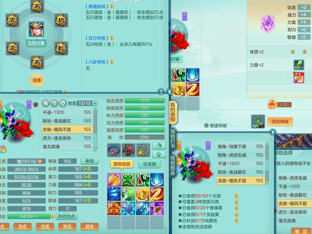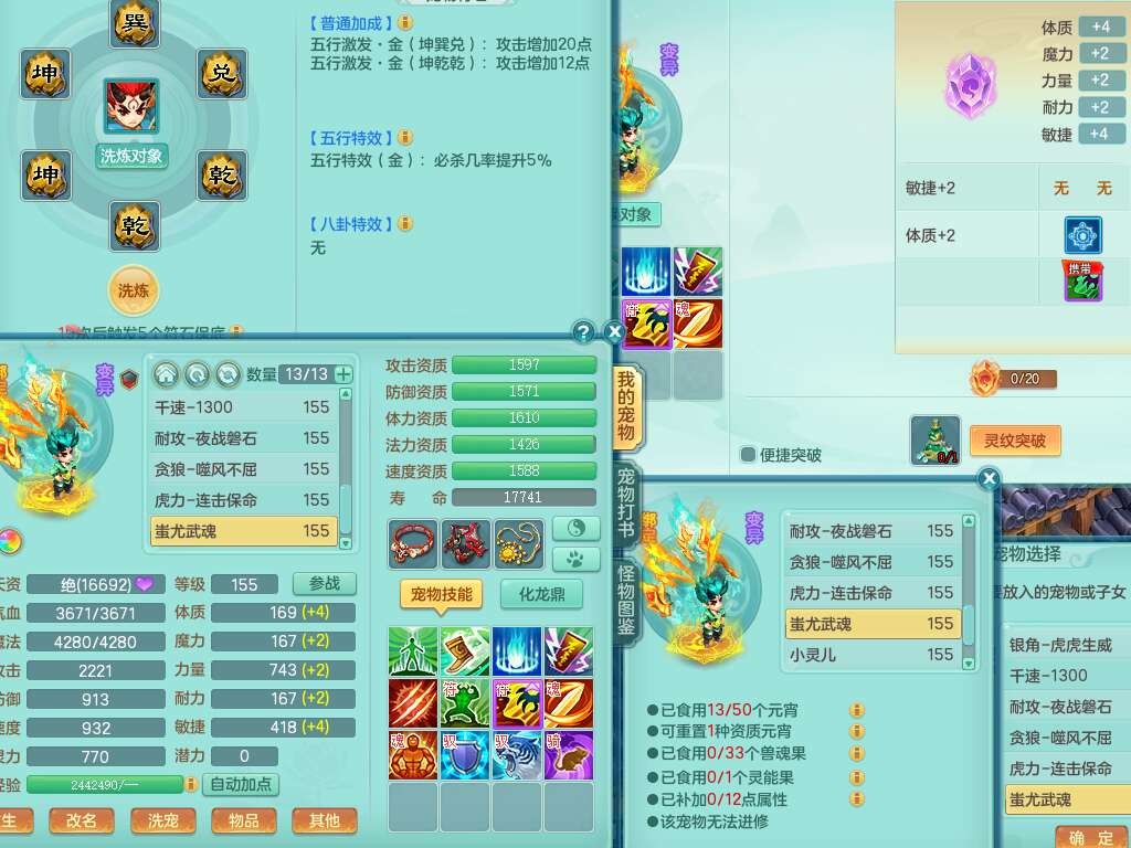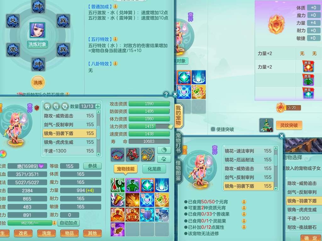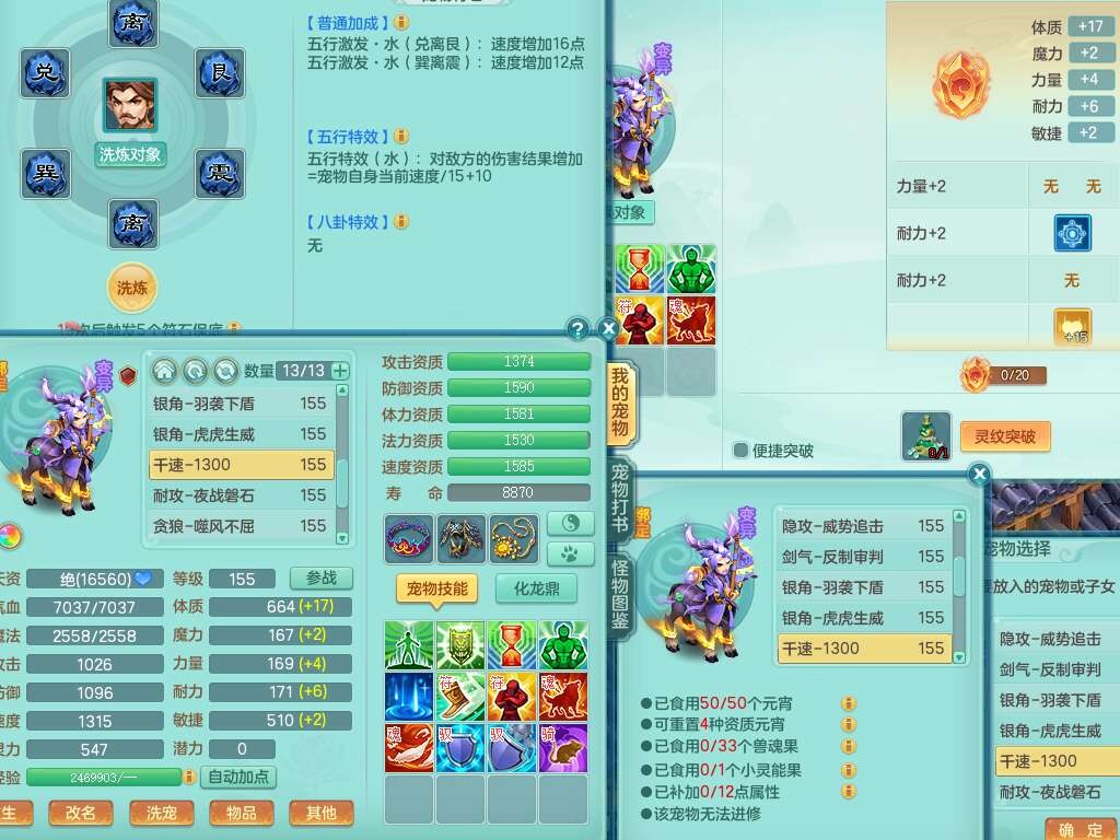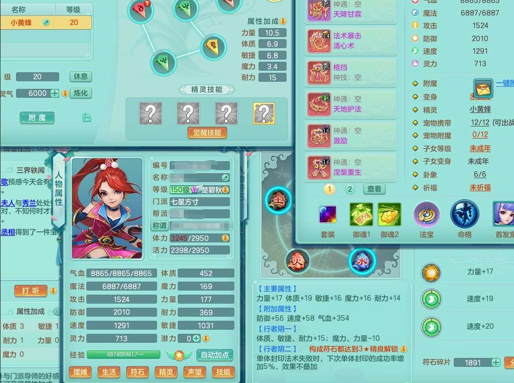 S22094七窍玲珑159男万兽,1内胆神,2觉醒,2特殊(羽袭,虎虎),3只六技能镜花灵,1只六技能龙姬,易成长魔音摄心单加56头,903易成长崩山单加武器,易成长慈航单加57衣服,坚毅破血链子,易成长四灵诀单加腰带,易成长单加55鞋子,4.5基础鼎,1个五字,3只满果子。➕159女方寸奶粉,1神兽,1觉醒,1只六技能镜花灵。➕159女地府奶粉,1神兽,2觉醒,1只六技能镜花灵,1只六技能龙姬。