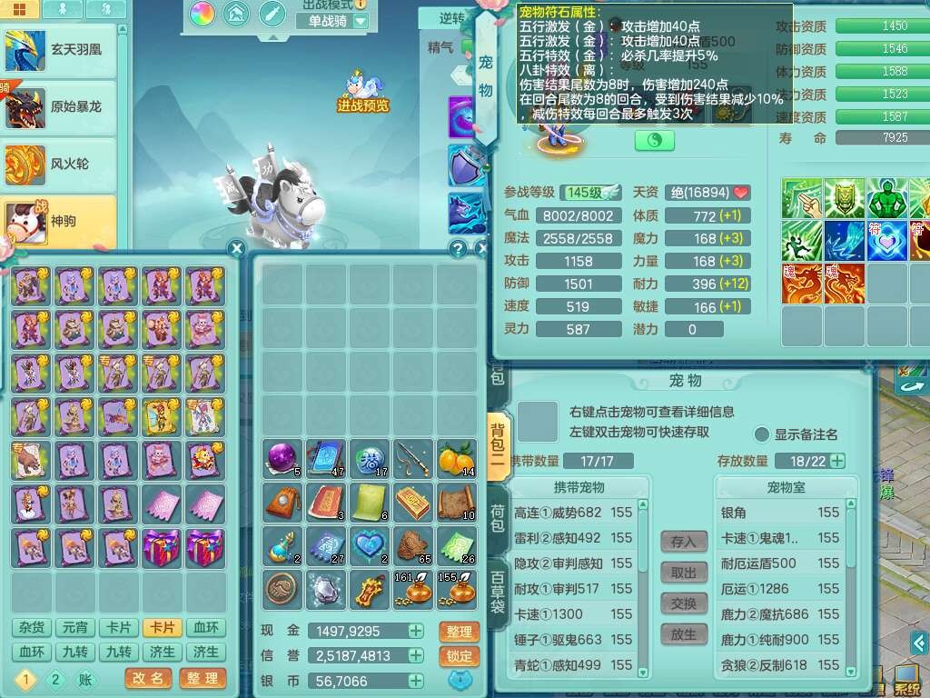 a22084浪淘沙159男天策,精灵歌,5龙3内胆神,仓库还有1神兽+61神兽内胆碎片,【13只觉醒,已潜龙】,8位靓号,6宠皮,3只六技能镜花灵,1只六技能龙姬,2特殊(双星,青霜),神佑单加50项链,易成长晶清单加53鞋子,3系宝石全满,封印慈航单加55头,愤怒六特,6.0基础鼎+70攻+280血,15个永久格子,9个纯六字,4个五字,24只满果子,仓库还有109个果子,宠排在榜,经验修炼成就在榜,暴龙泰坦+洪荒+神驹马到成功+火焰之力+西瓜冰武器,109天月卡,1.2万金币。