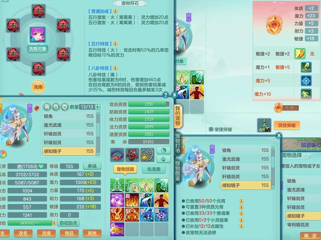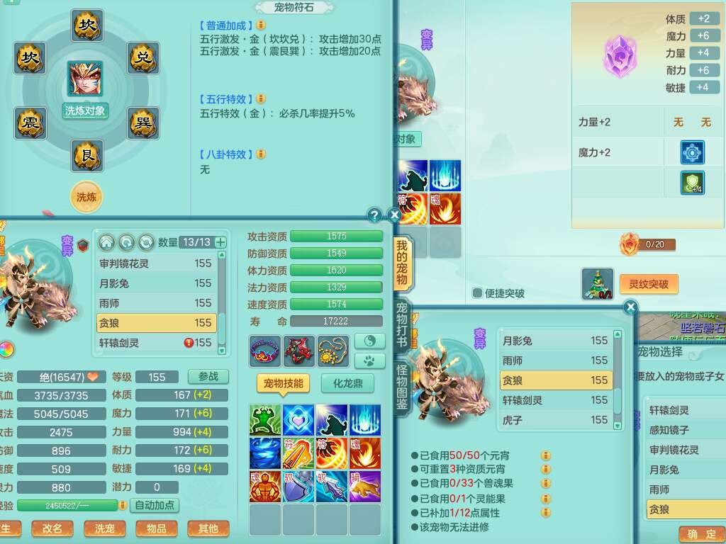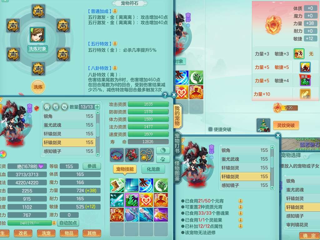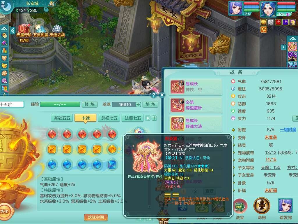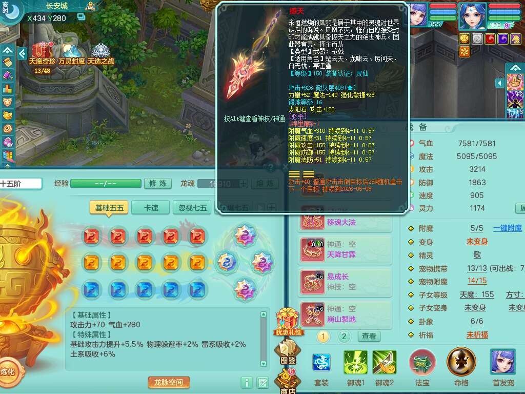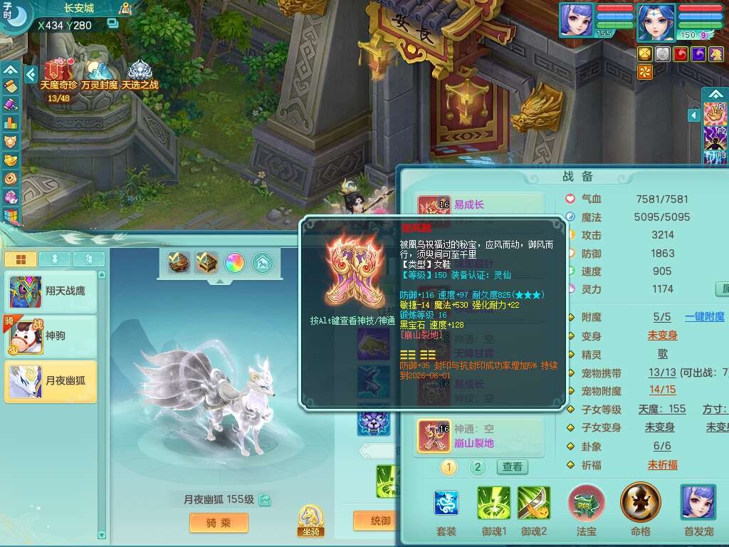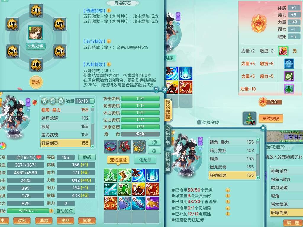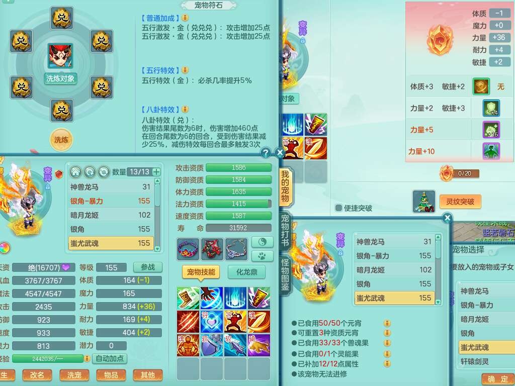 A22079花好月圆159女力天宫,精灵歌,1内胆神,【7只觉醒,已潜龙】,2只六技能镜花灵,1只6技能龙姬,3特殊(灵傀,登云,舍身),926必杀笑里单加52武器,崩山单加53鞋子,5.5基础鼎+70攻,280血,7个纯六字,10只满果子,仓库还有140个果子,112个凉糕,背,纯白月夜幽狐,神驹马到成功,带5597金币,月卡还有139天。