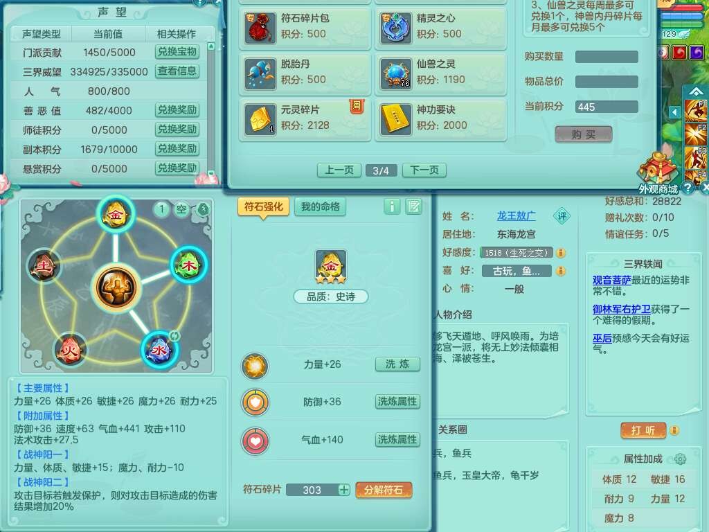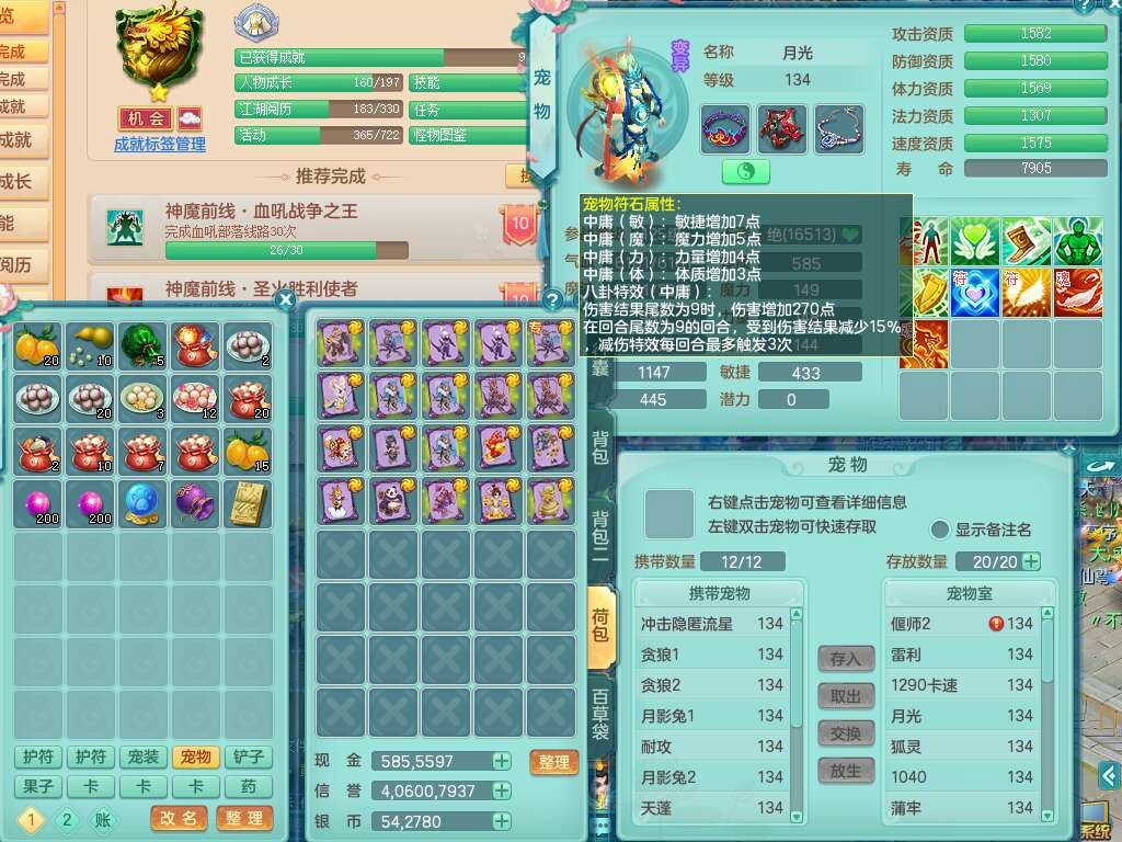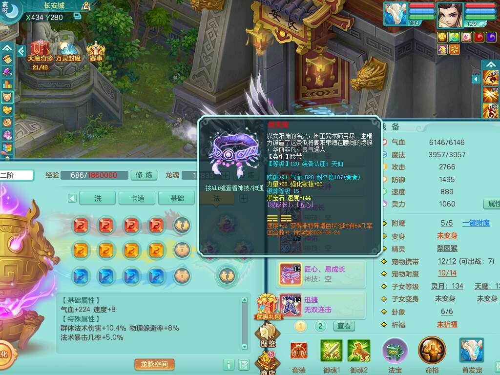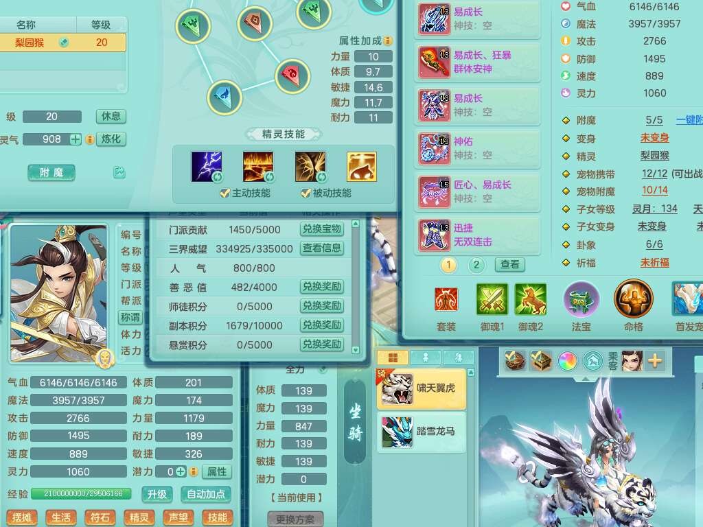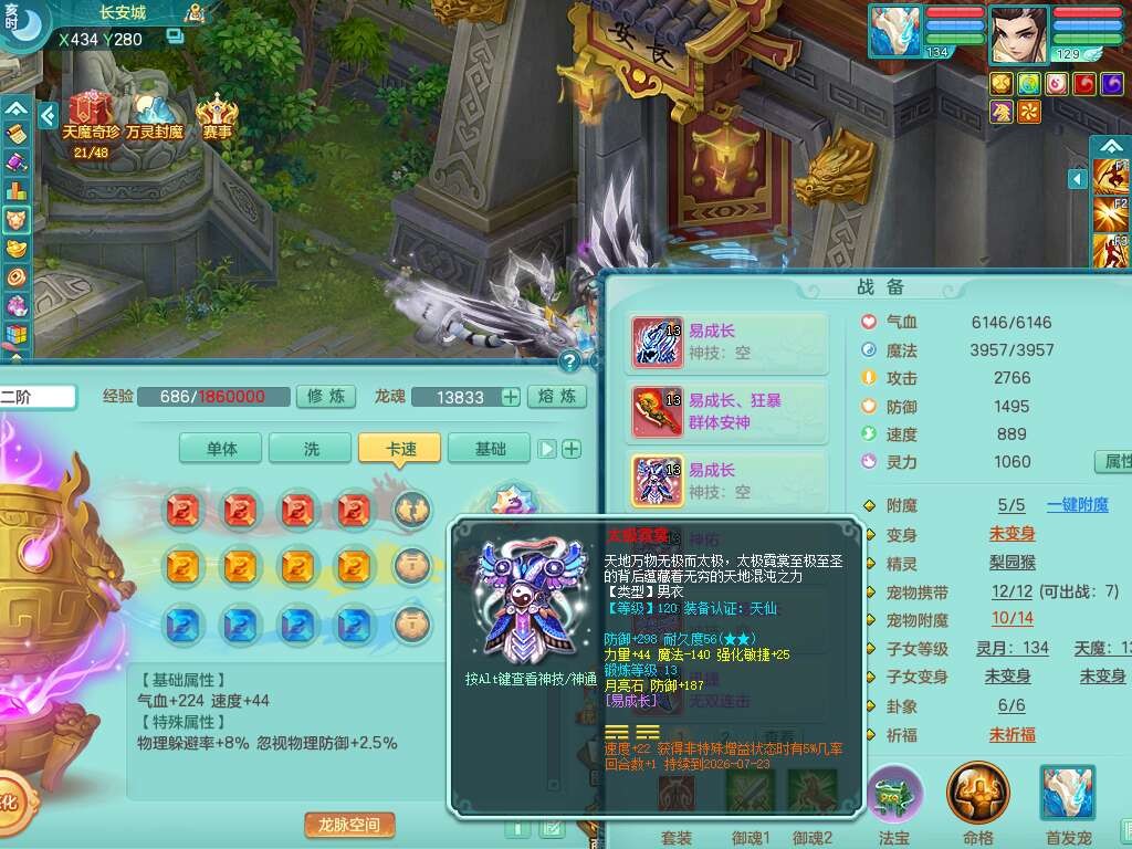 p22065锦绣河山129男天策,精灵歌,7觉醒(准潜龙,符石差1个主要属性,2个附加属性),2宠皮,易成长单加44头,709三红狂暴易成长群体安神单加44武器,易成长单加44衣服,神佑单加43项链,匠心易成长腰带,迅捷破血鞋子,有法爆武器,易成长慈航单加40鞋子,4.0基础鼎+56攻+224血,7个纯六字,15只满果子,双人坐骑,144天月卡。带两个157奶粉。
